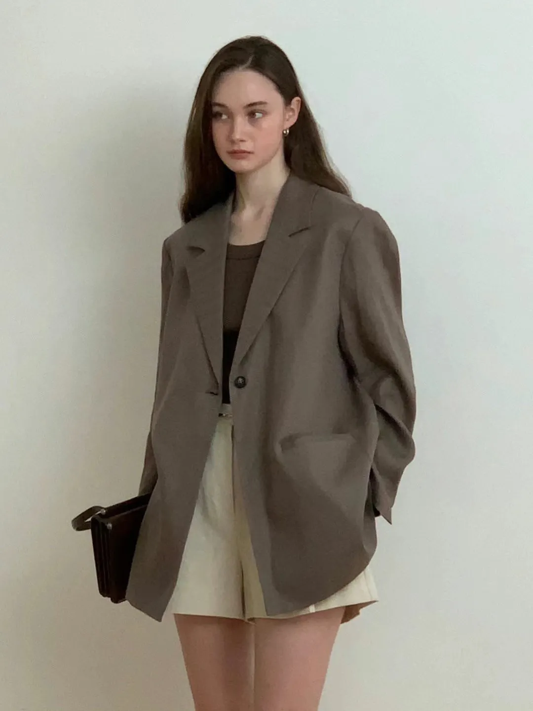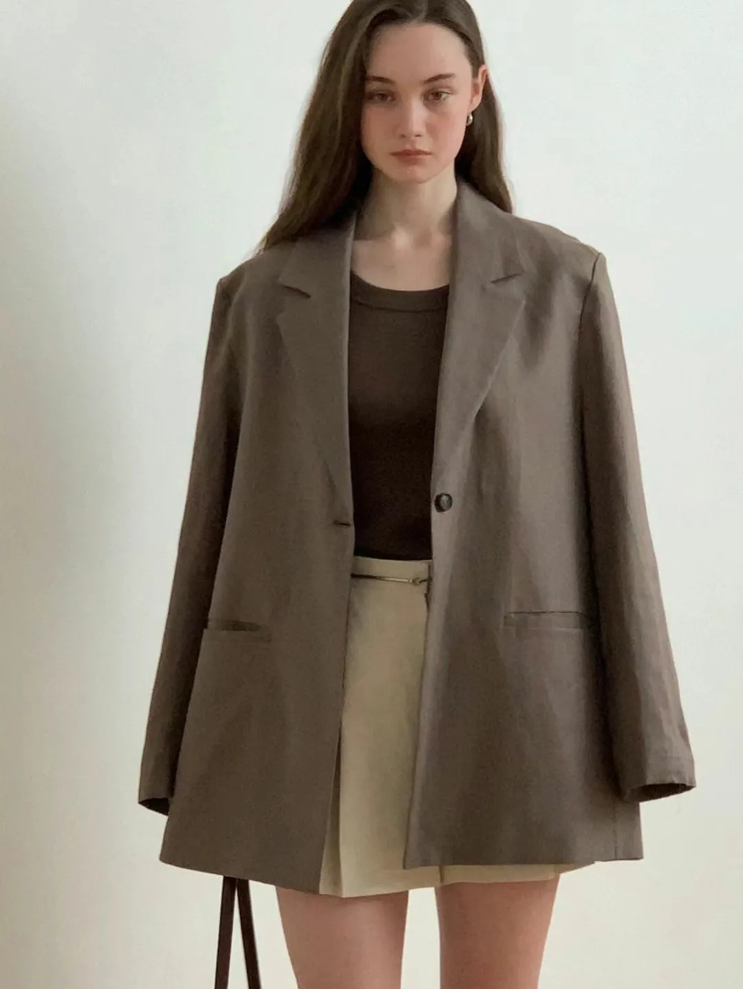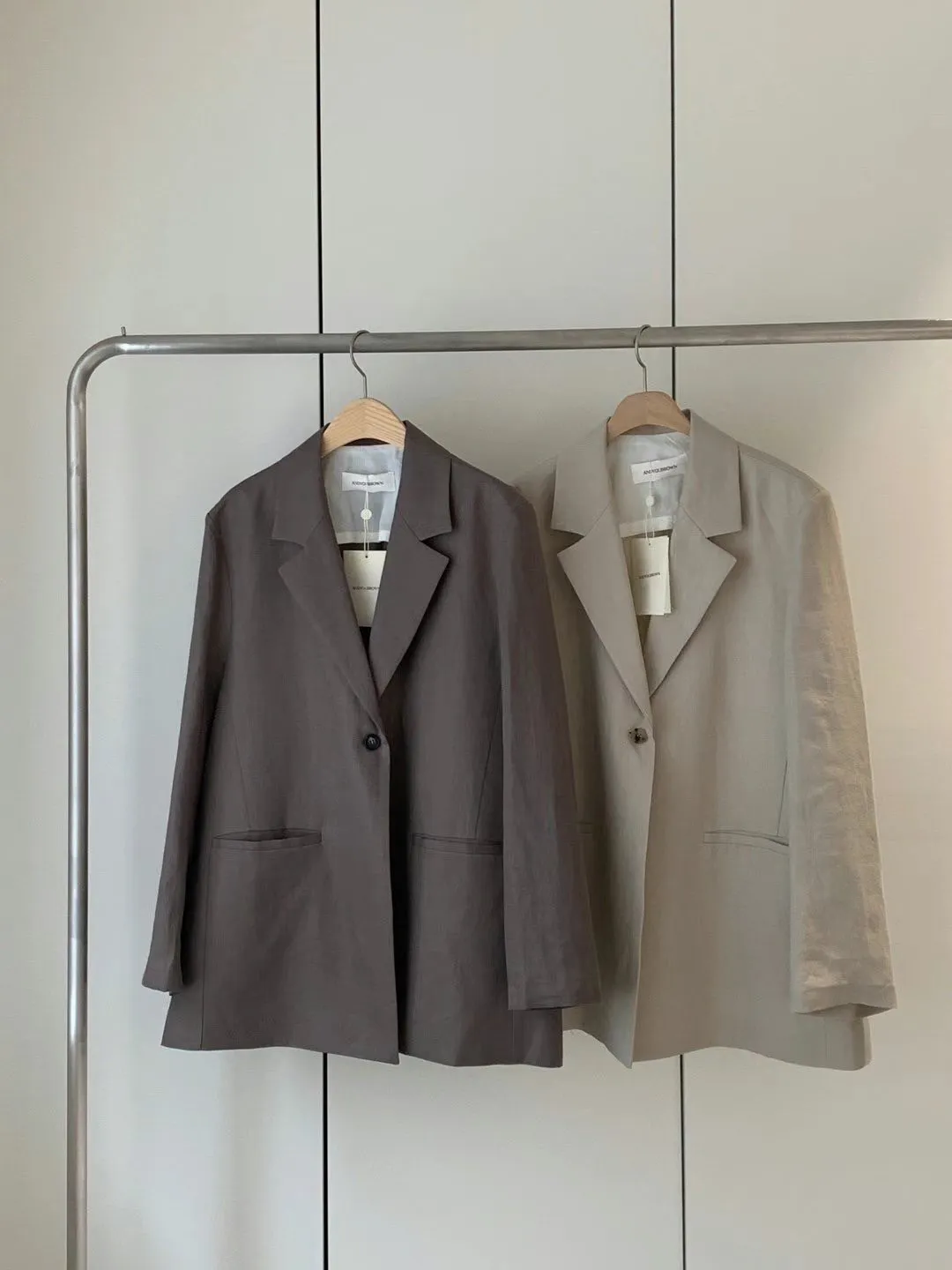 GM645薄款單釦亞麻西裝外套 奶茶 咖 官網價$2690 線上價$2660