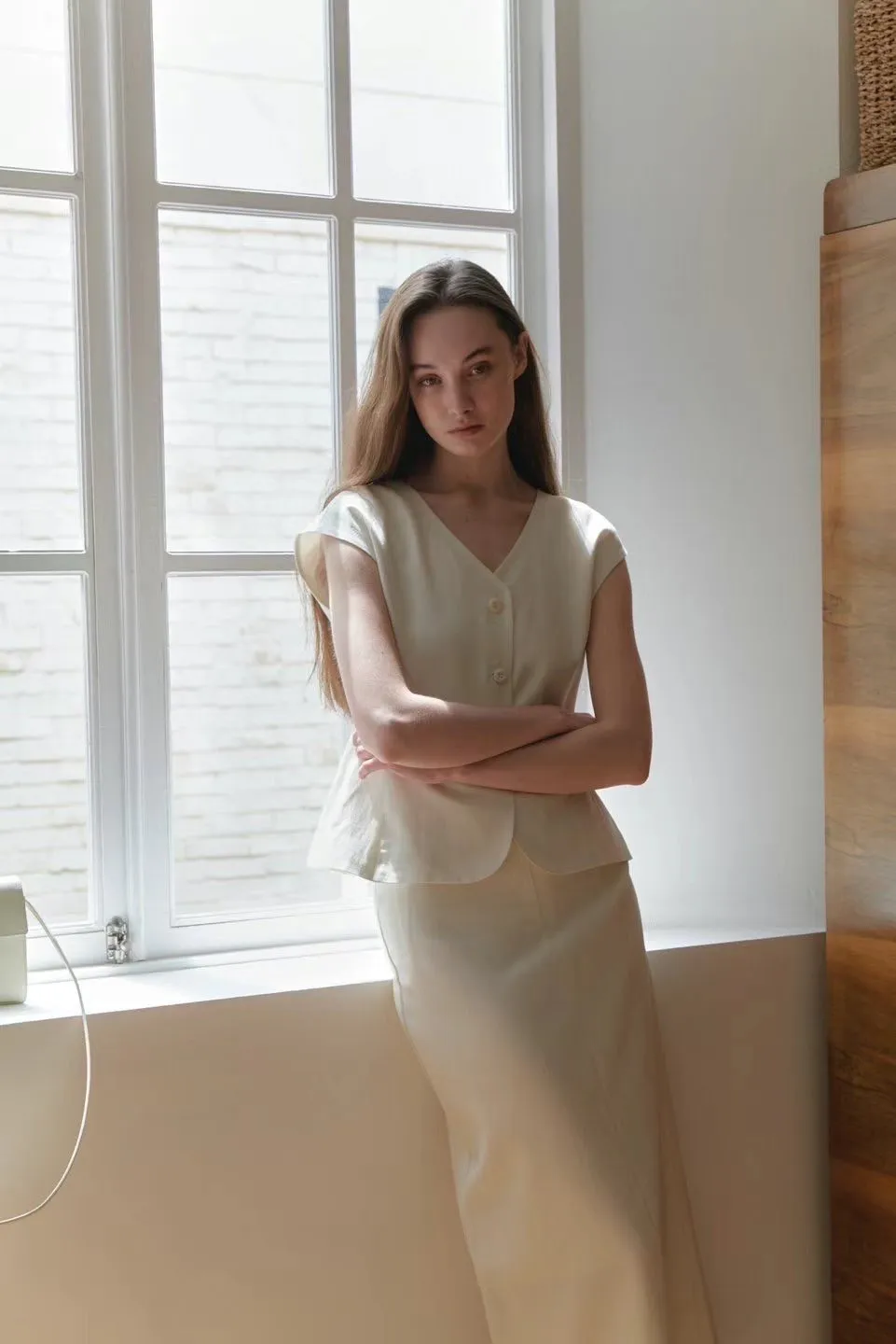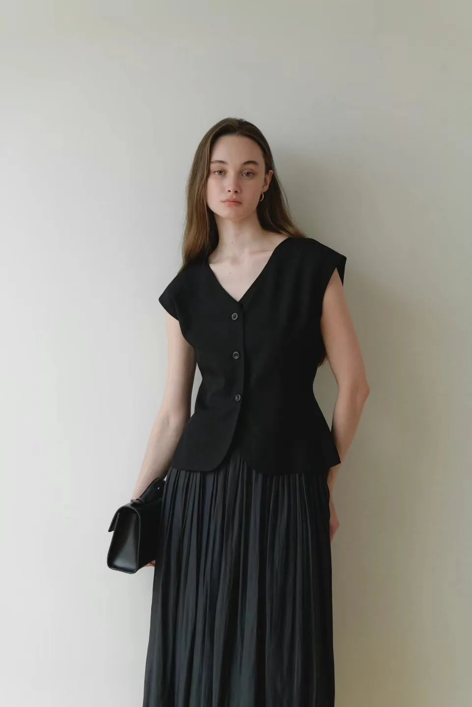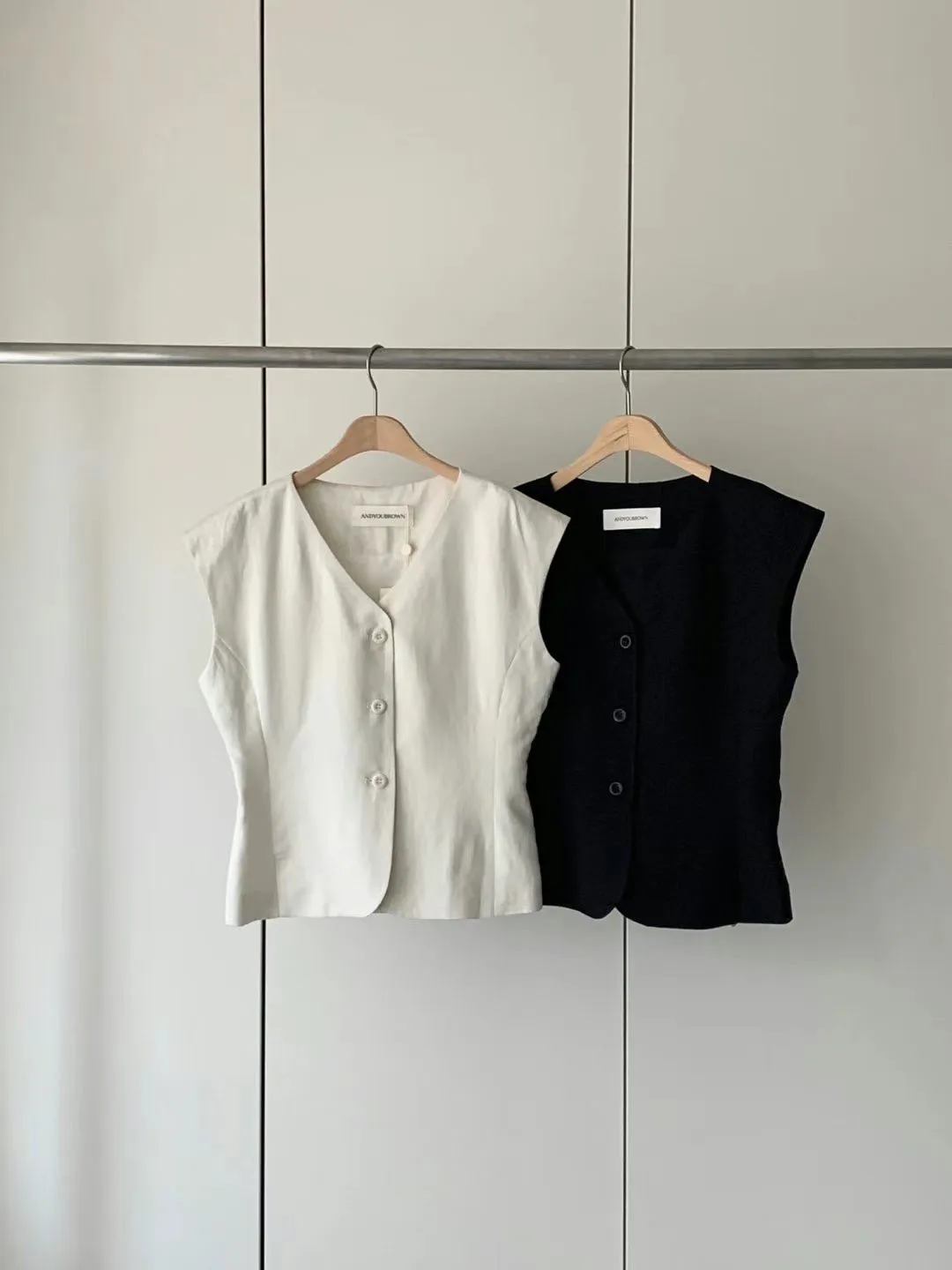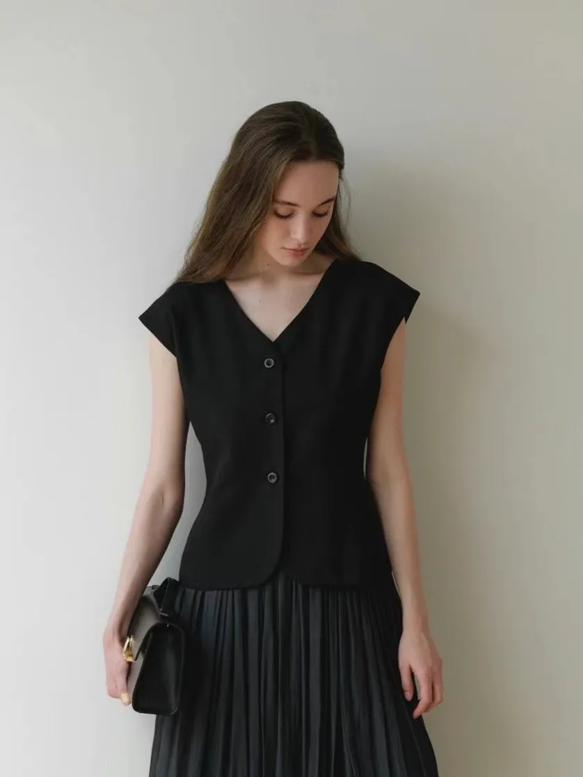 GM648質感三釦背心上衣 米 黑 官網價$1180 線上價$1150