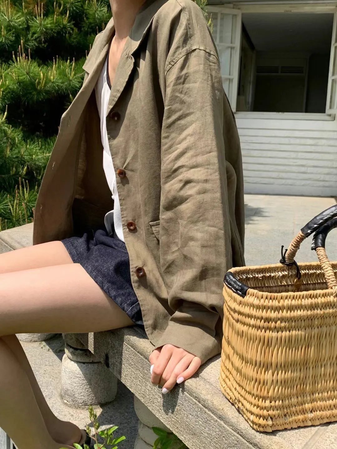 棉+亞麻 薄款輕盈 排釦穿脫 夏天合適