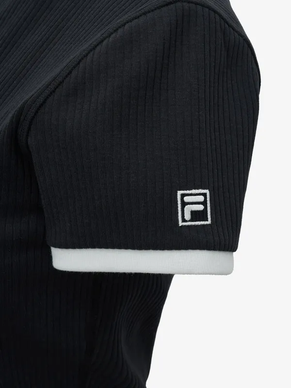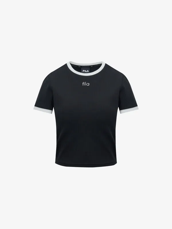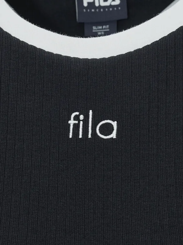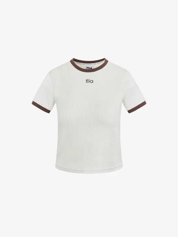 GM664顯瘦滾邊坑條fila短袖Tshirt 米 黑 S M L XL官網價$1320 線上價$1290