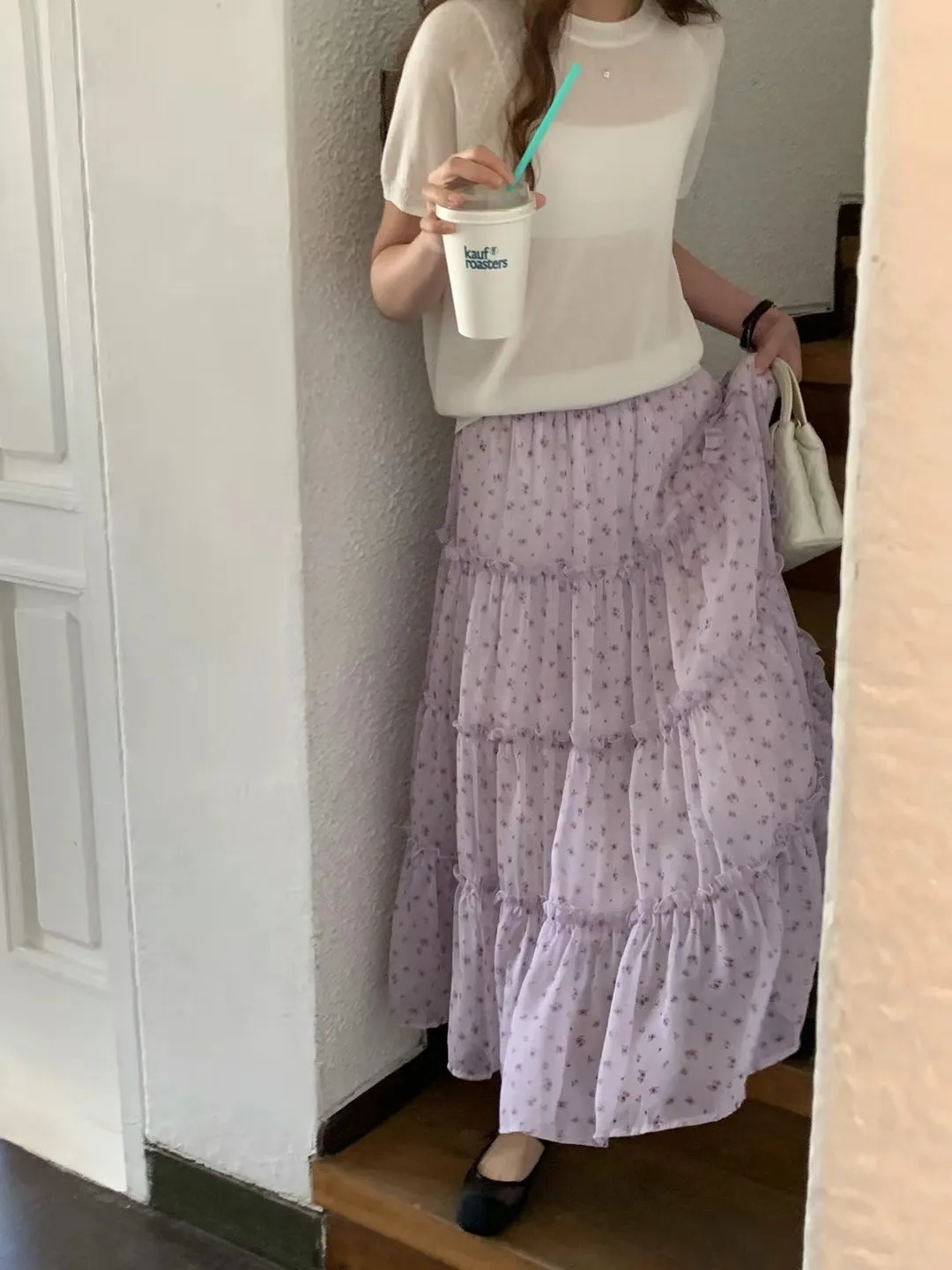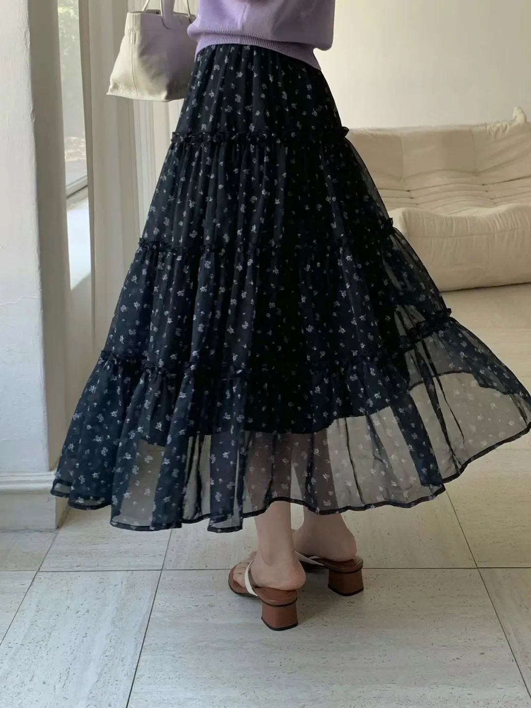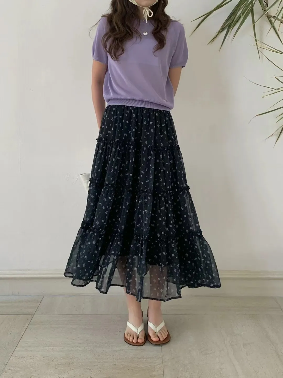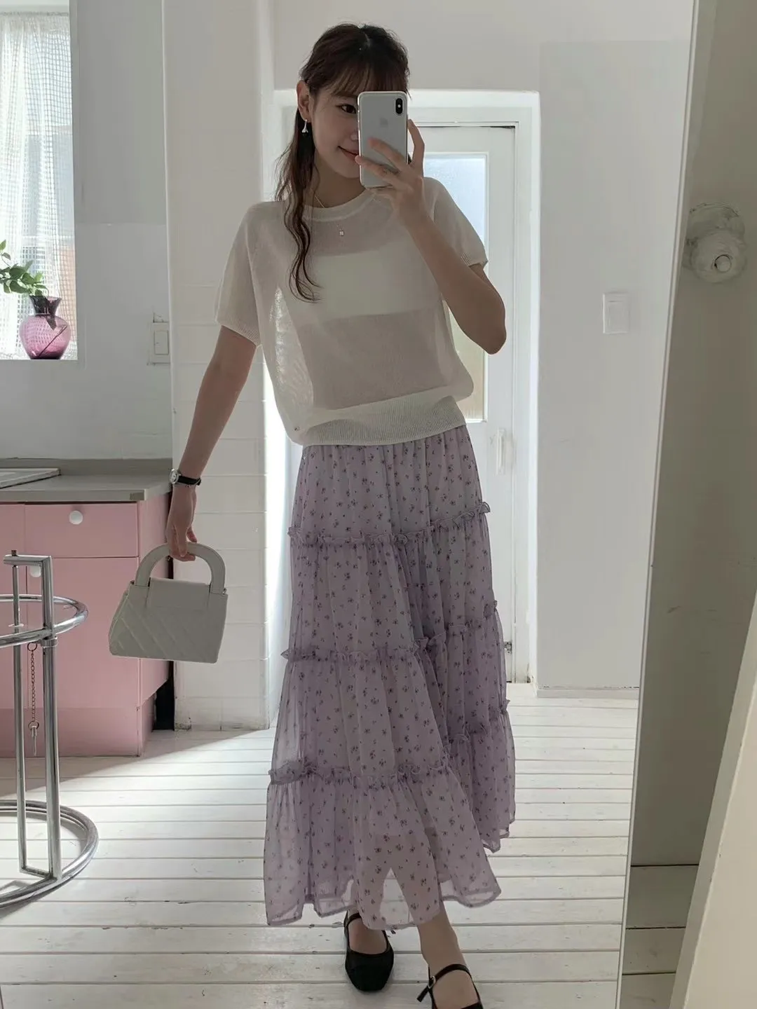 聚酯 全腰鬆緊 有內裡 下擺透膚設計 層次飄逸