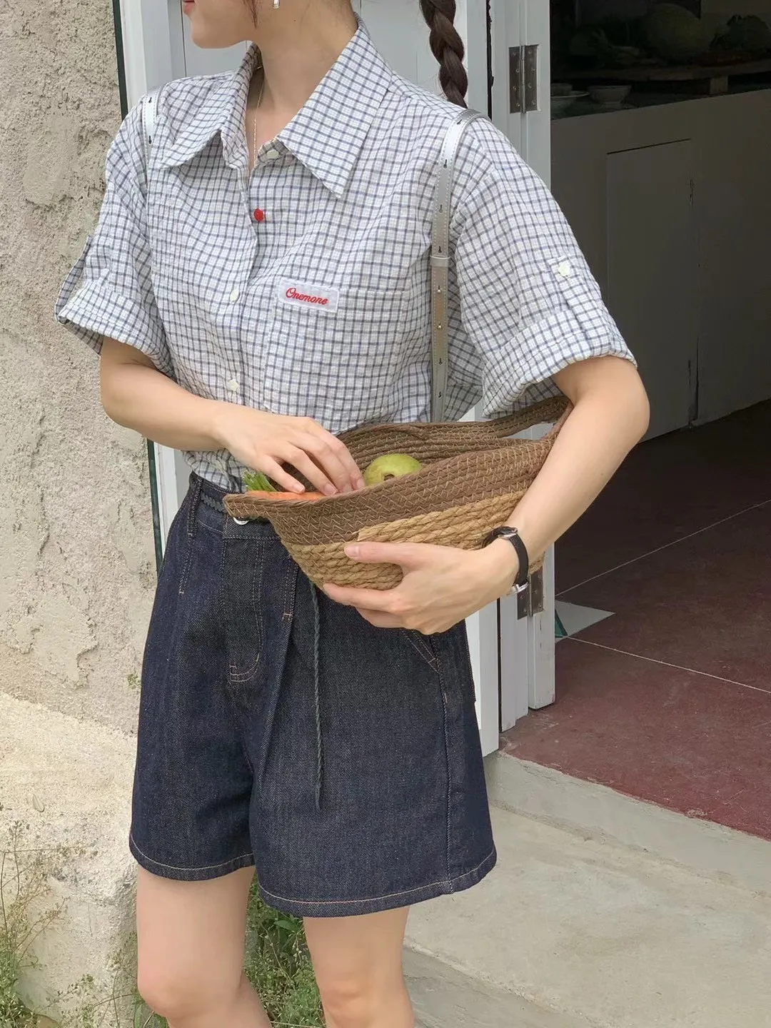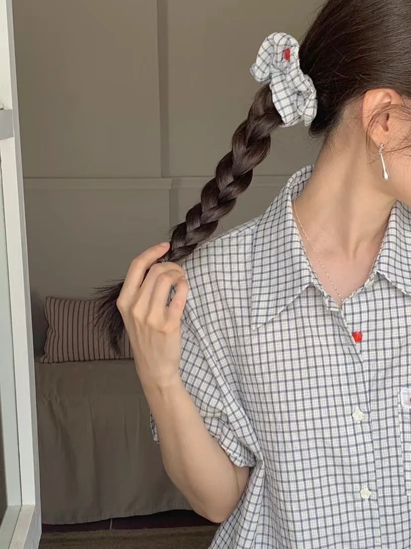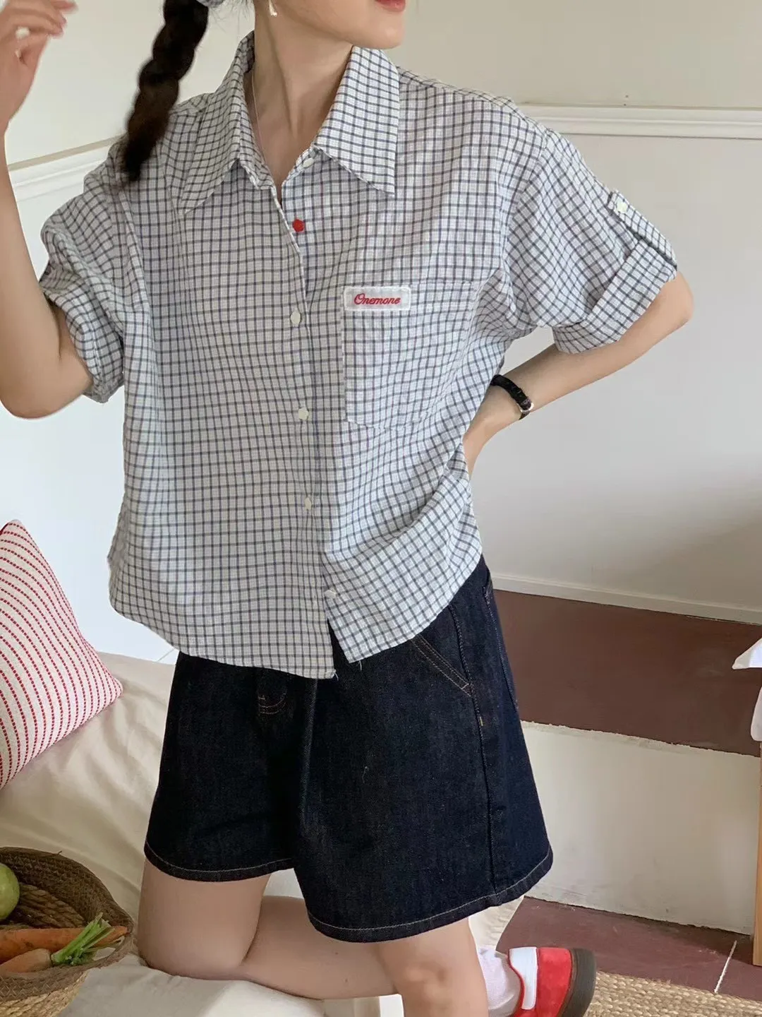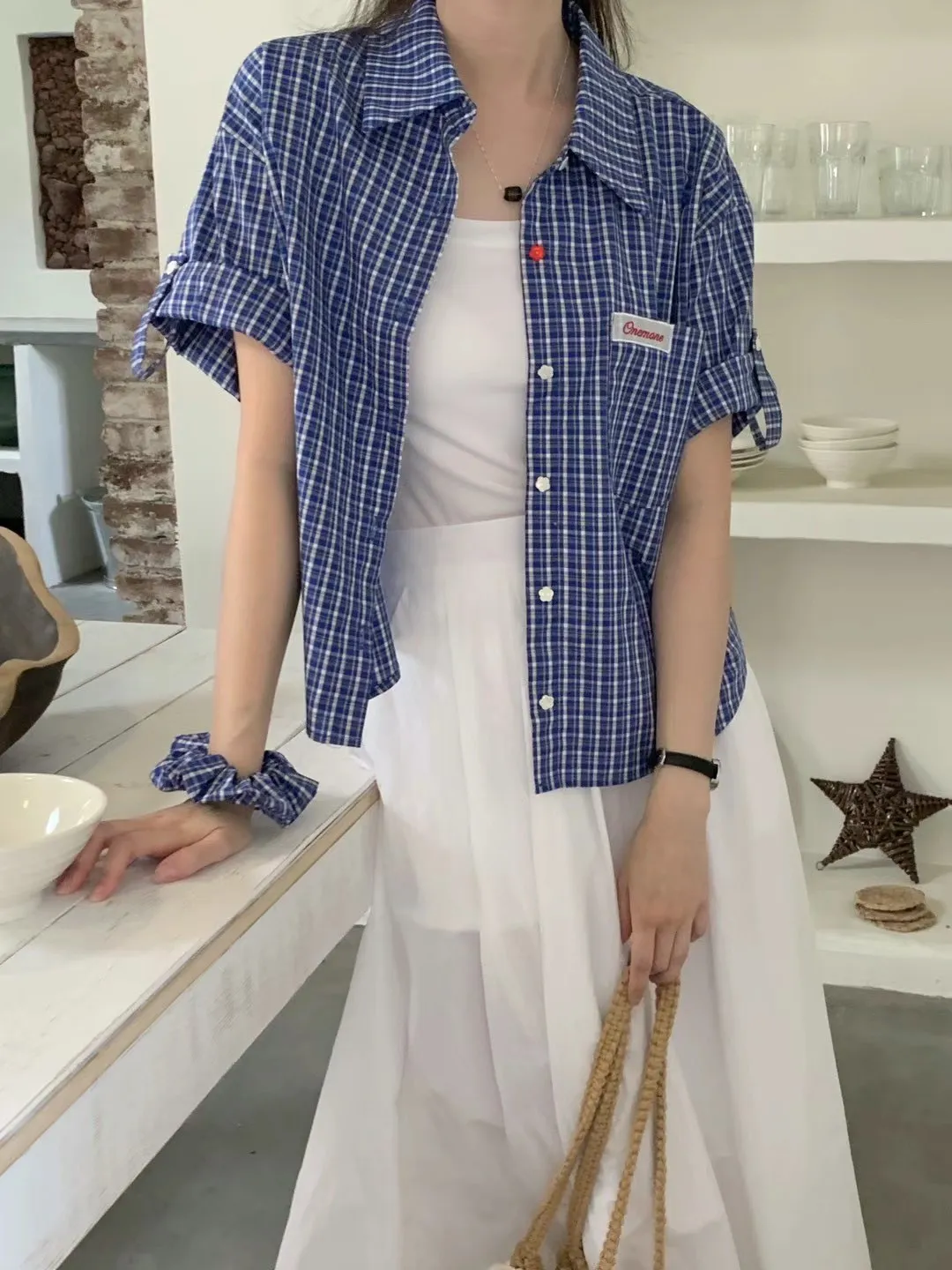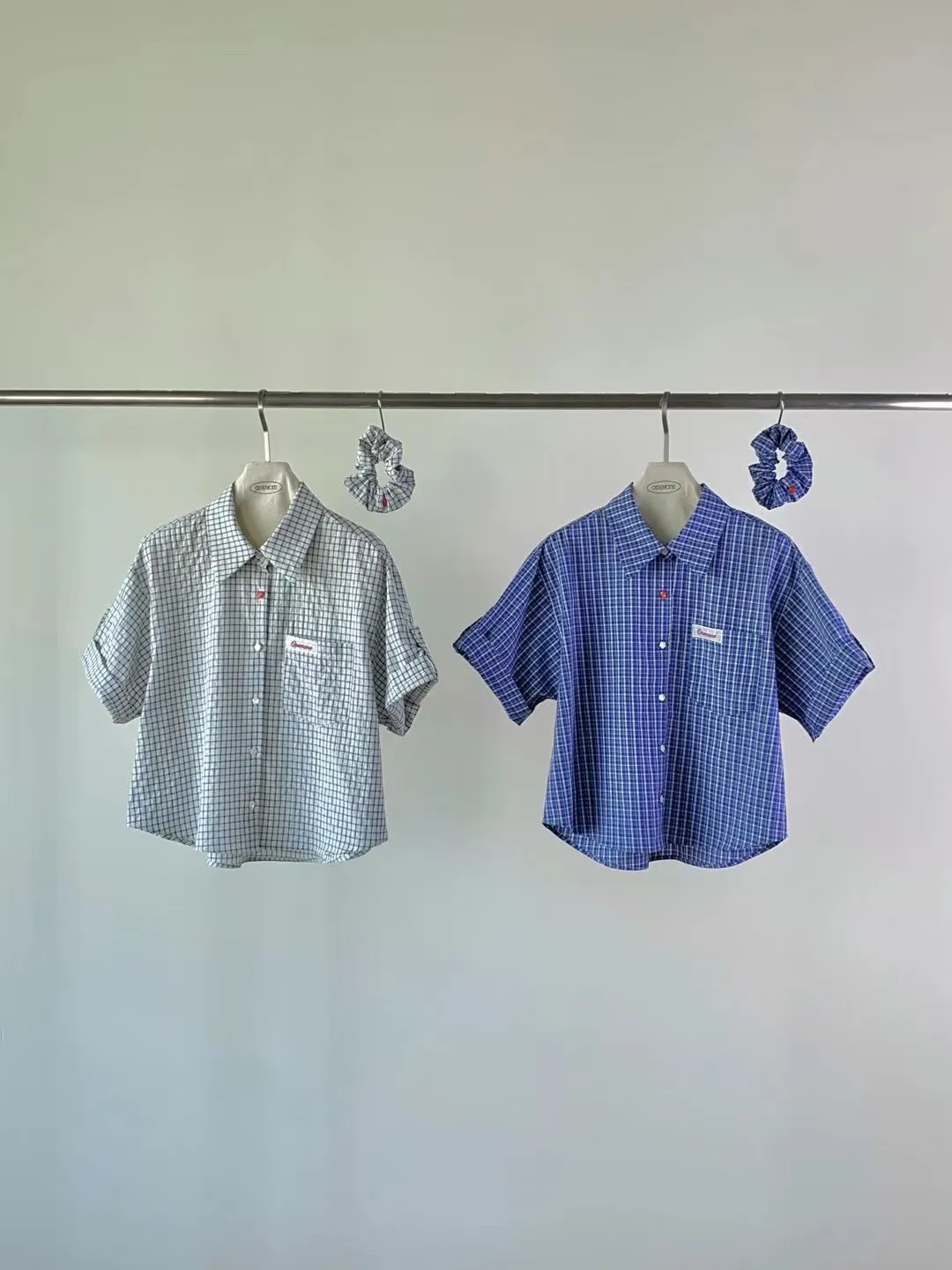 棉 小花釦 胸前小標 袖口反摺 送一個髮圈 不易皺