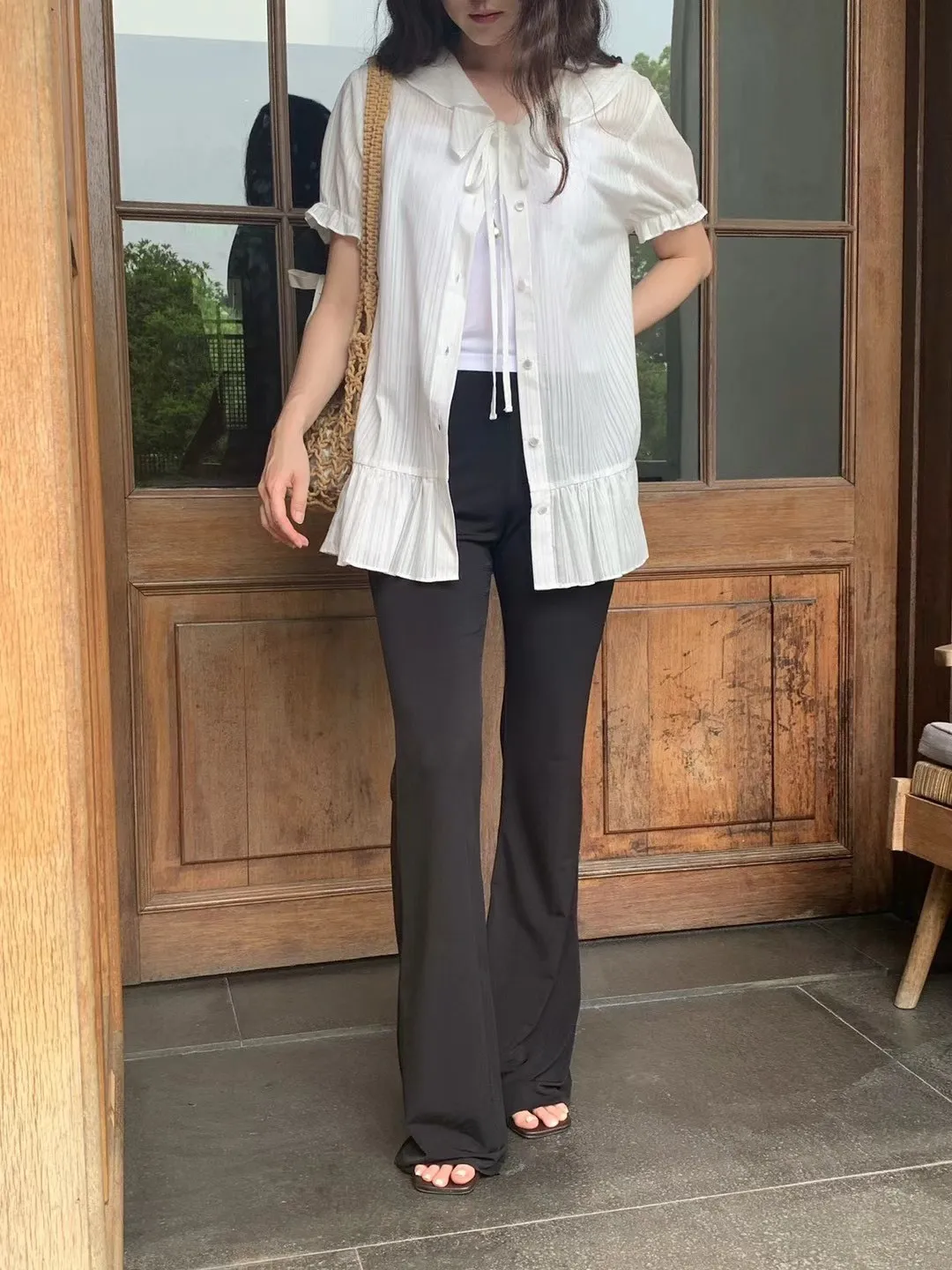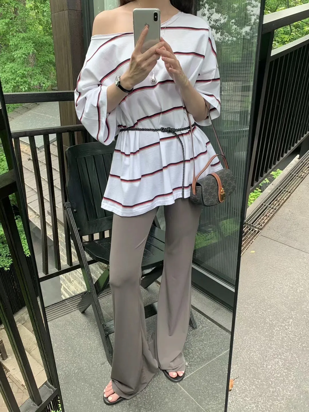 聚酯+彈力,垂墜貼身款 有彈性 不易皺 可以直接自己剪短褲管
