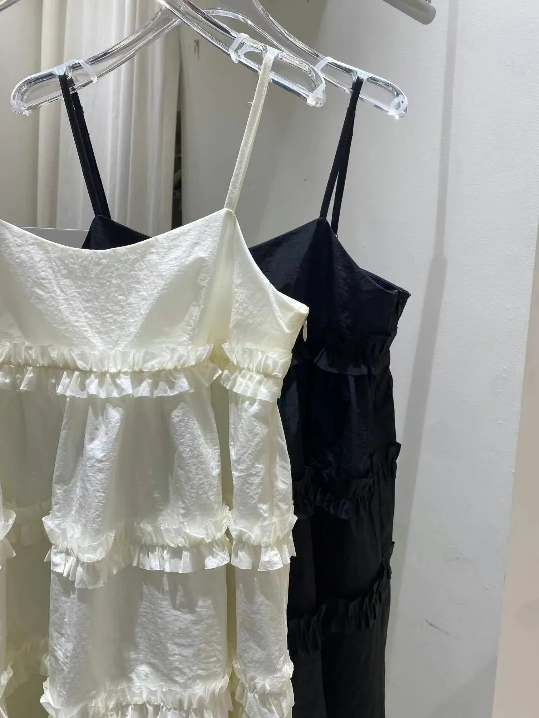 尼龍 肩帶可調 層次荷葉蛋糕 活動自在 空間長度佳 側拉鍊 L號友善