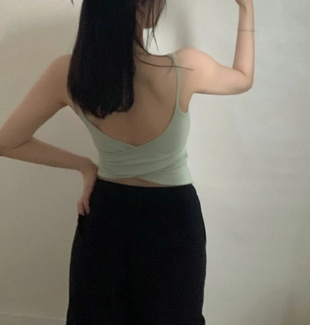 棉+萊卡 體感非常舒服 彈性很大 貼膚包覆 背後交叉設計 肩帶有彈性