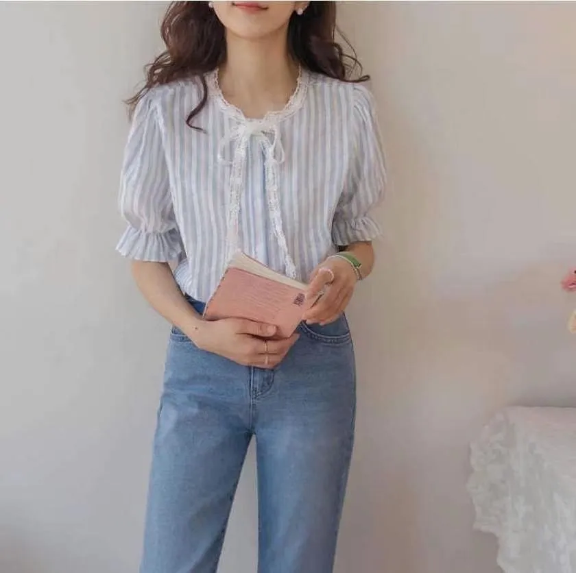 棉 薄款透氣 清透面料 領口細緻蕾絲滾邊 胸前蕾絲綁帶