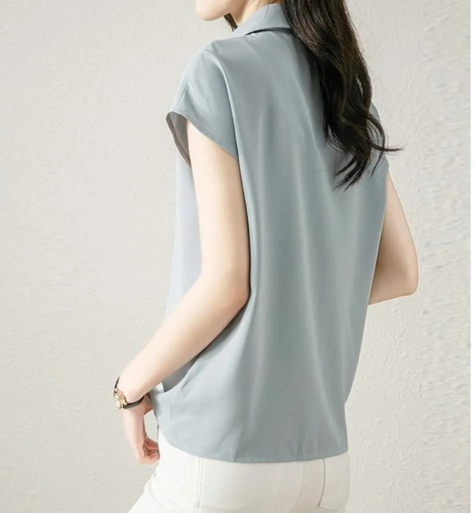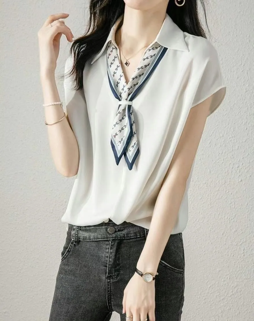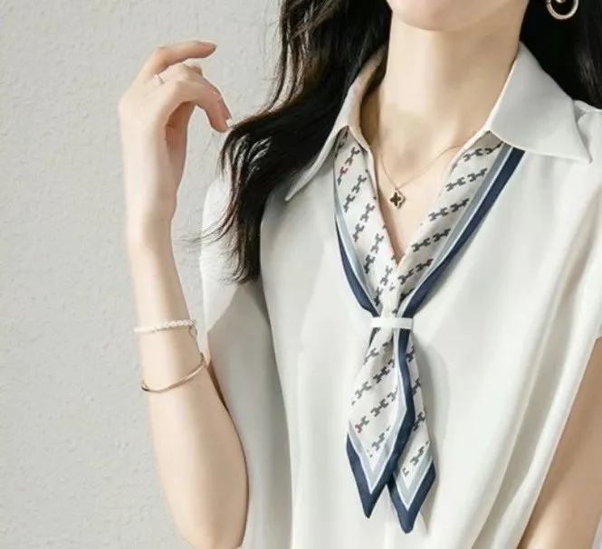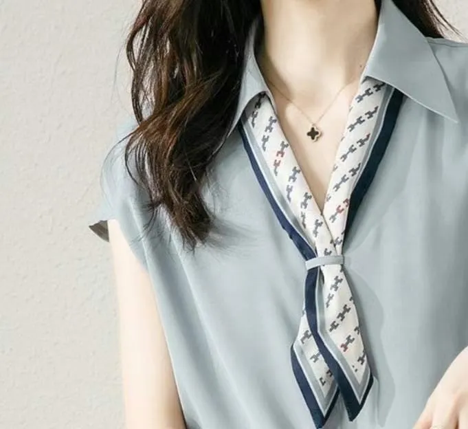 雪紡 舒適面料 開襟襯衫領 絲巾可拆 斜角袖口