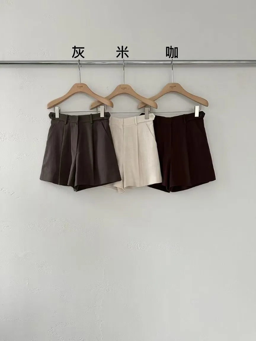 棉+亞麻 腰頭藏釦鍊穿脫 褲管搭摺 側腰有釦 後腰鬆緊 有口袋