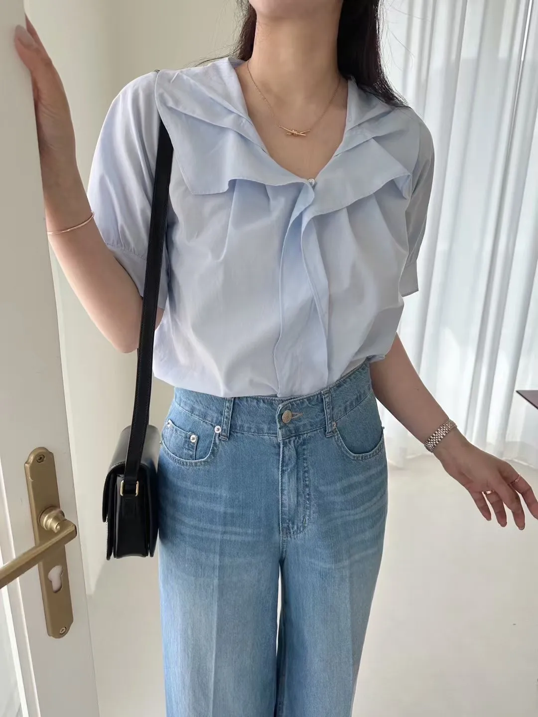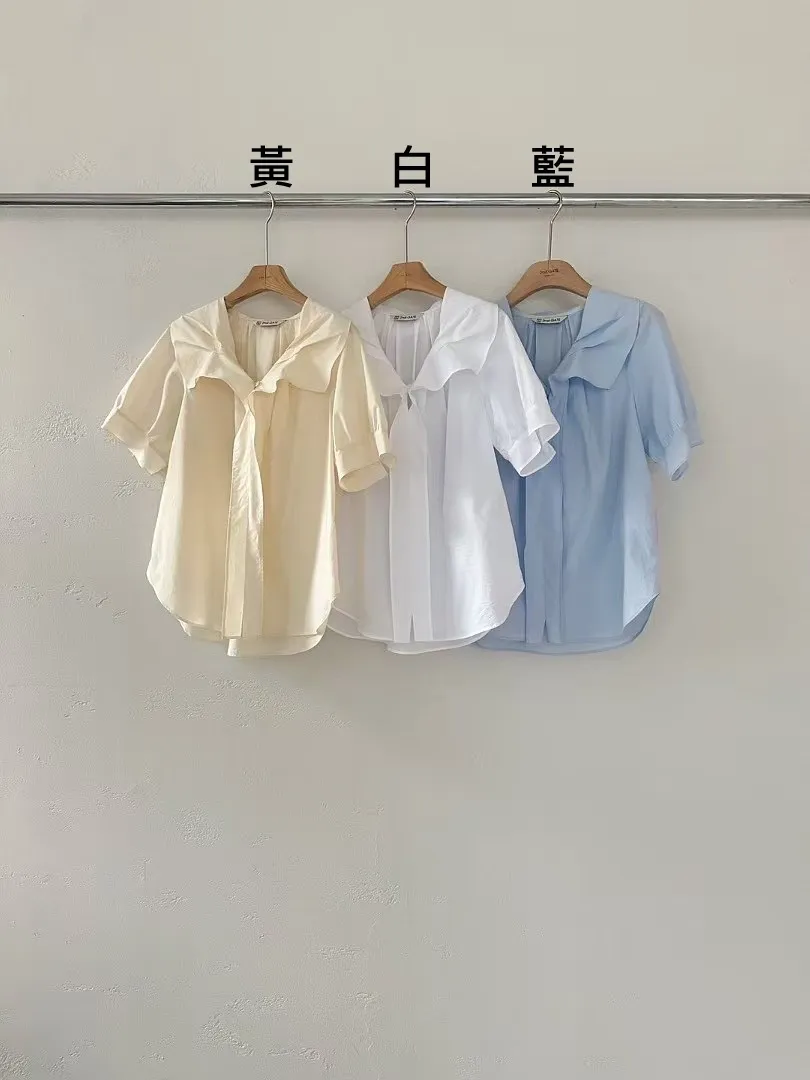 棉 側開叉 層次翻領 內領車線包邊 袖口開叉