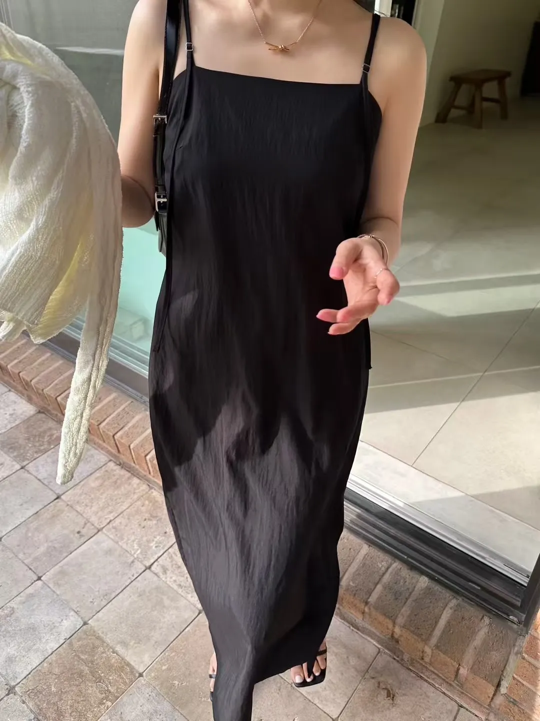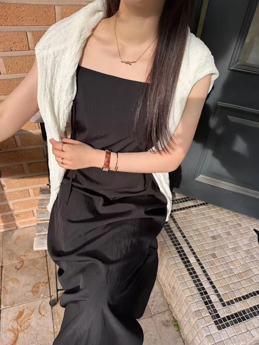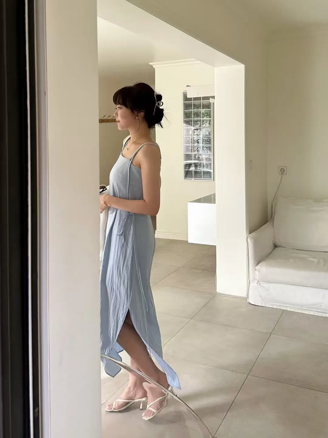 縲縈+尼龍 肩帶可調整 腰帶設計 側腿開叉 有內裡 後拉鍊穿脫