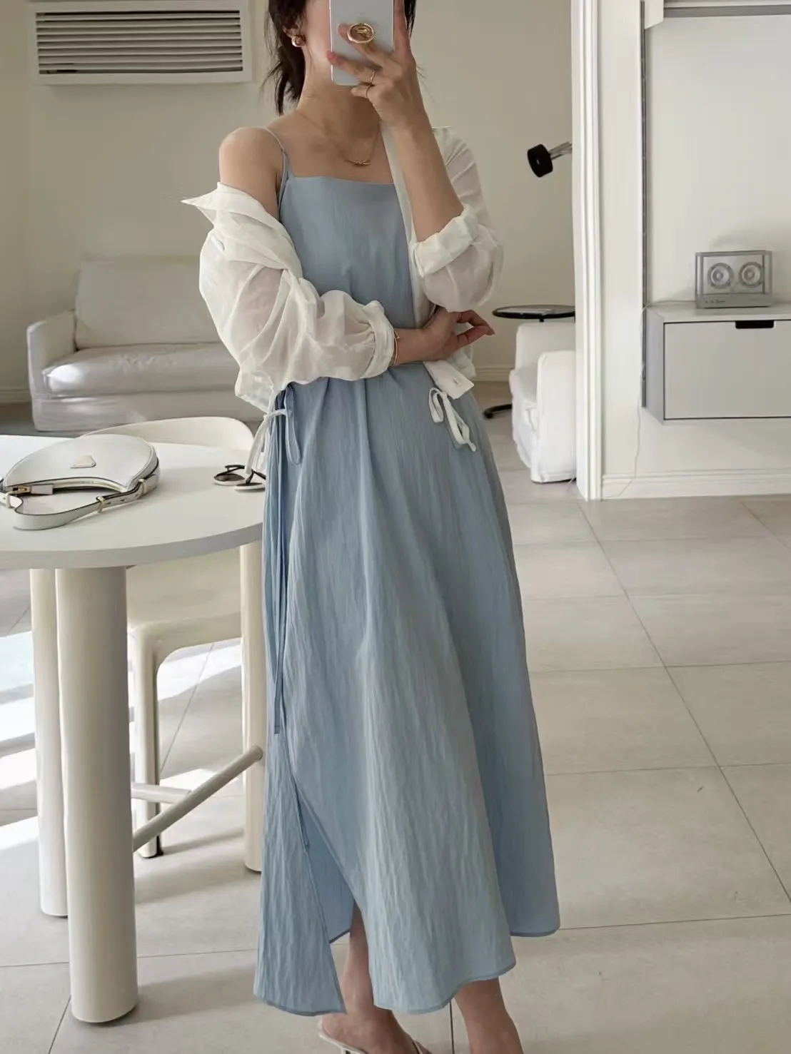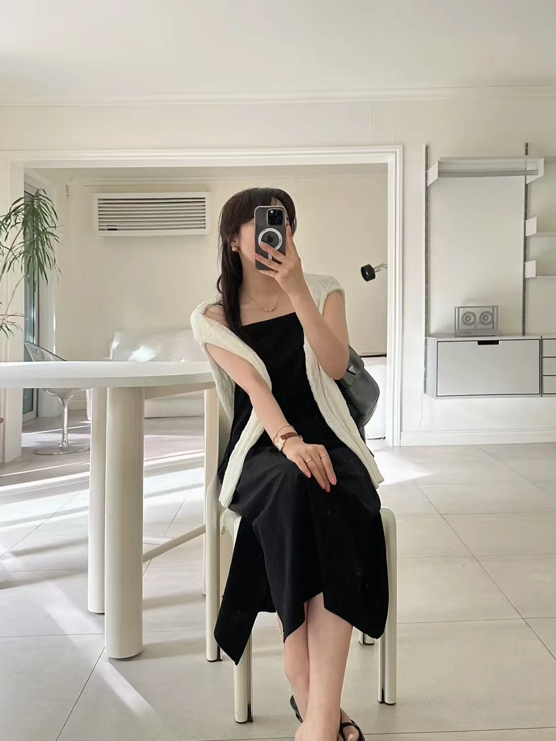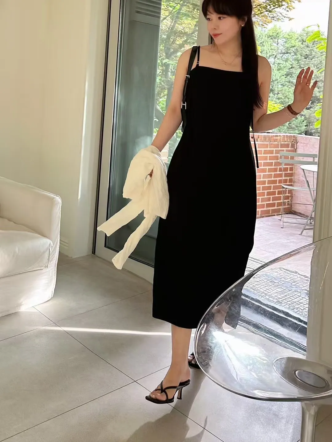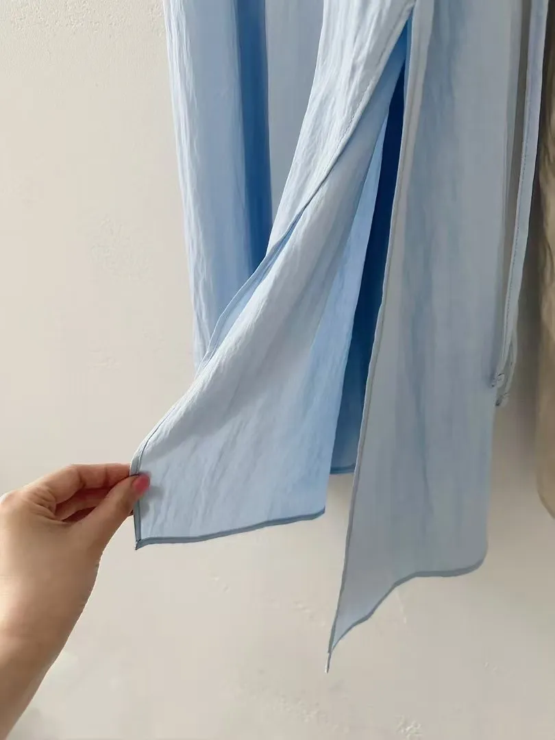 縲縈+尼龍 肩帶可調整 腰帶設計 側腿開叉 有內裡 後拉鍊穿脫