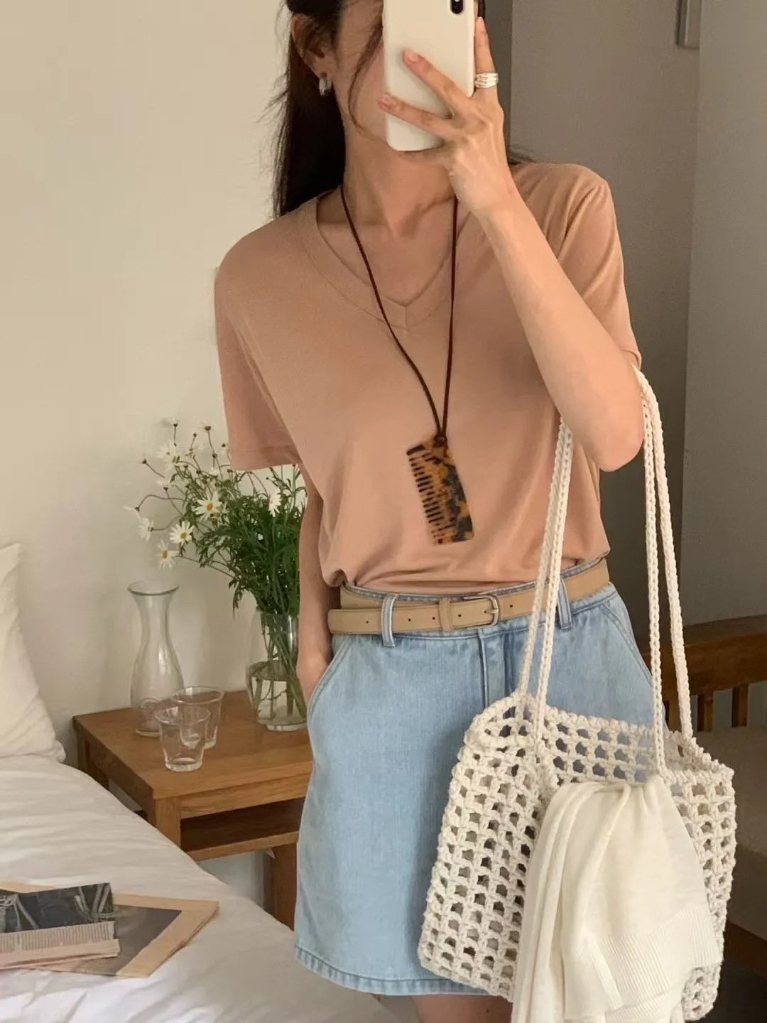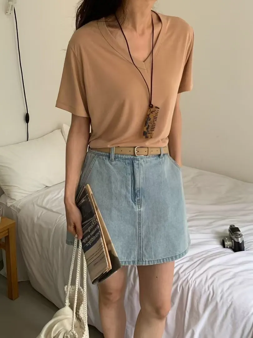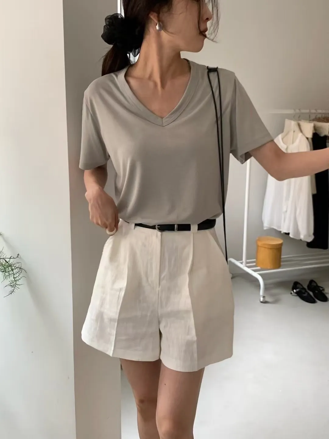 莫代爾+彈力纖維 涼感舒適 夏天很舒服 V領車線加固