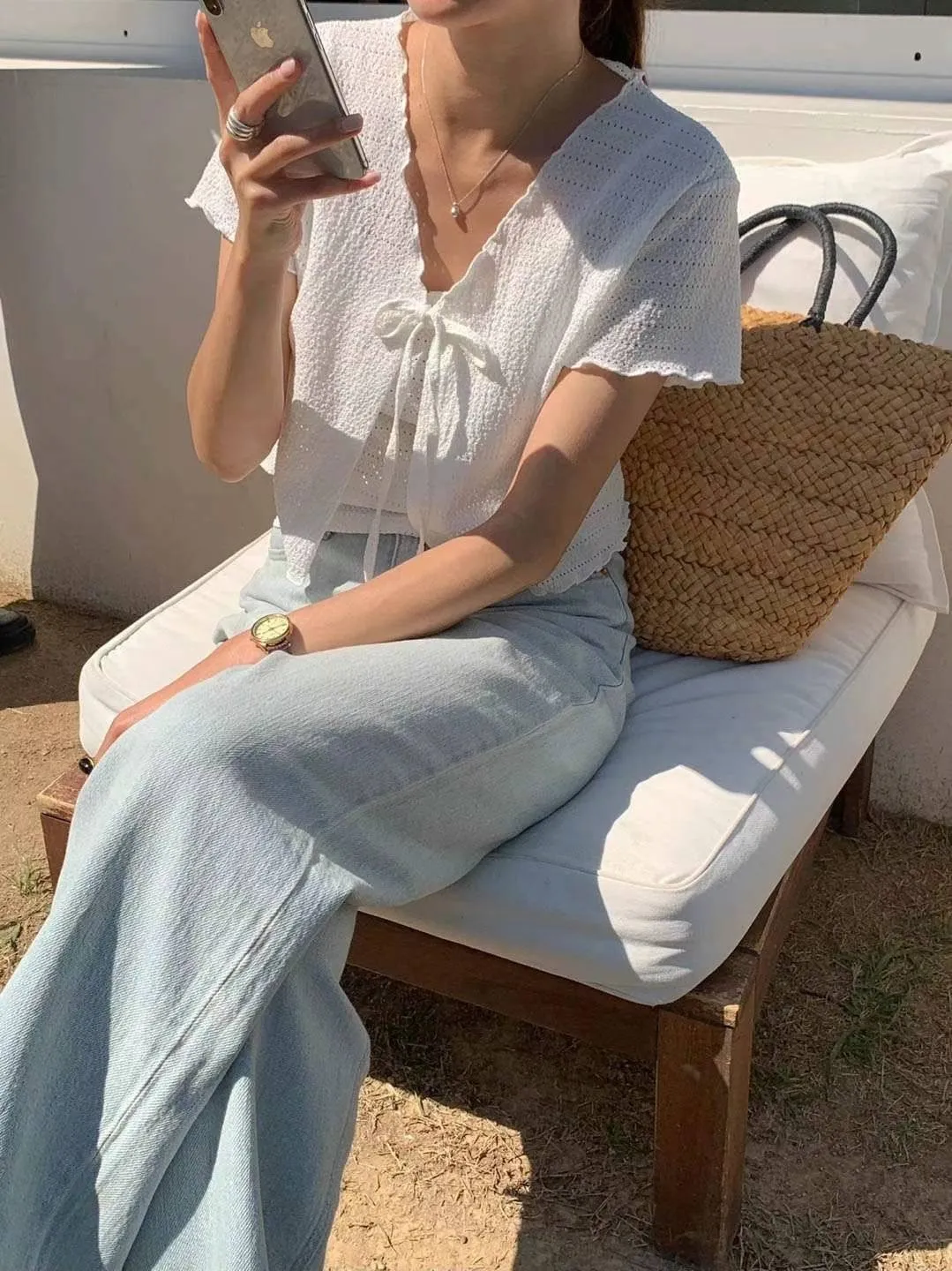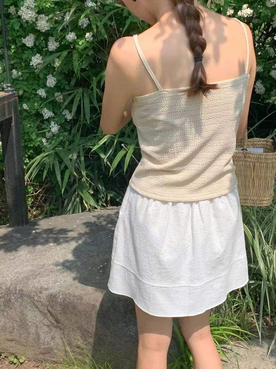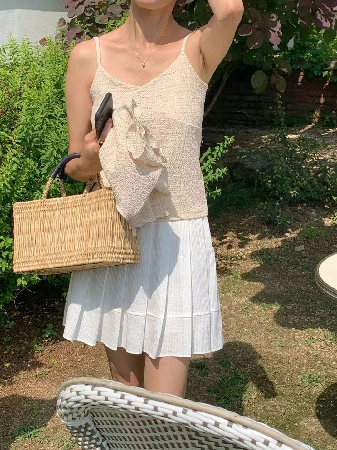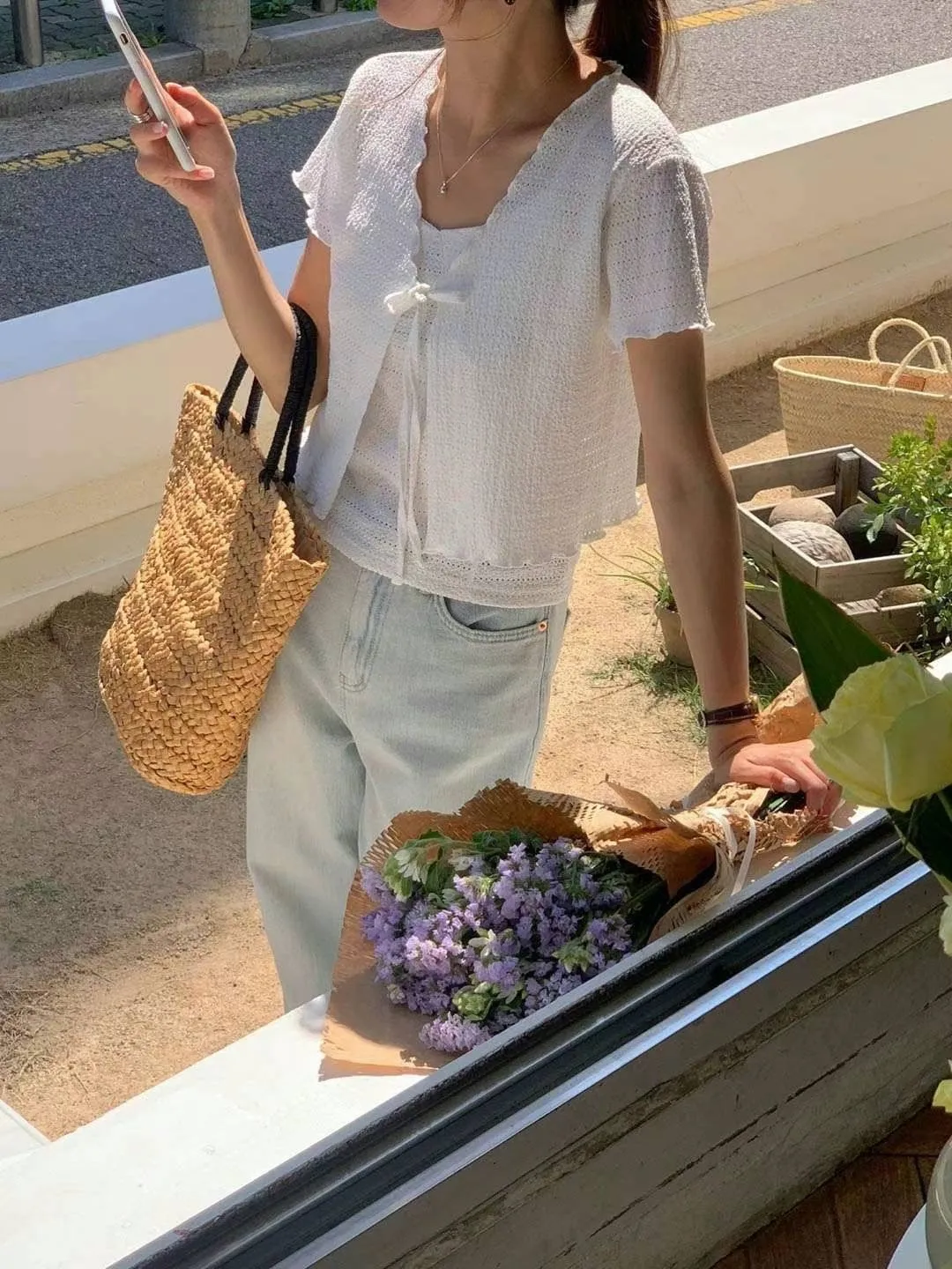HJ008荷葉滾邊胸綁帶套裝組(背心+外套) 白 黃 官網價$580 線上價$550
