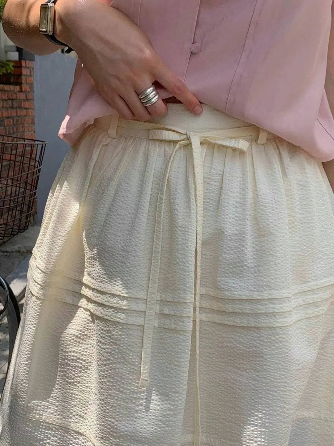 HJ009 清新腰綁帶美裙 白 黃 S M 官網價$829 線上價$799