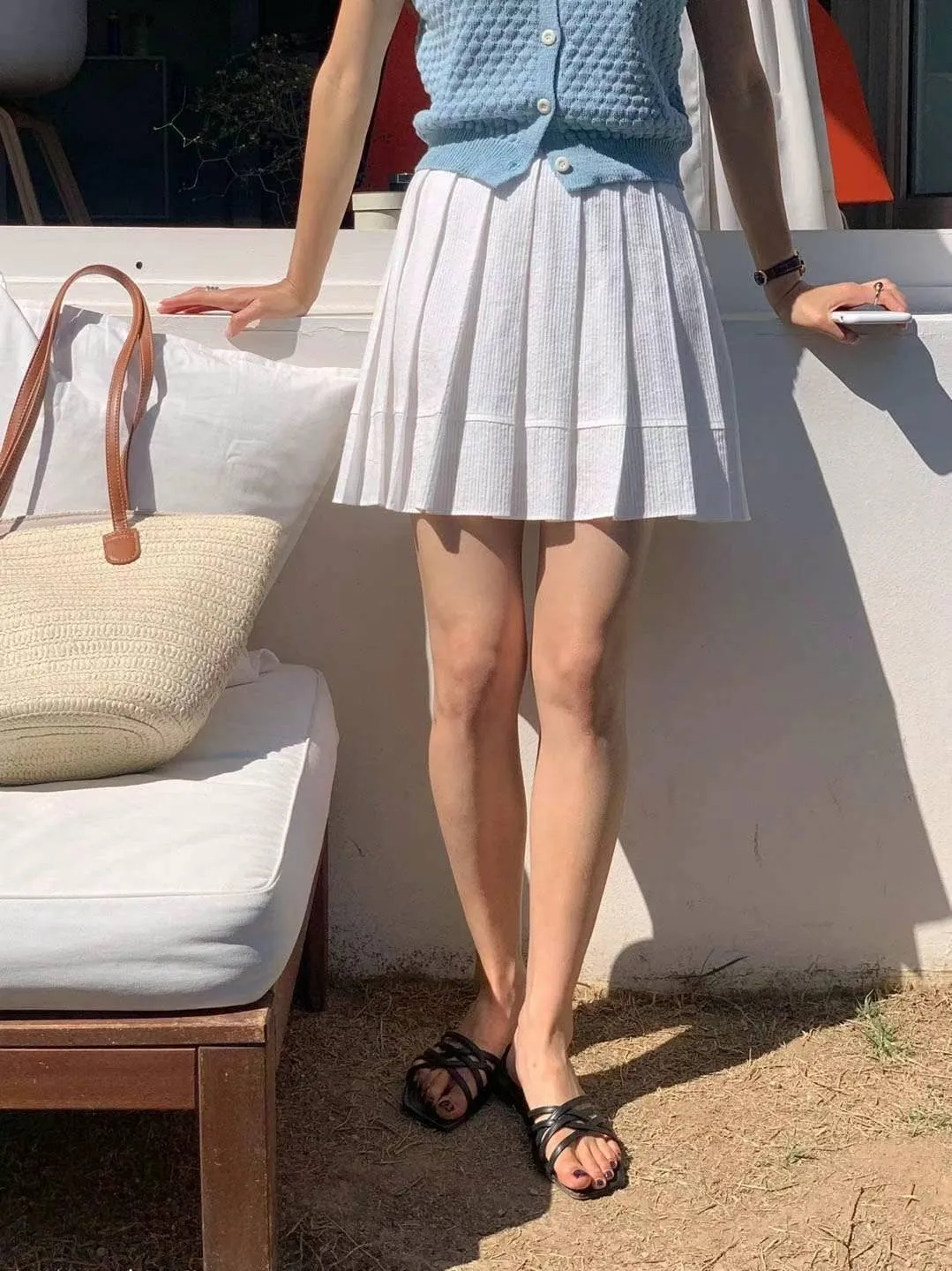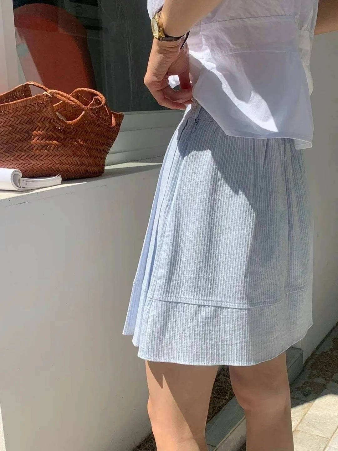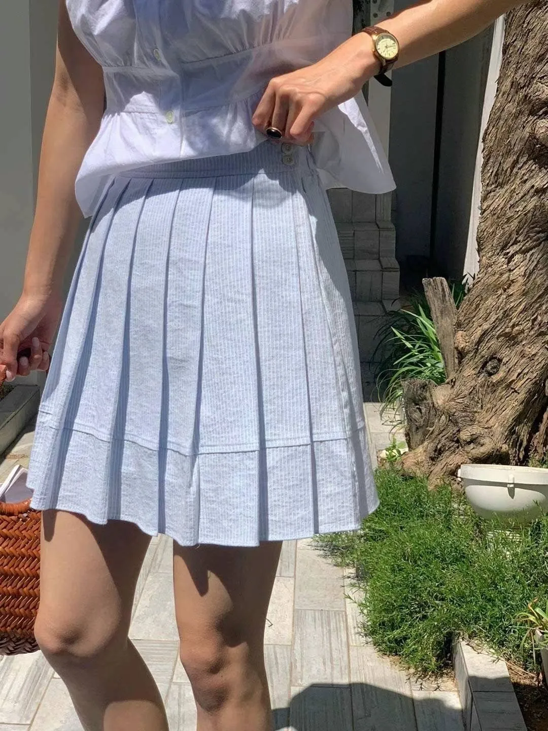 HJ011薄款細條紋百褶裙 白 藍 官網價$799 線上價$769