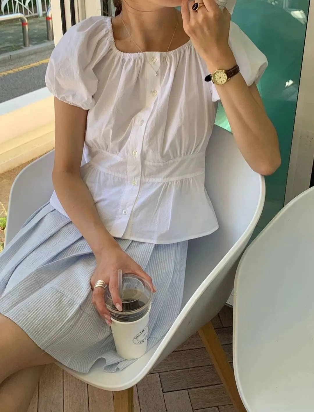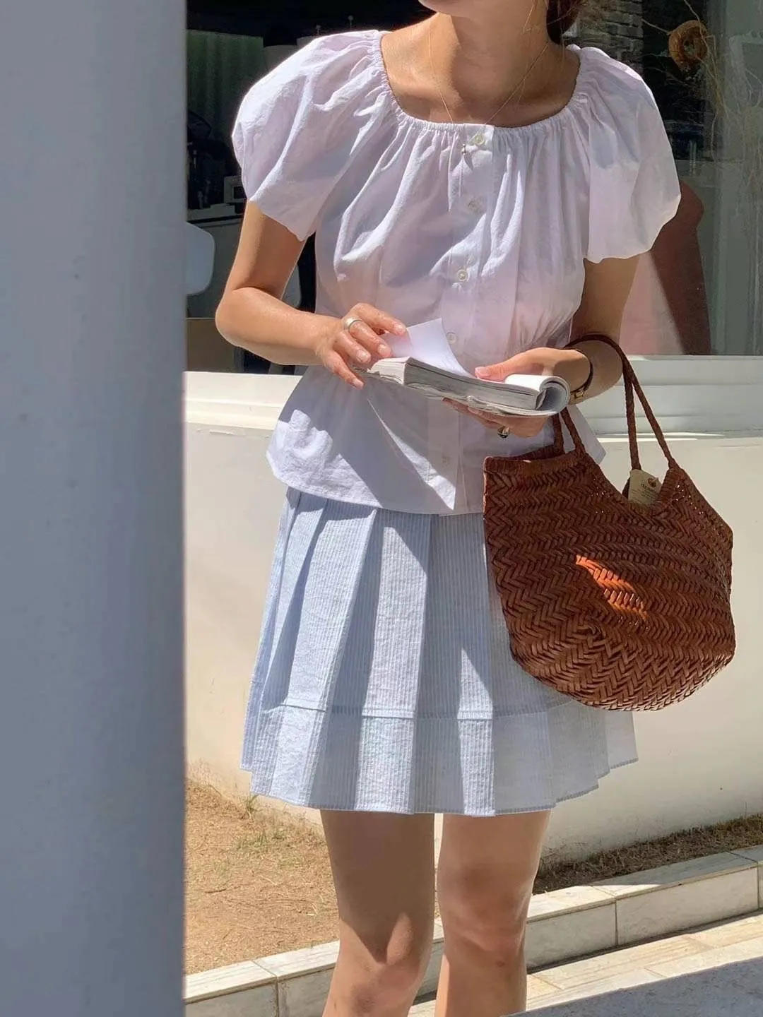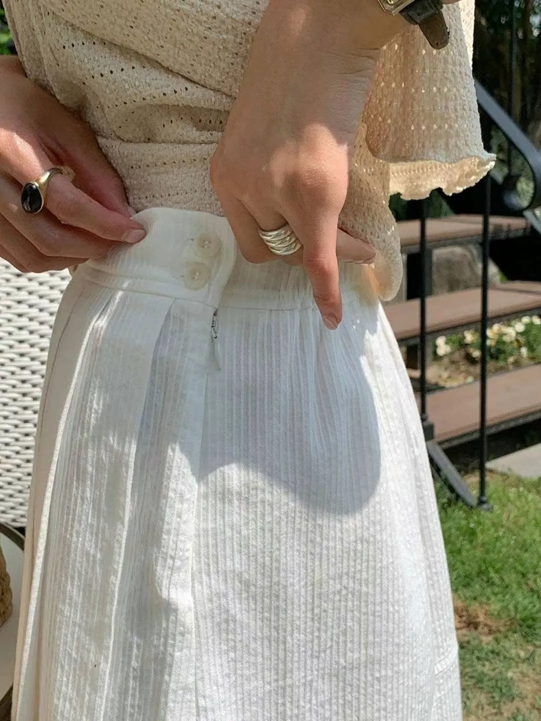 HJ011薄款細條紋百褶裙 白 藍 官網價$799 線上價$769