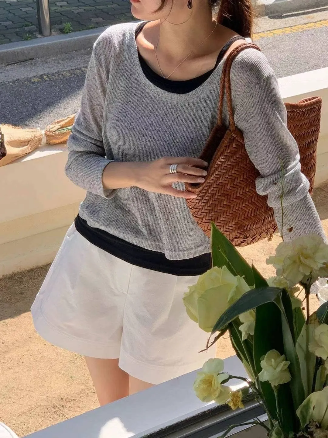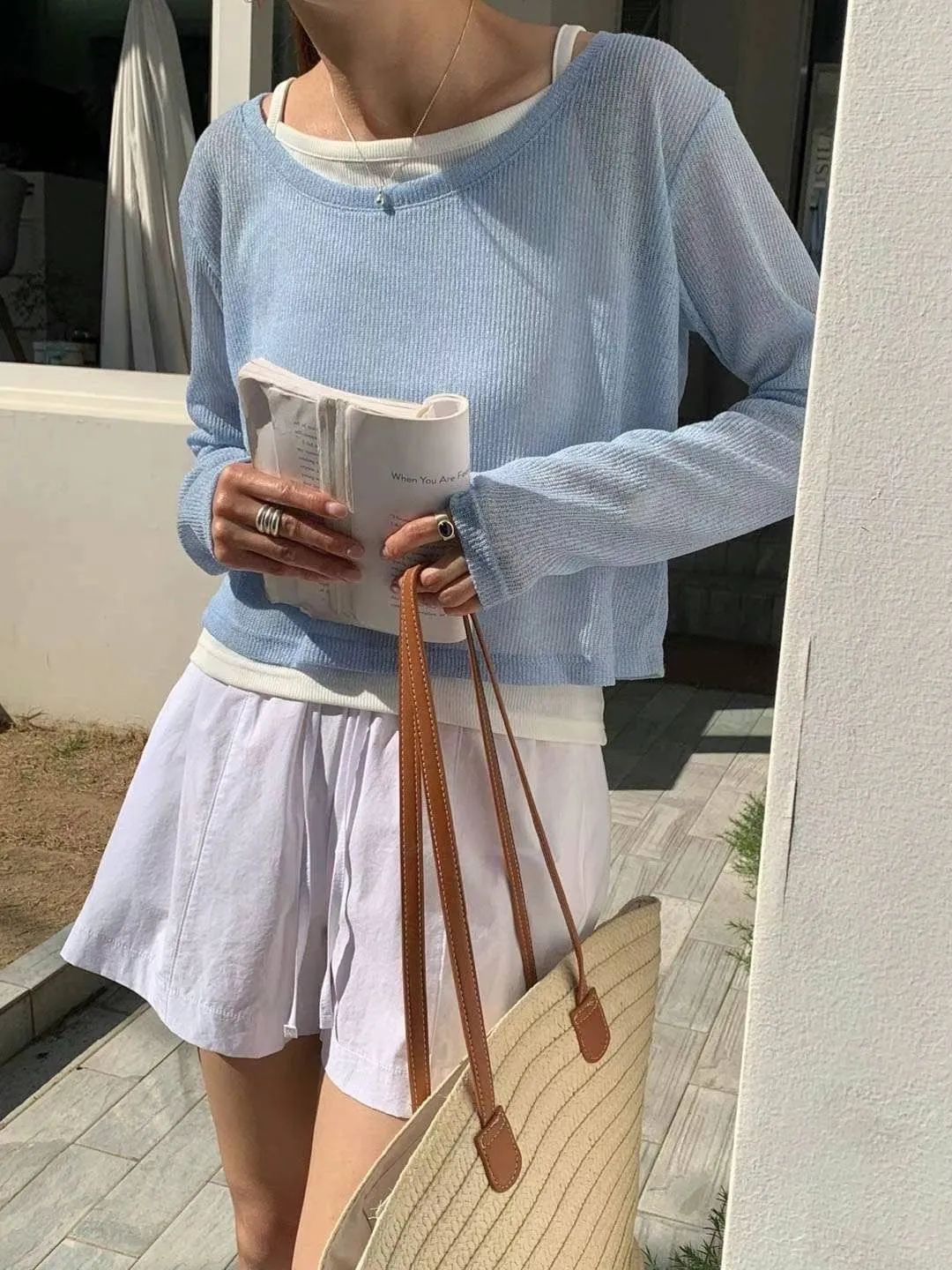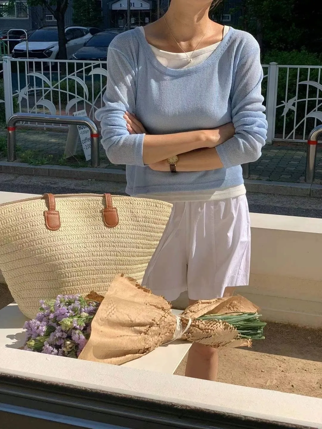 HJ016視覺層次休閒套裝(背心+長袖罩衫) 白 灰 淺藍 深藍 官網價$490 線上價$460