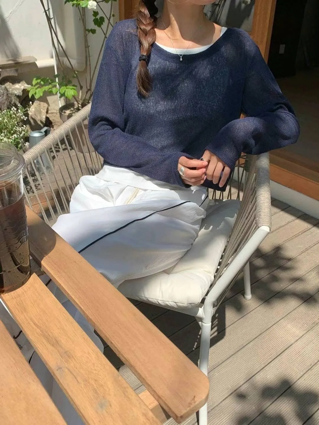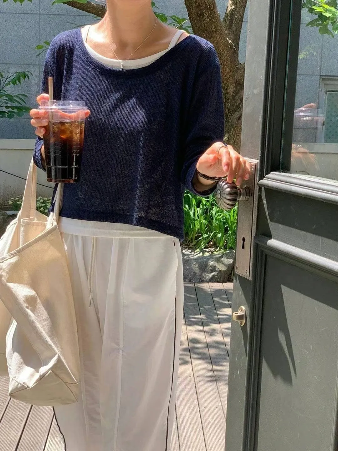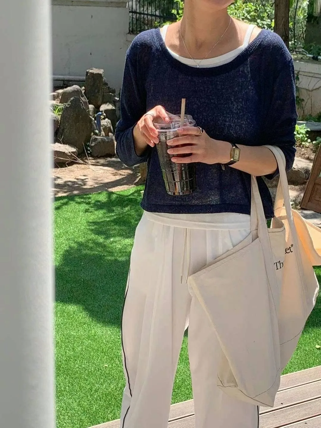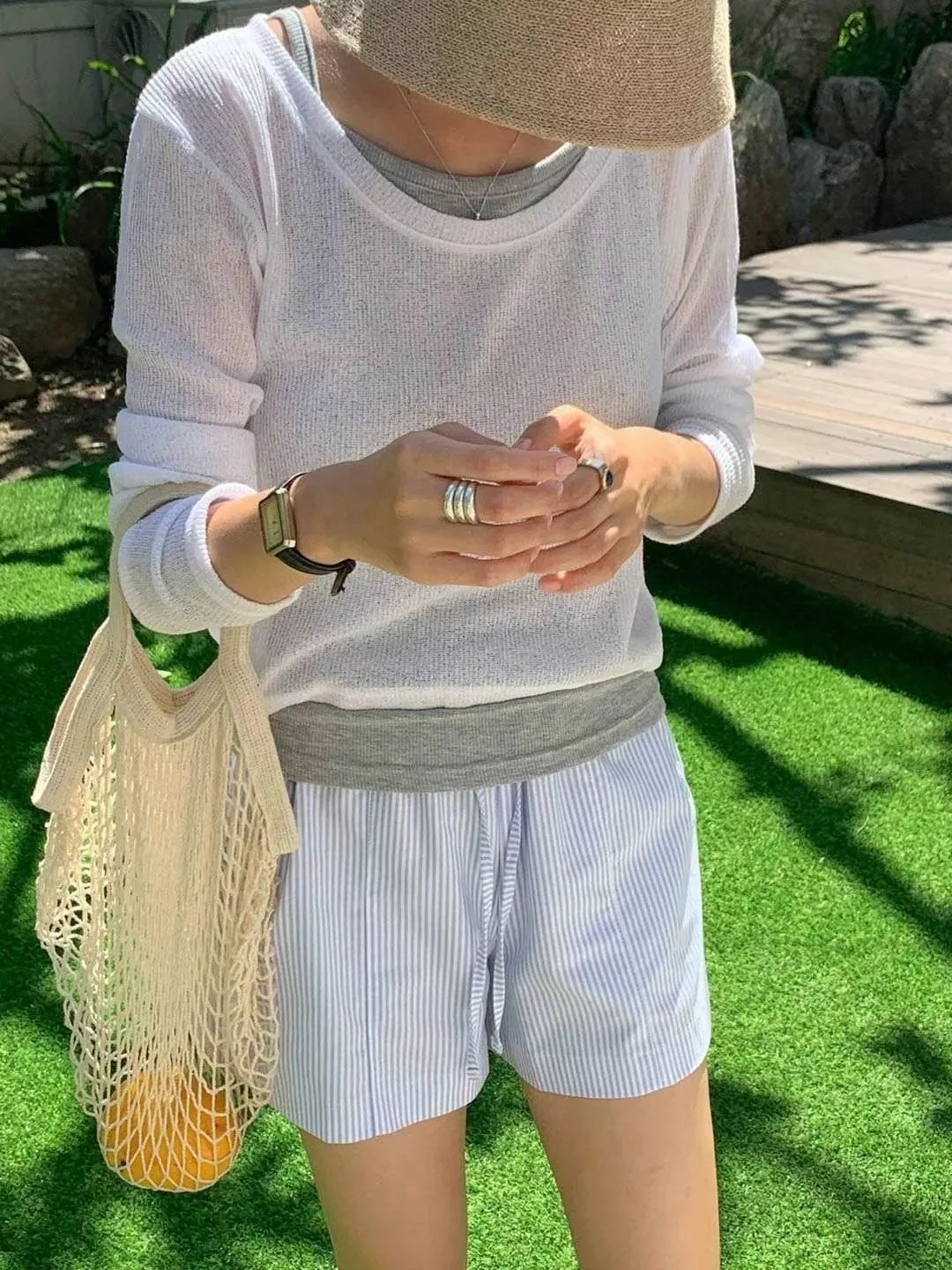 HJ016視覺層次休閒套裝(背心+長袖罩衫) 白 灰 淺藍 深藍 官網價$490 線上價$460