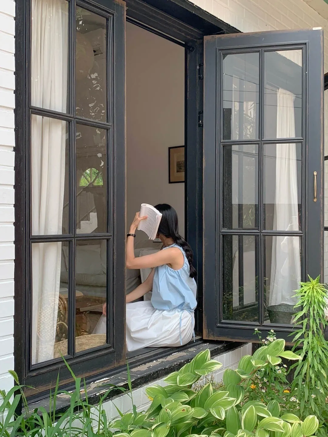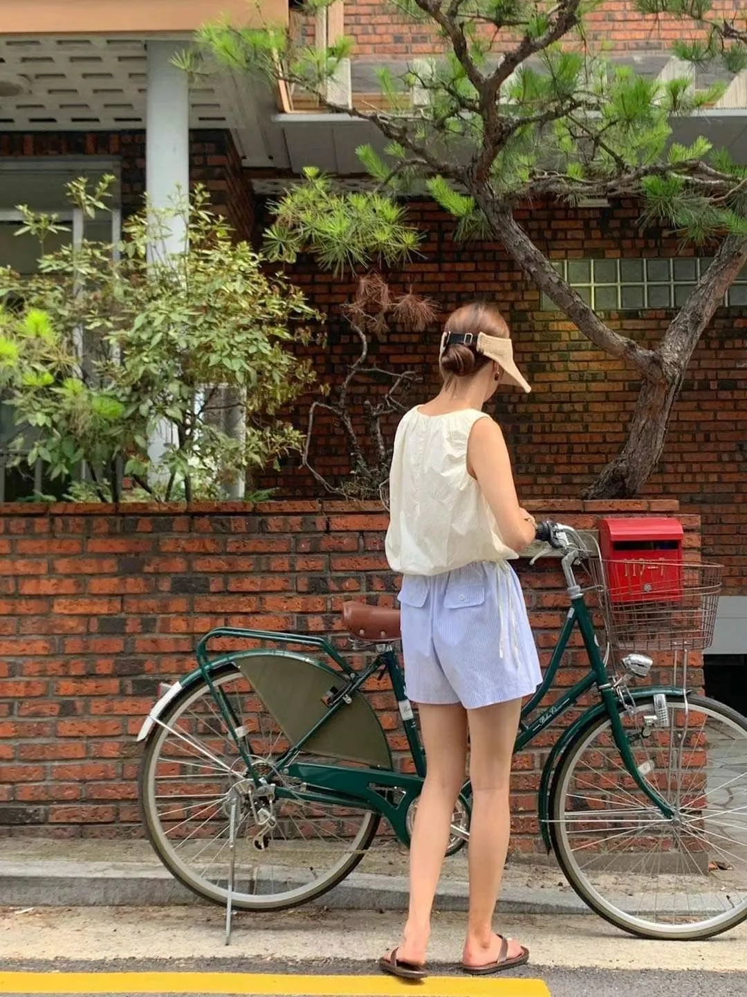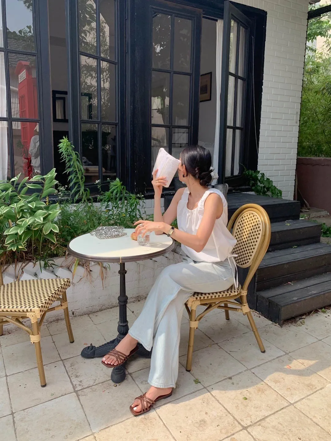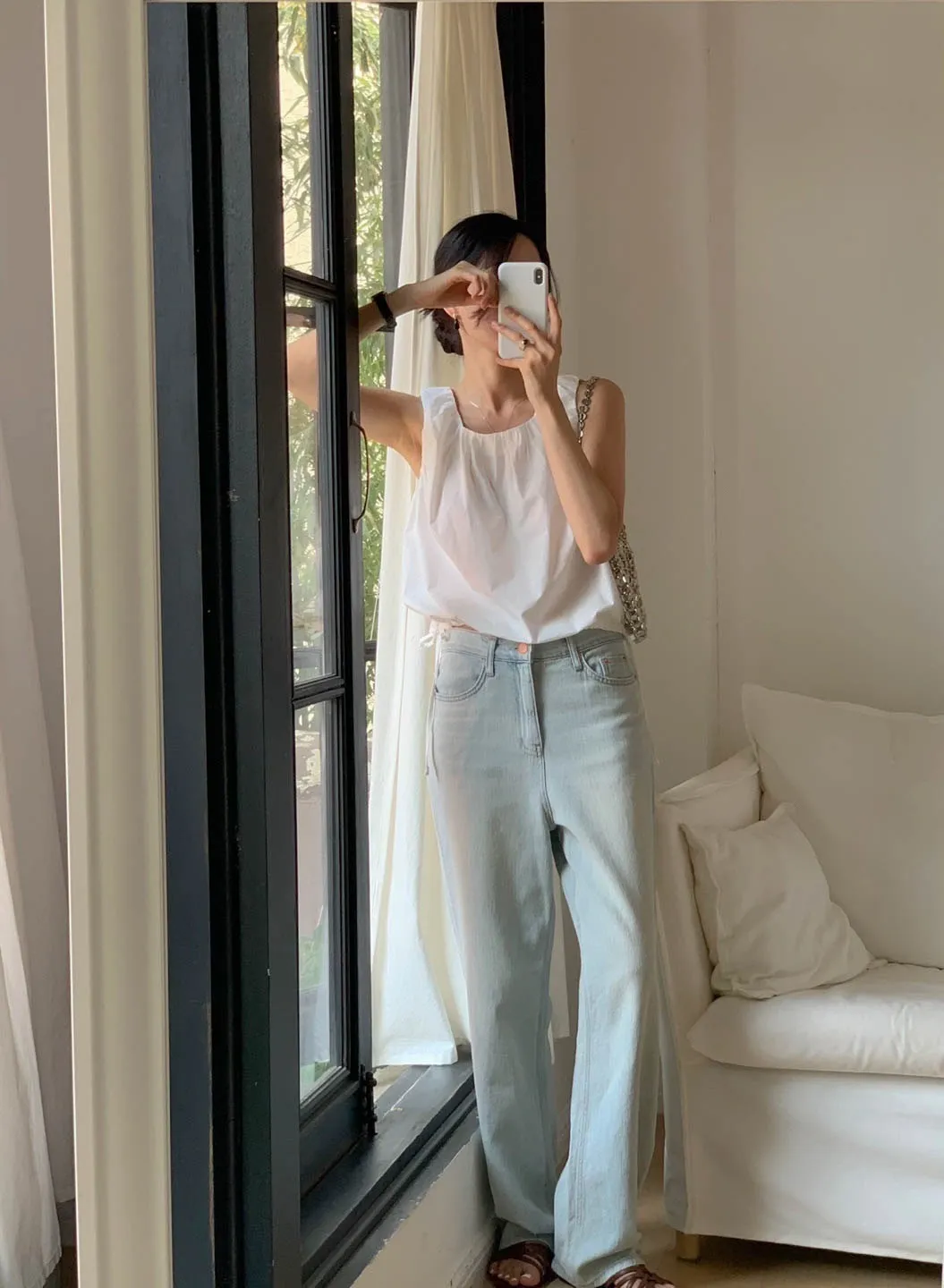 HJ019雲朵寬肩帶側腰雙綁帶無袖上衣 白 米 藍 官網價$670 線上價$640
