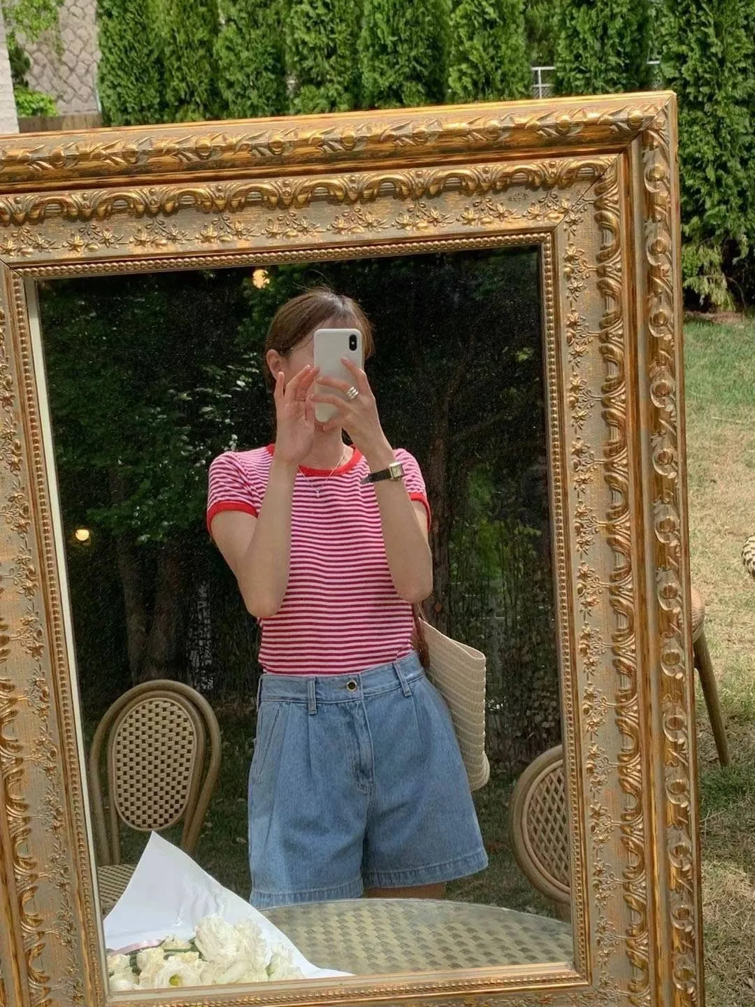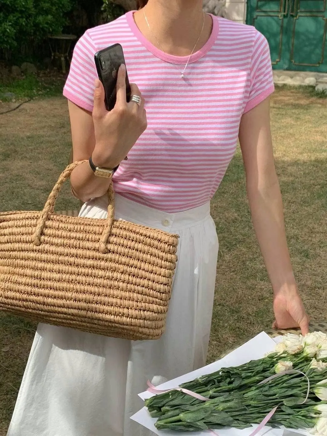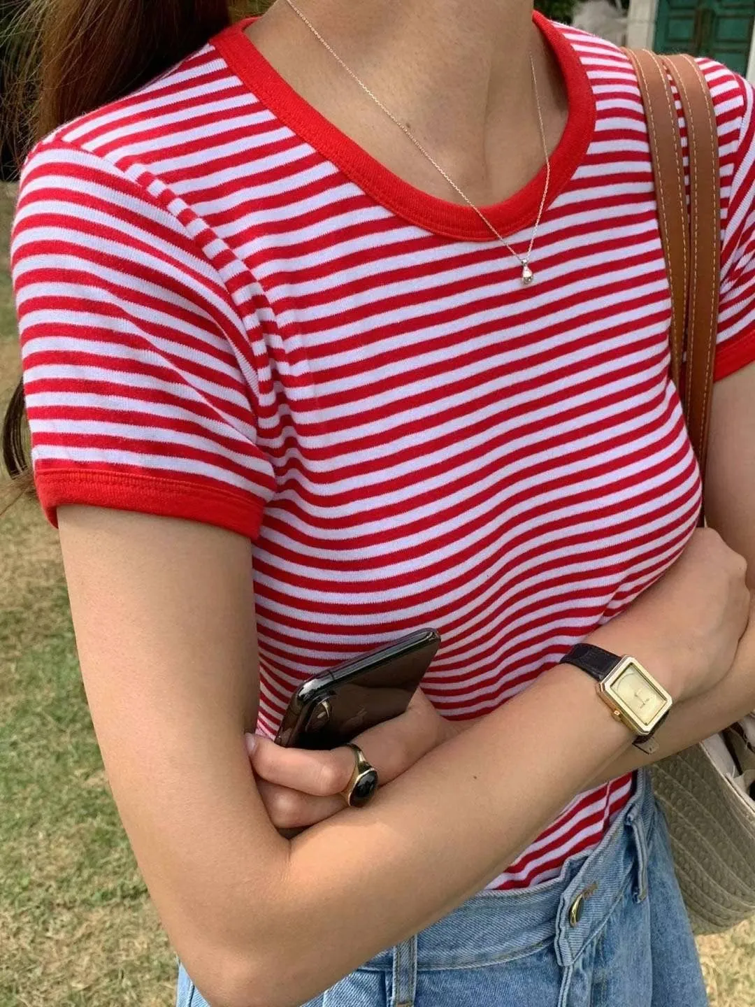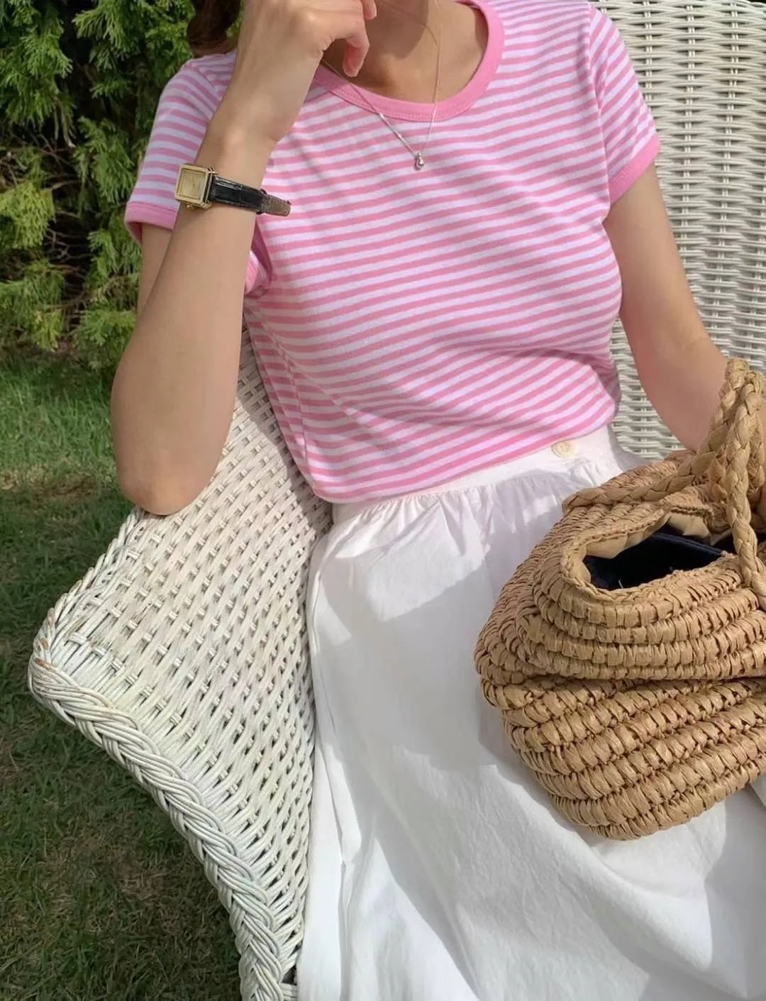 HJ020推薦款滾邊橫條紋Tshirt 藍 灰 紅 粉 黑 官網價$380 線上價$350