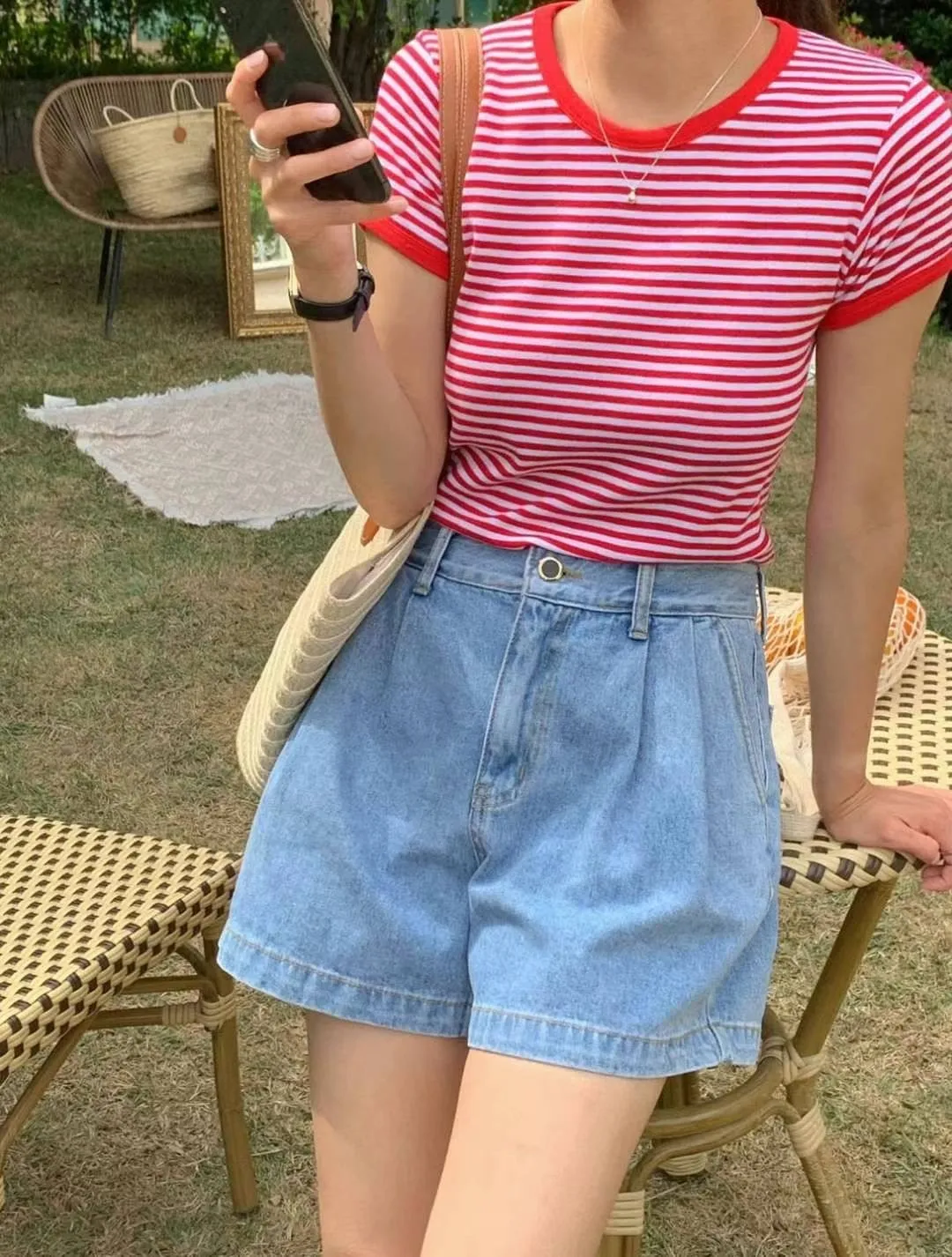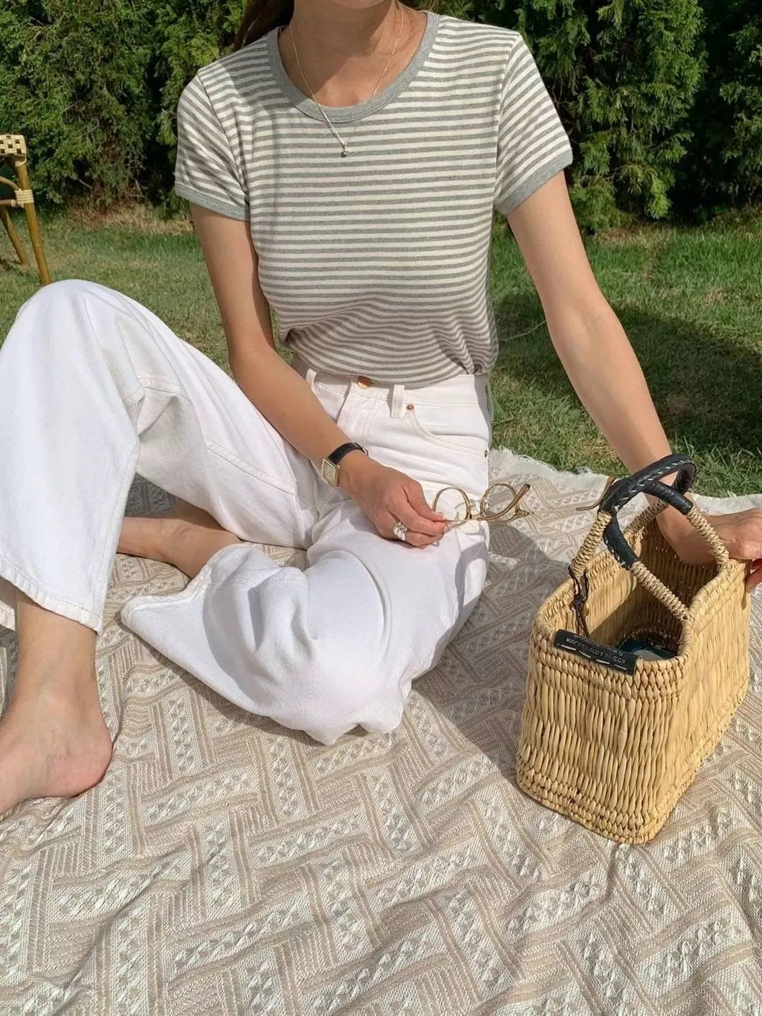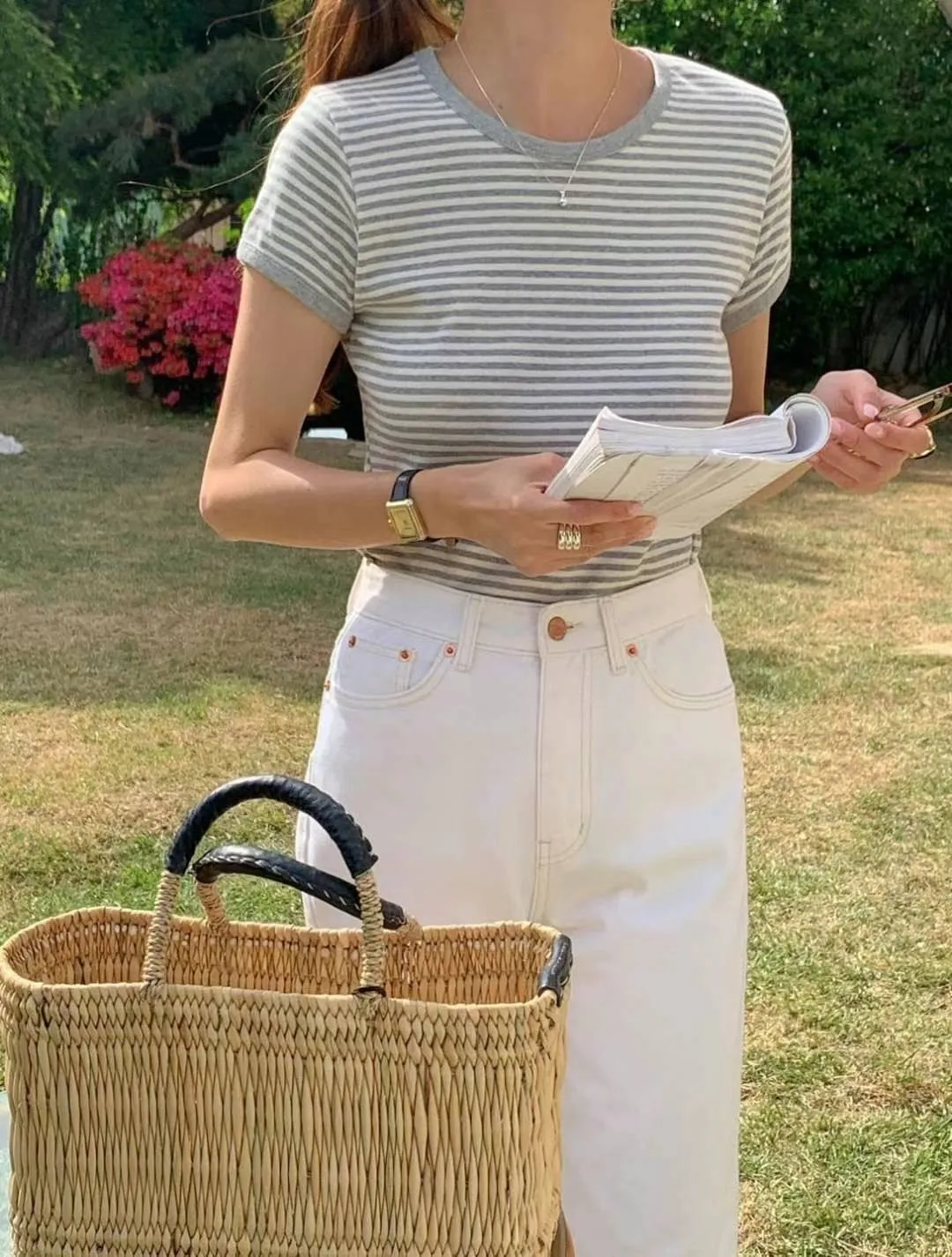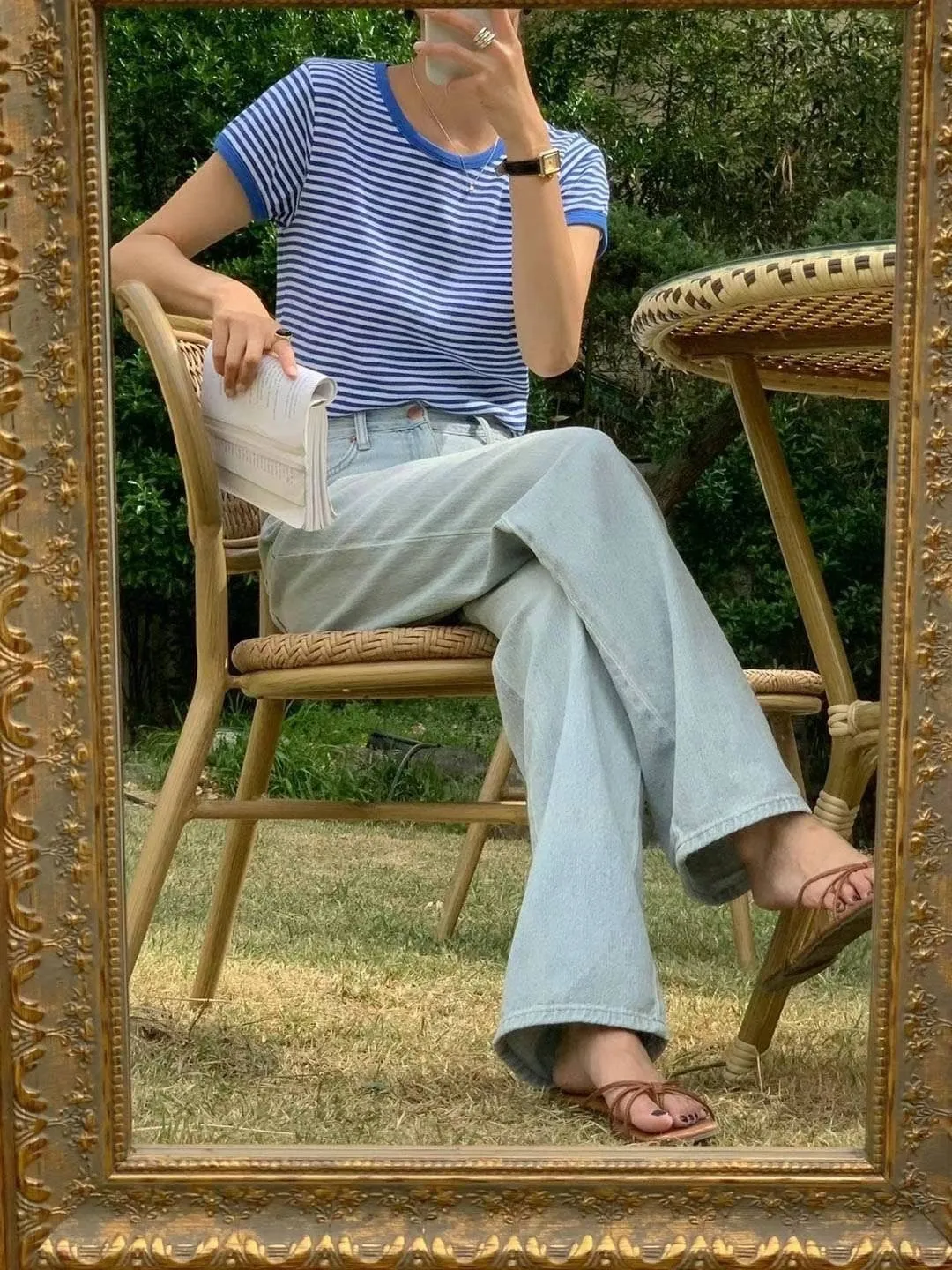 HJ020推薦款滾邊橫條紋Tshirt 藍 灰 紅 粉 黑 官網價$380 線上價$350