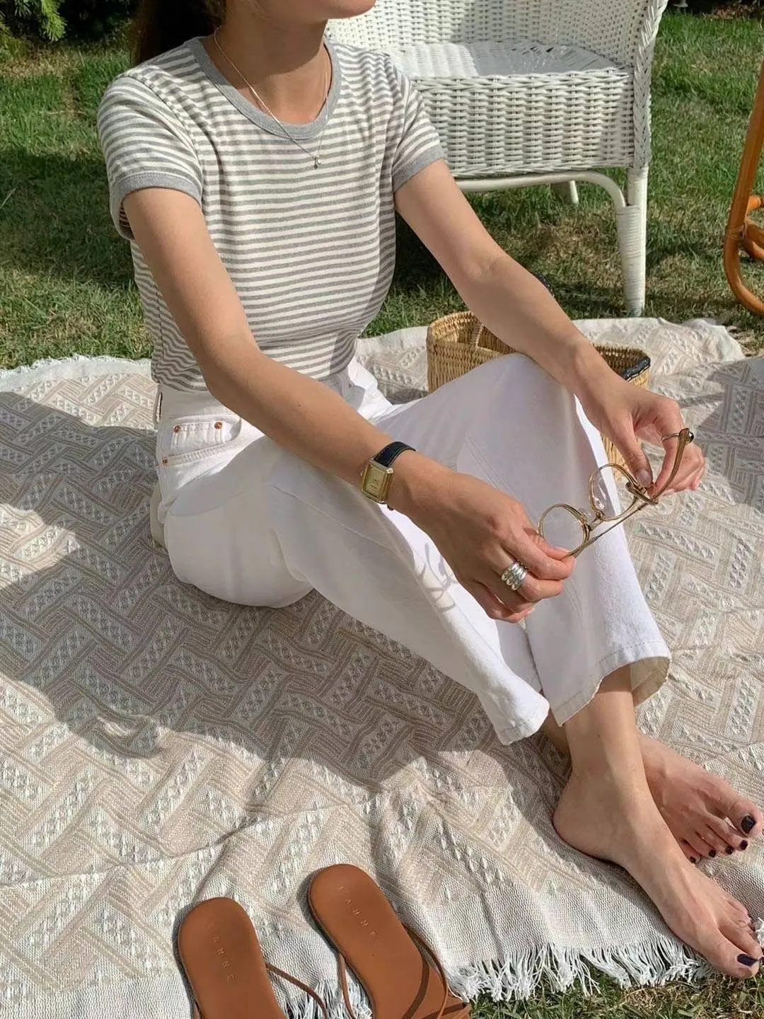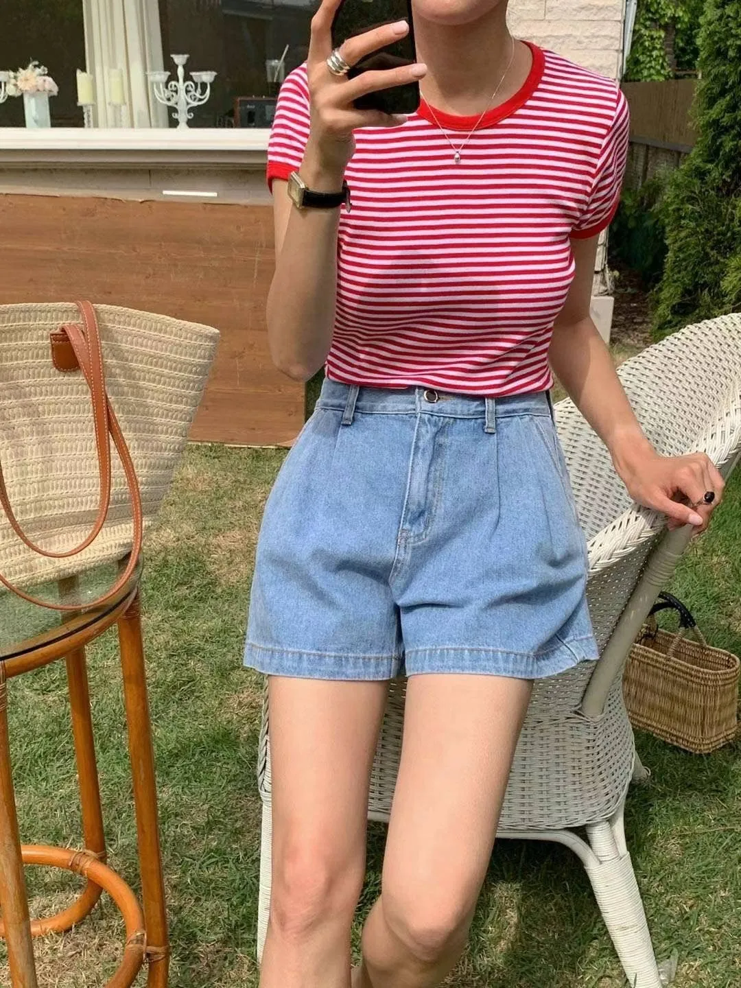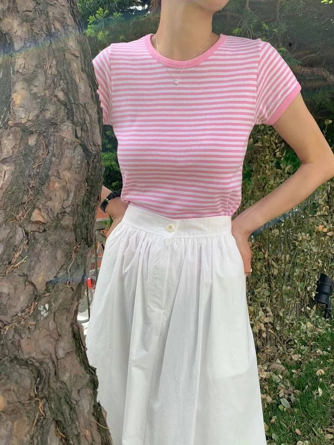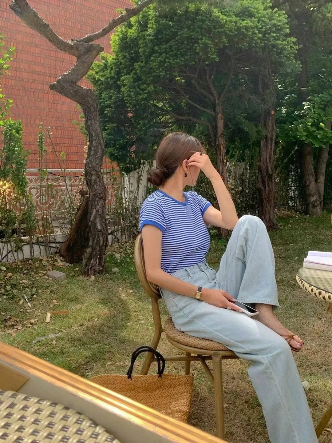 HJ020推薦款滾邊橫條紋Tshirt 藍 灰 紅 粉 黑 官網價$380 線上價$350