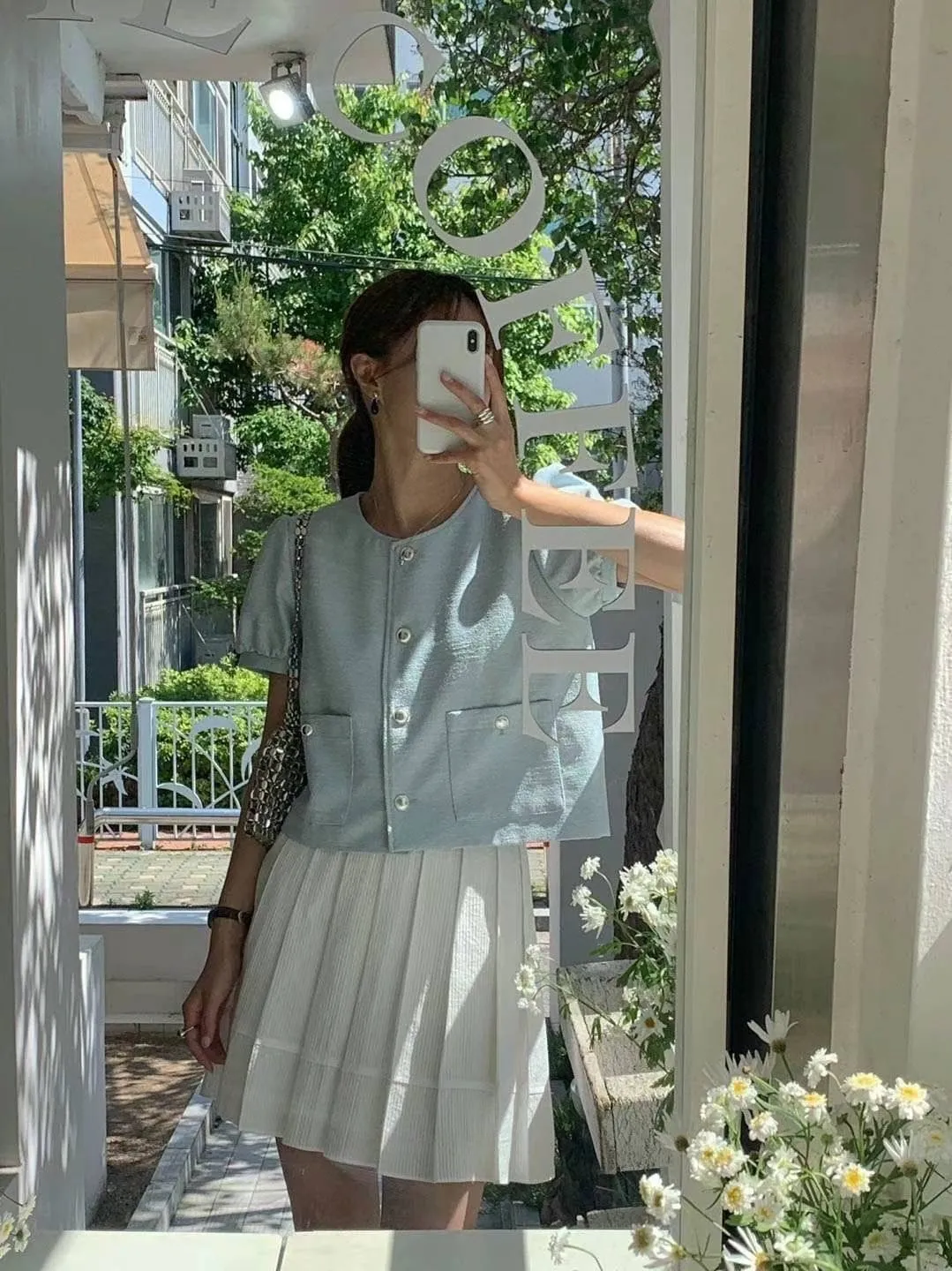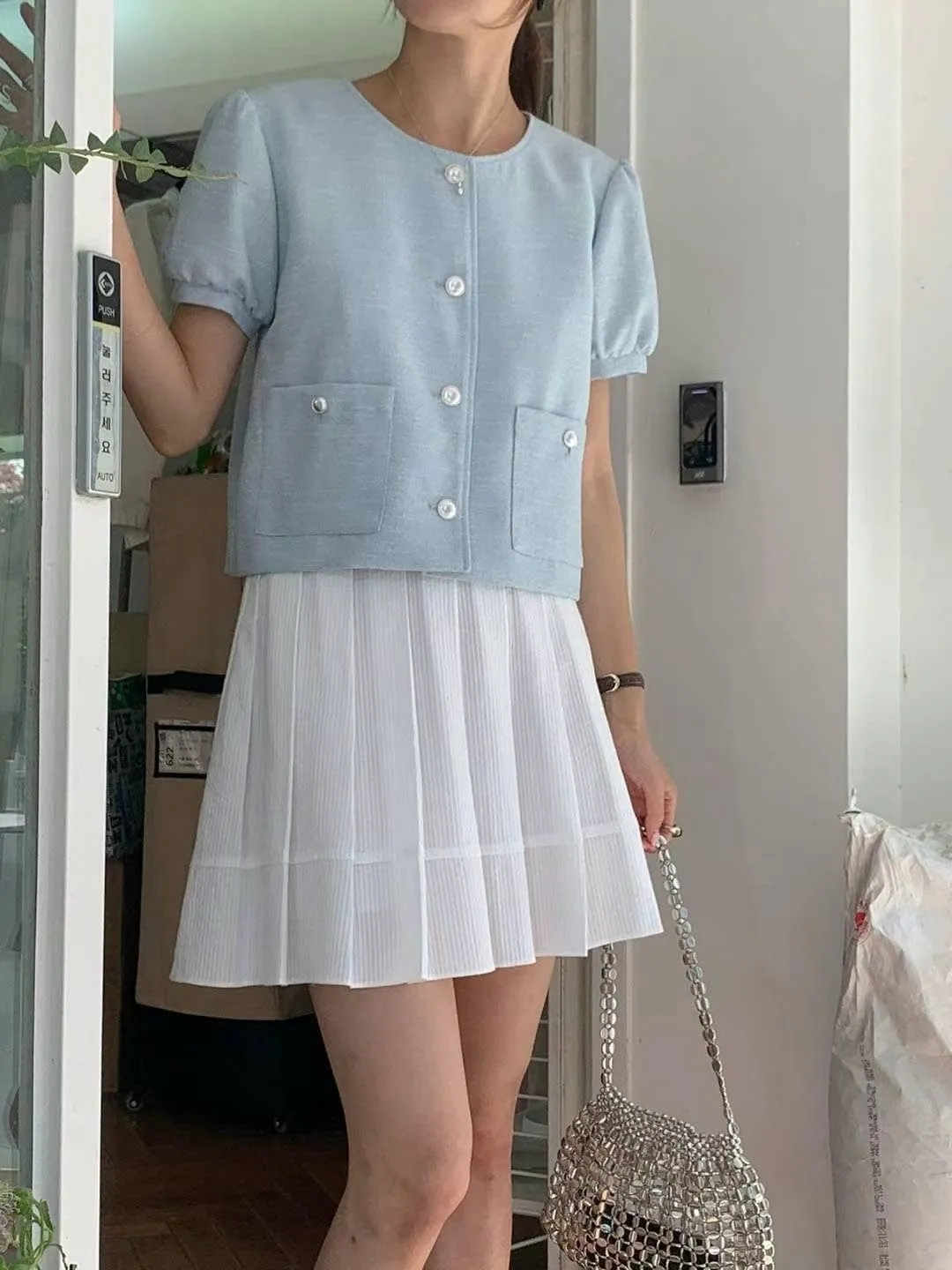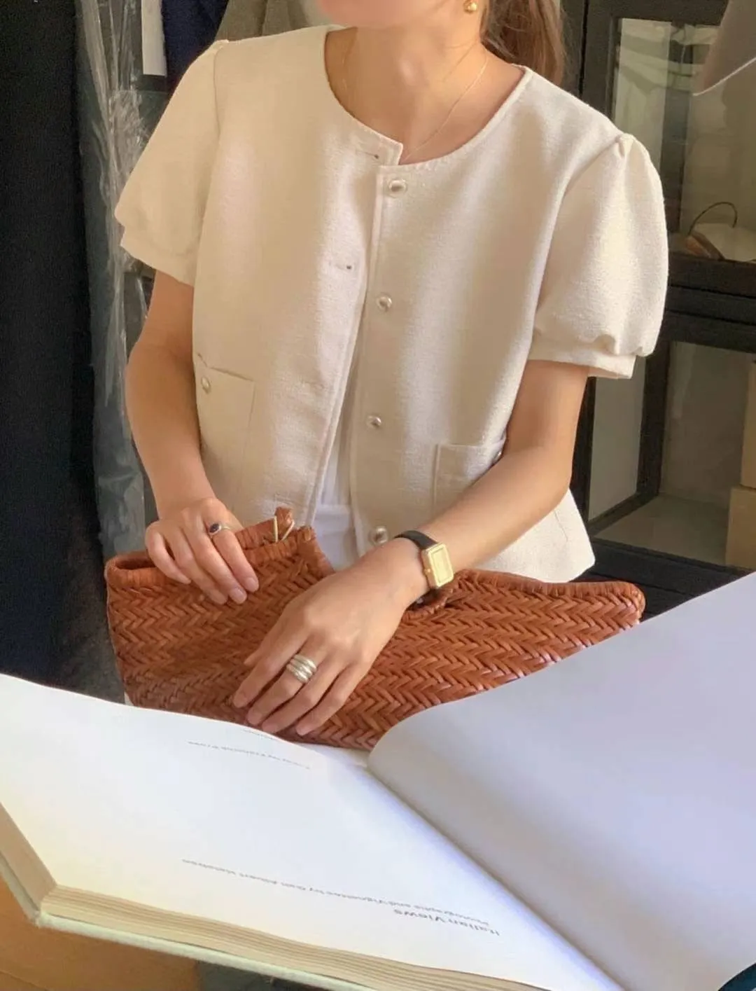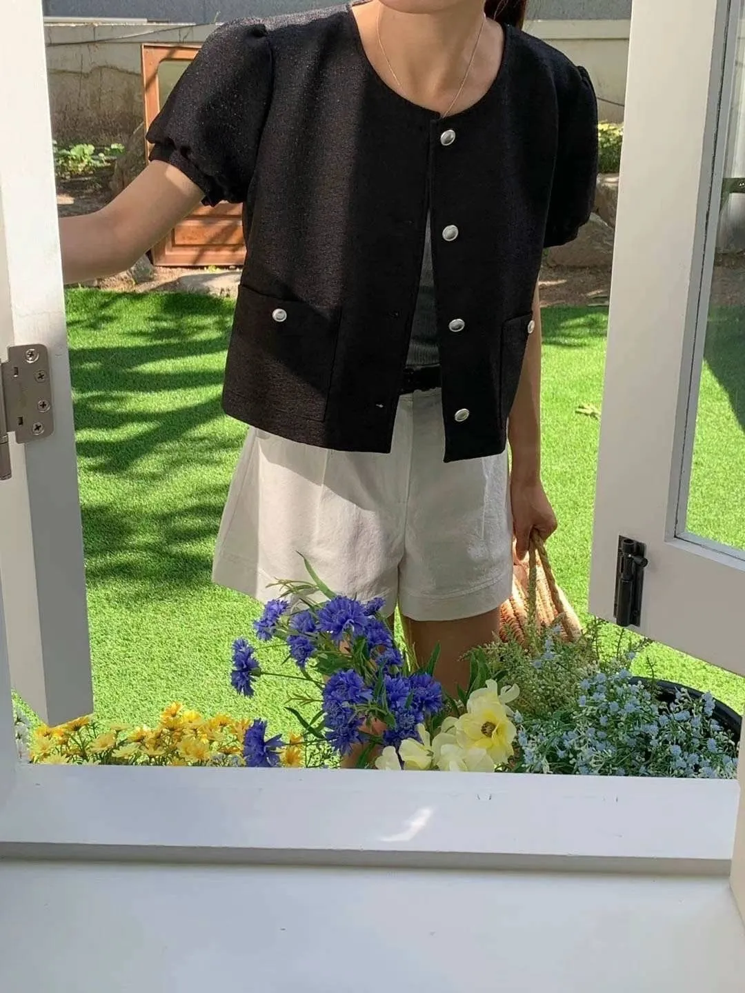 聚酯 排釦穿脫 質感銀釦 雙口袋 薄款有內裡 穿到M號 可上衣可外套