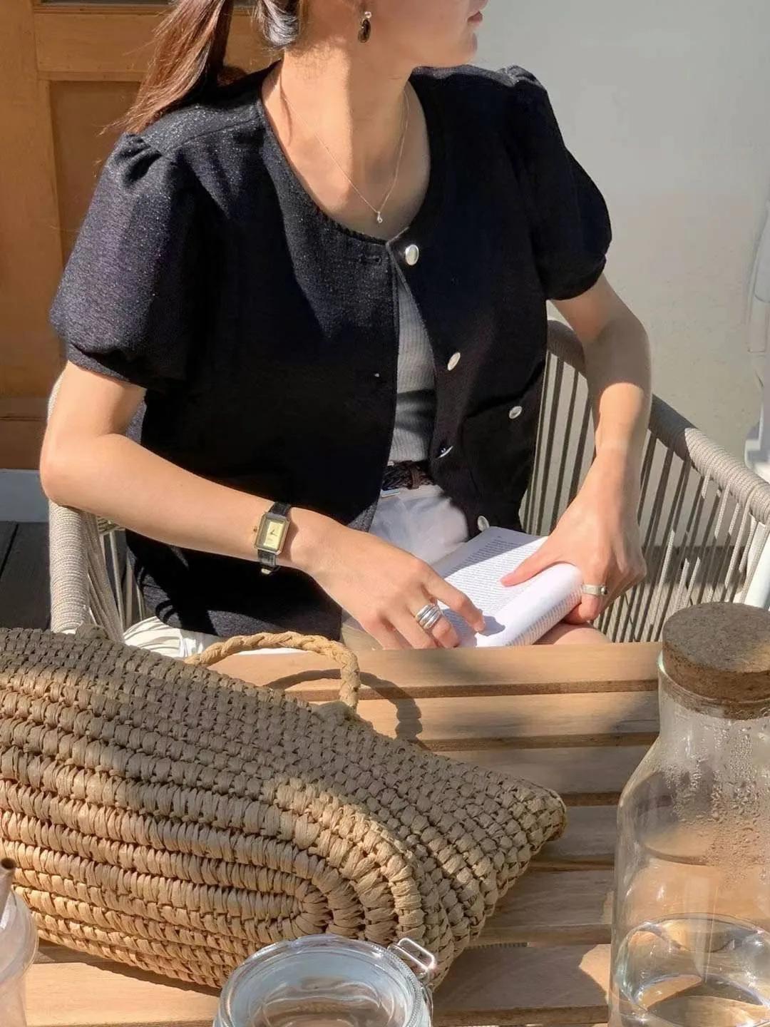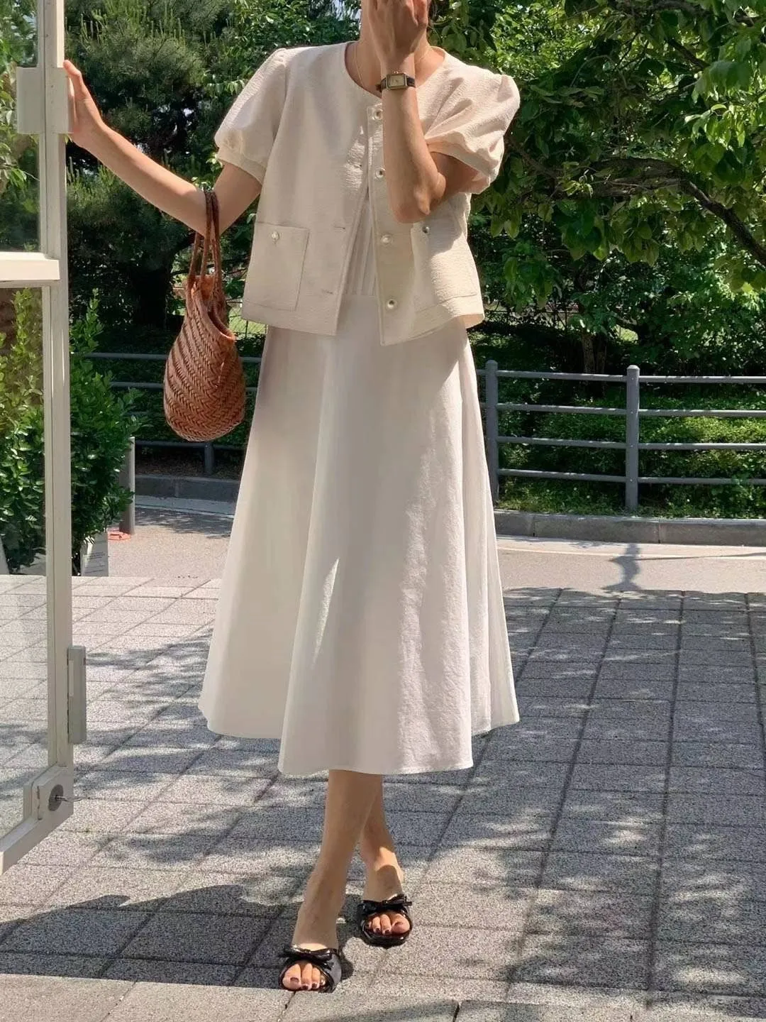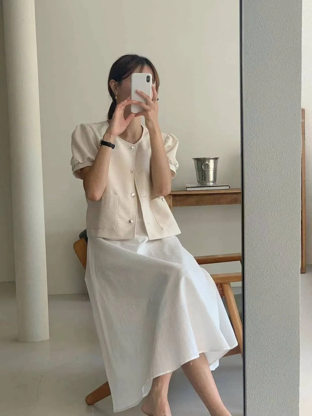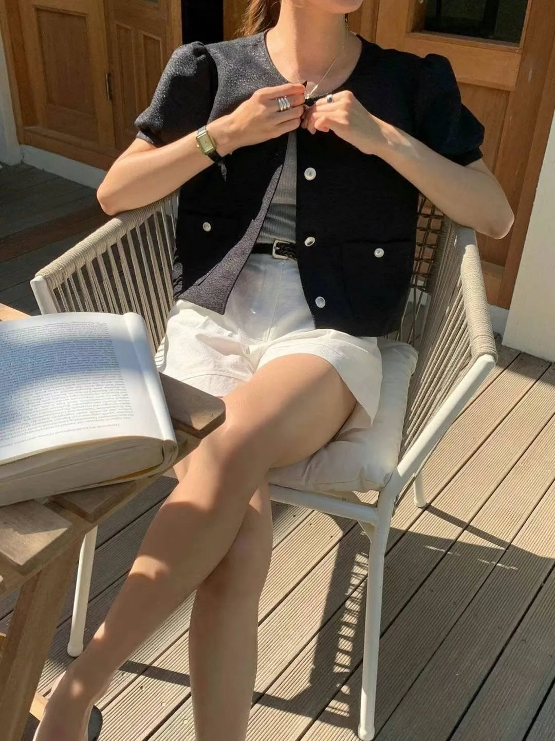 聚酯 排釦穿脫 質感銀釦 雙口袋 薄款有內裡 穿到M號 可上衣可外套