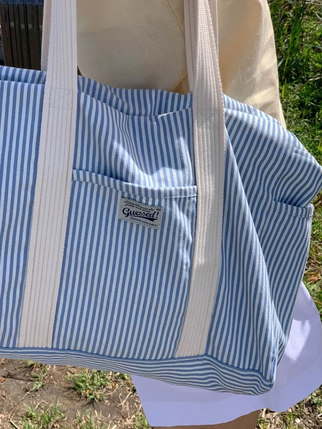 棉 拉鍊閉合 可折疊方便攜帶 宋宋自留條紋款 內部空間大