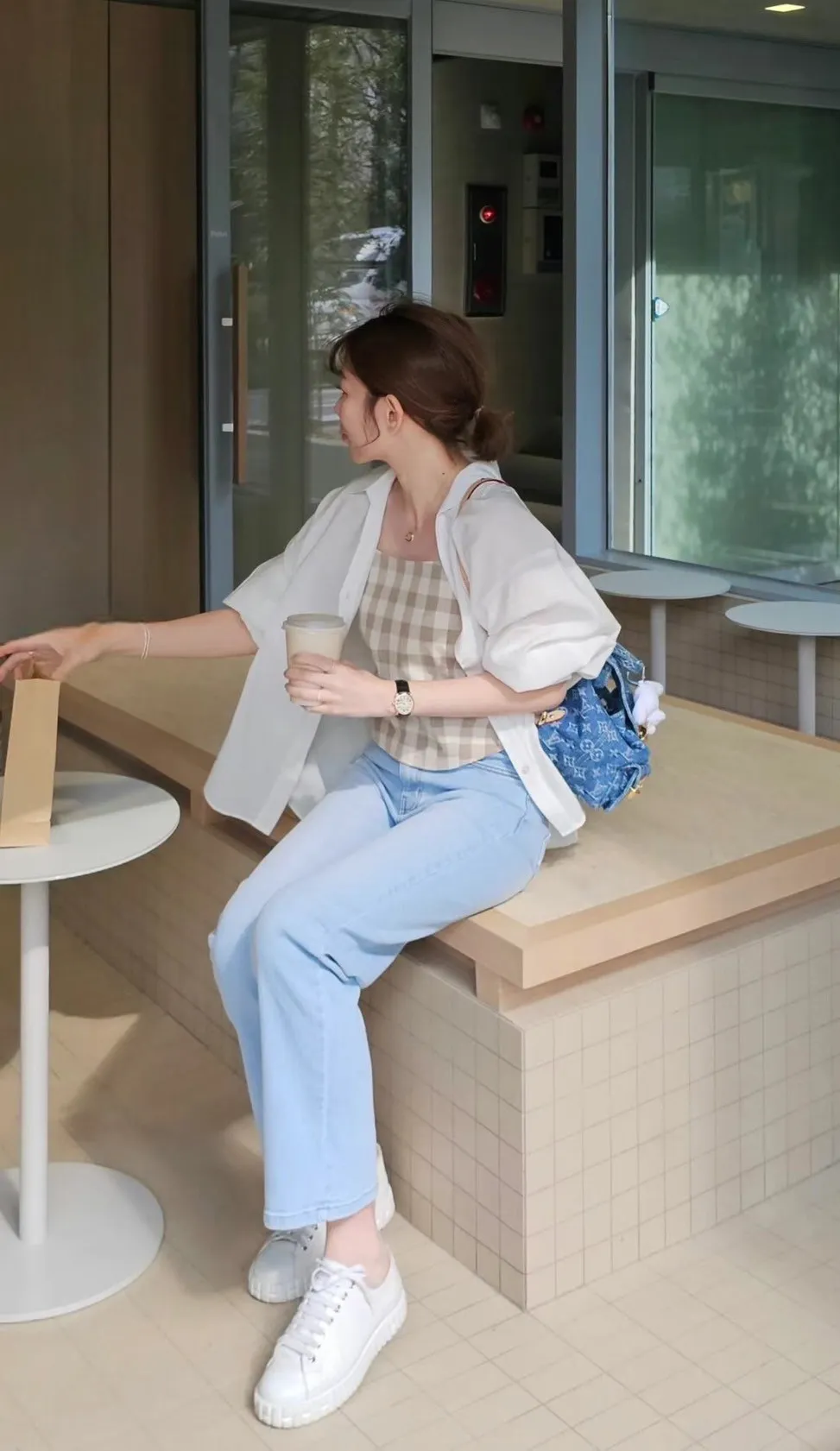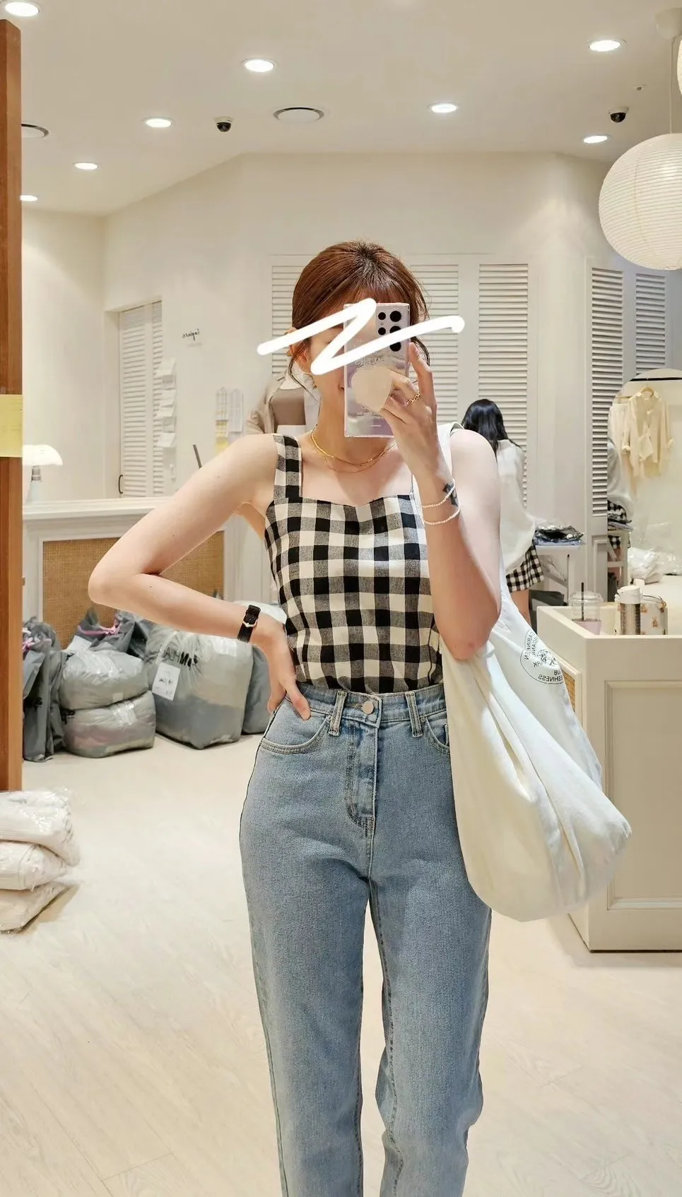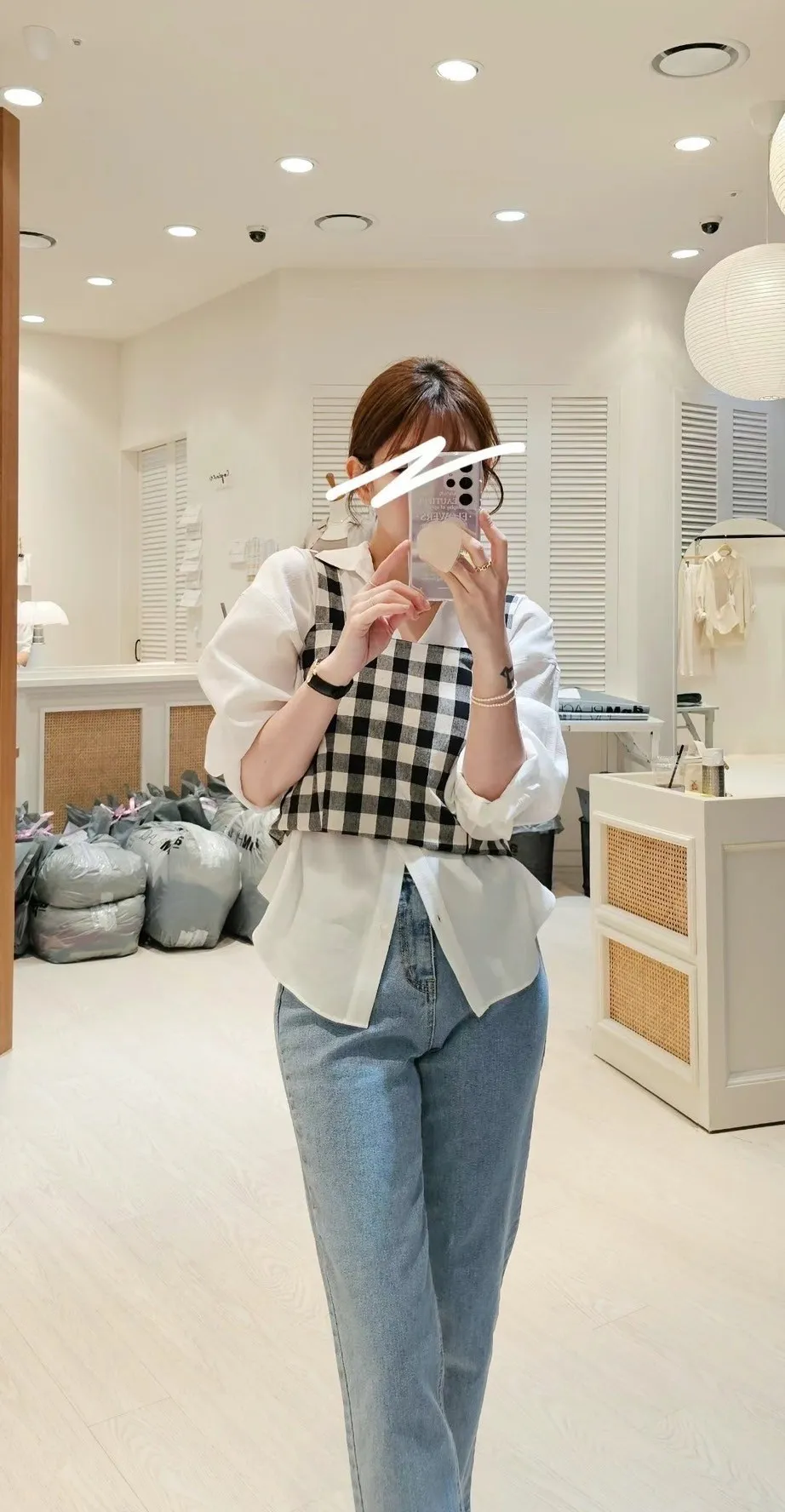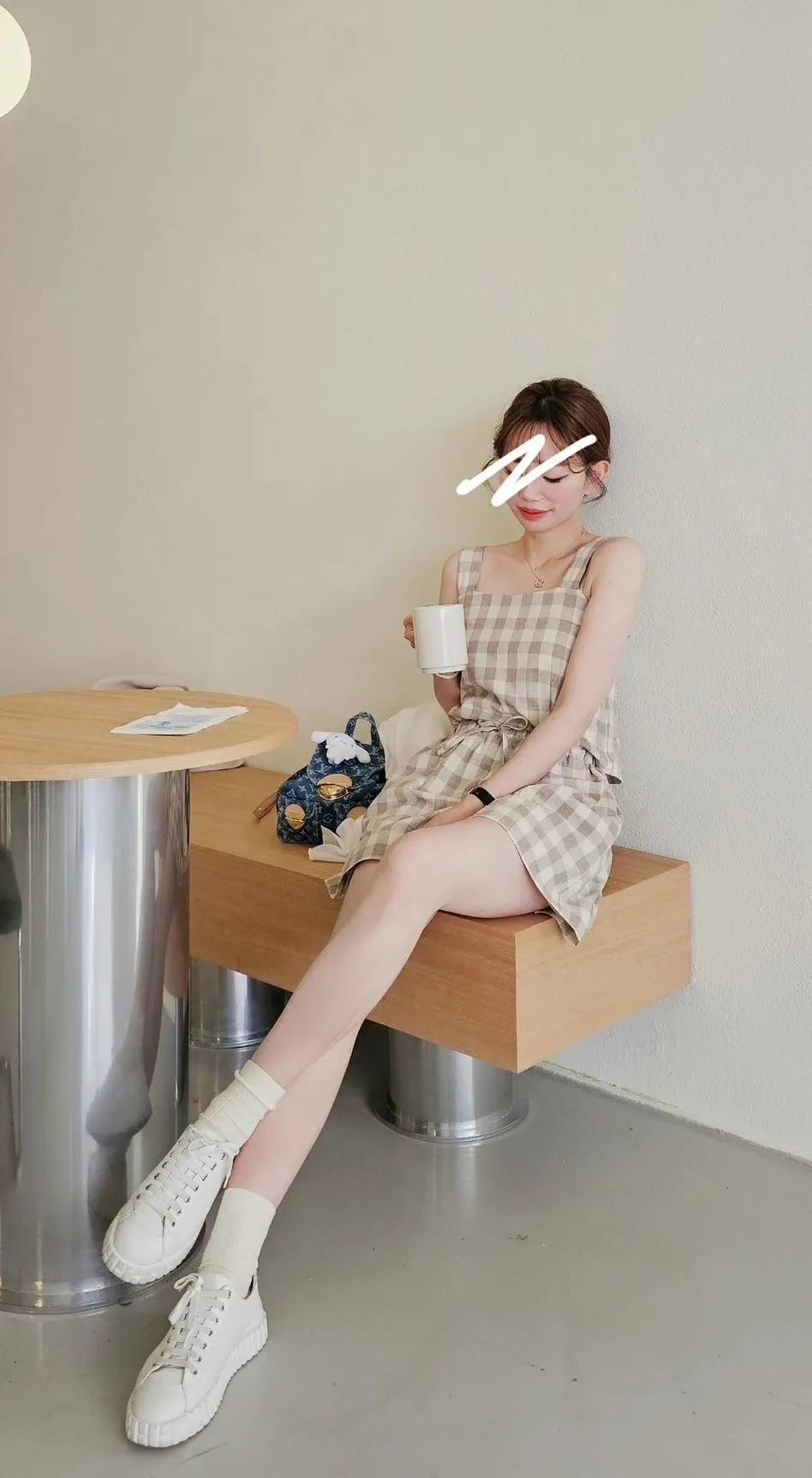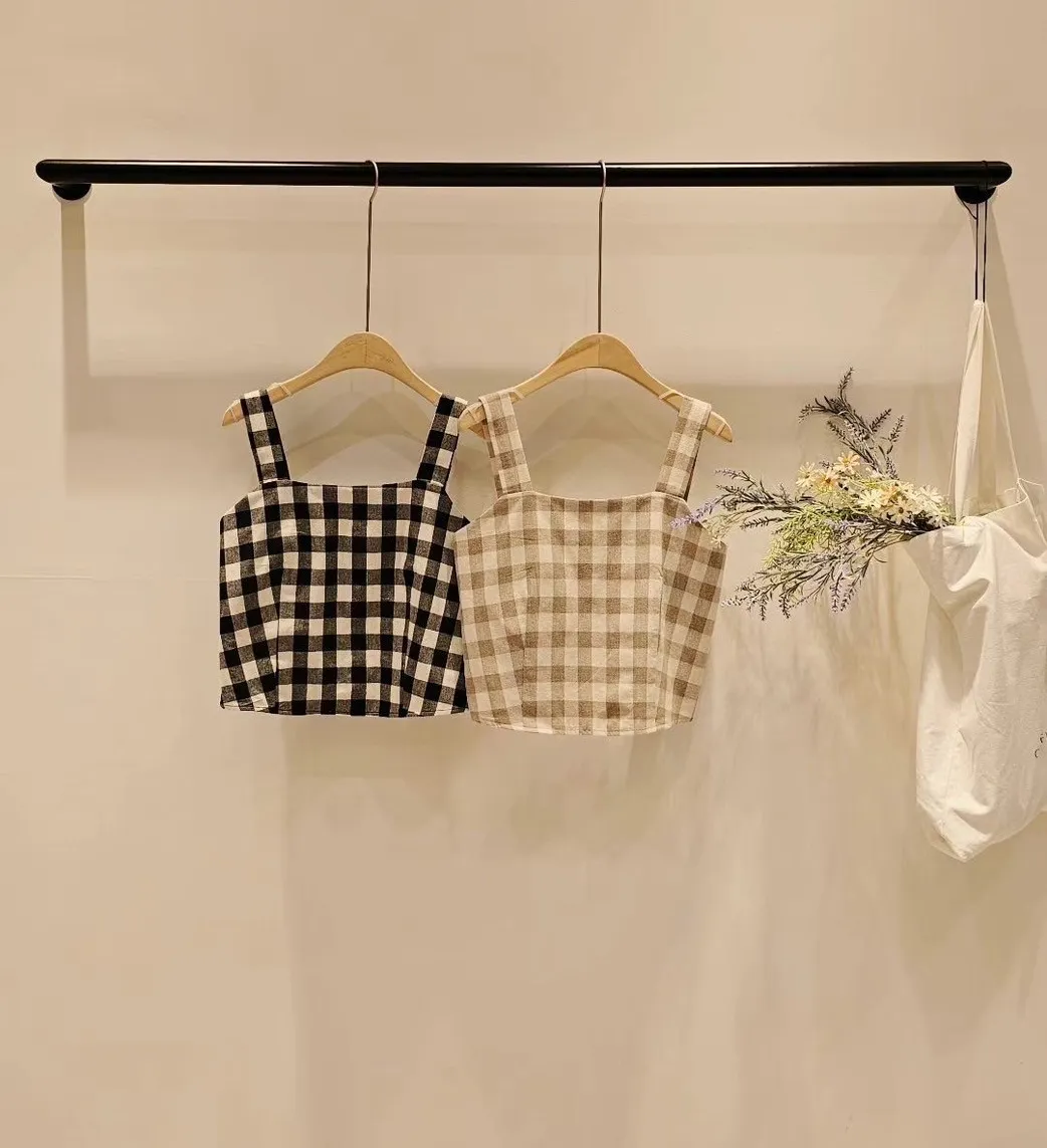 HJ046套裝的可愛時尚格紋上衣 咖 黑 官網價$1020 線上價$990