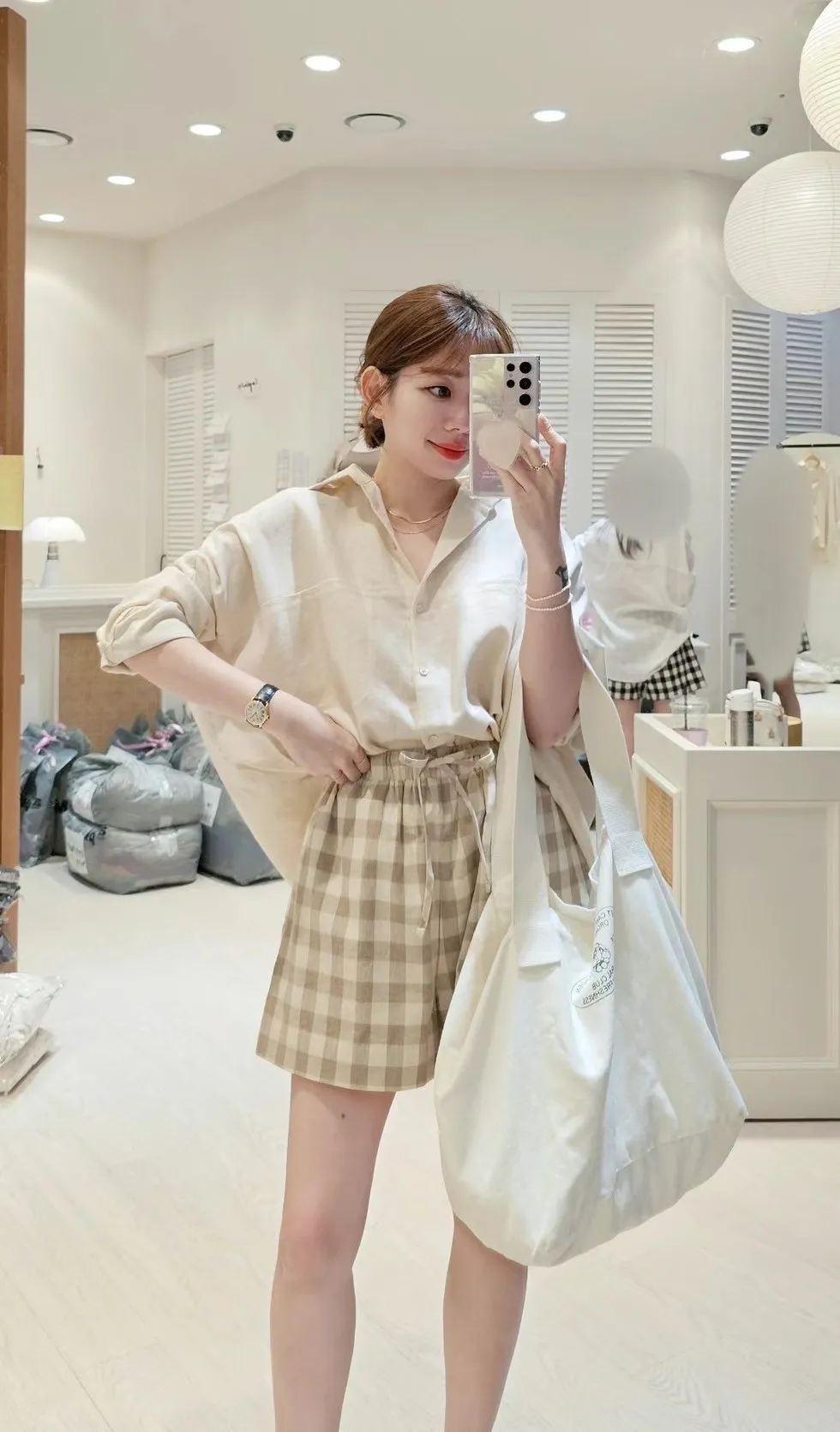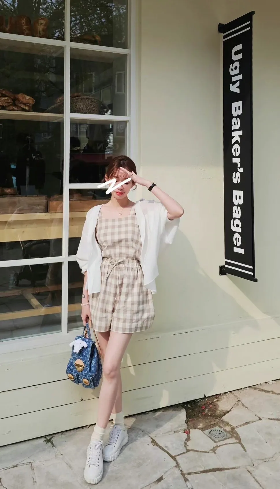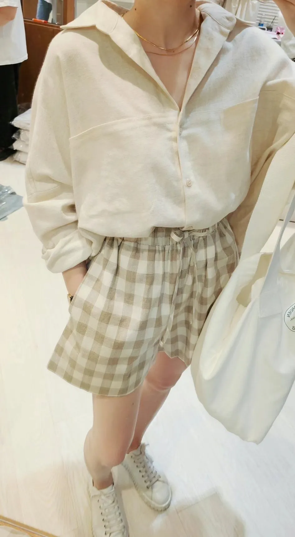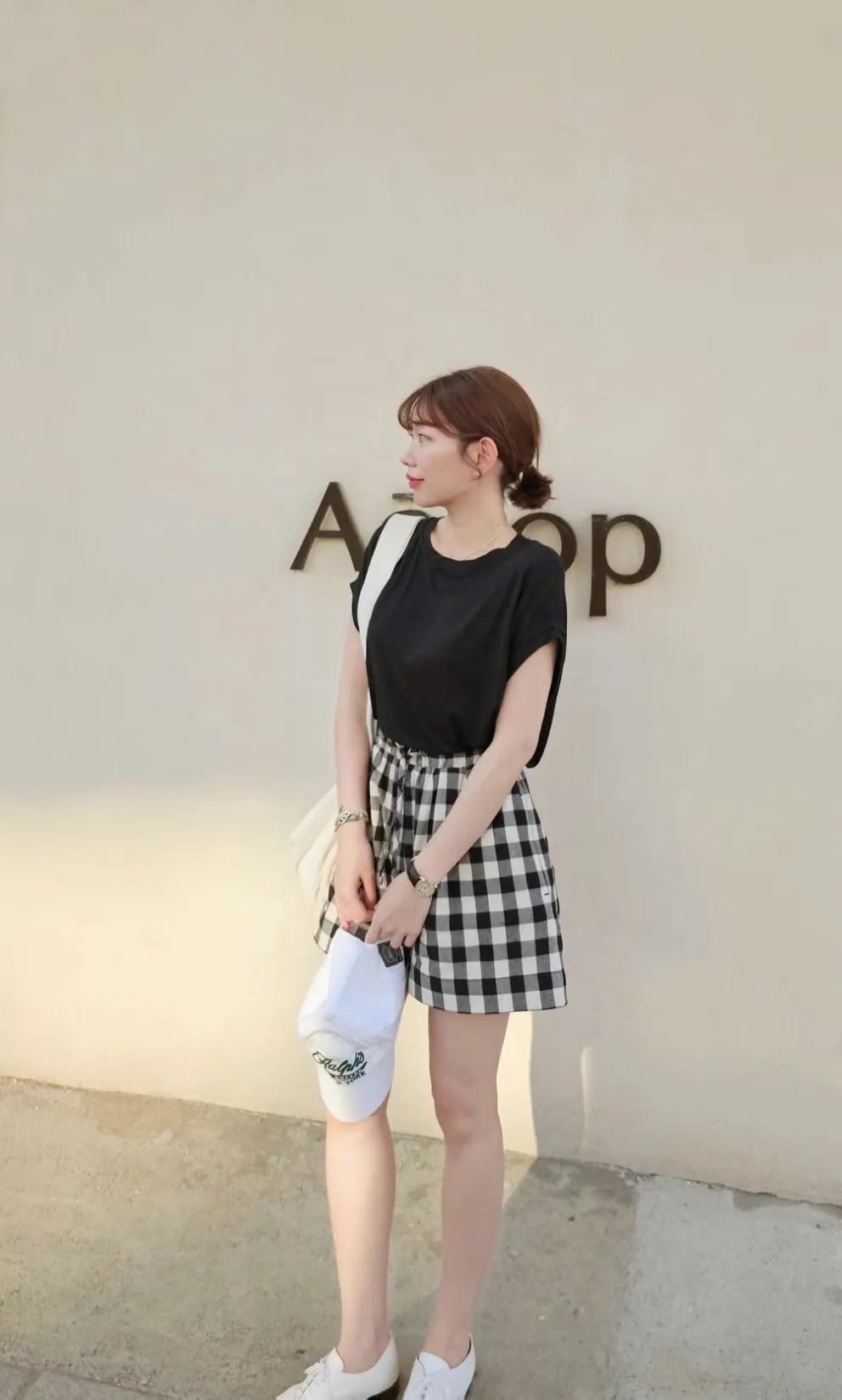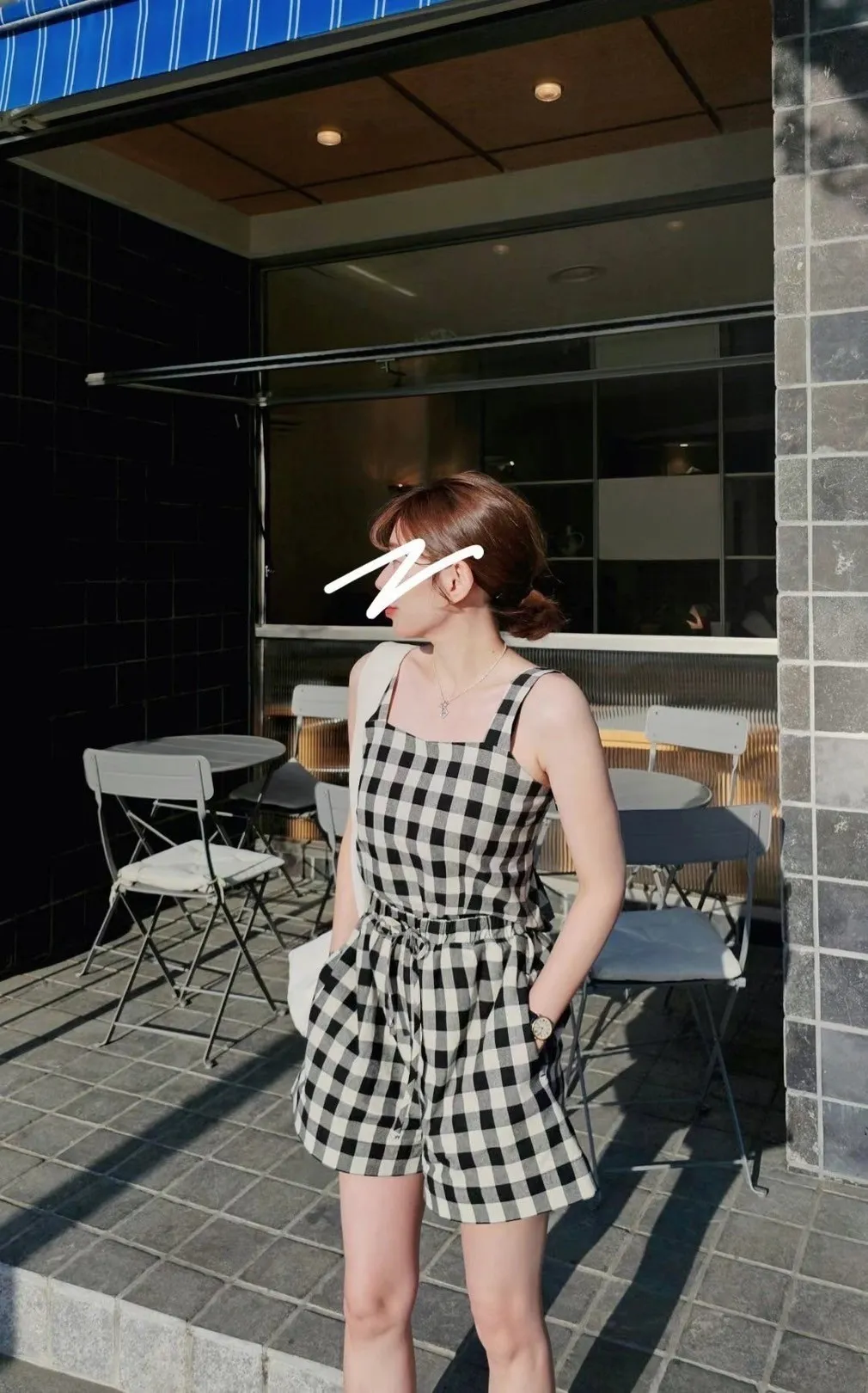 HJ047套裝的可愛時尚格紋短褲 咖 黑 官網價$1100 線上價$1070