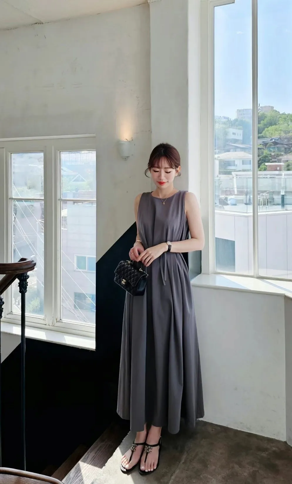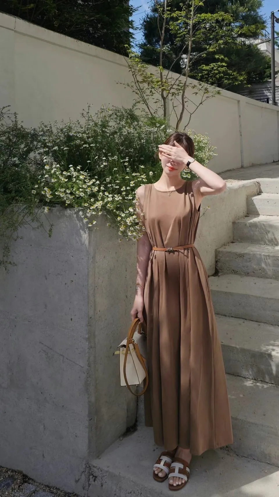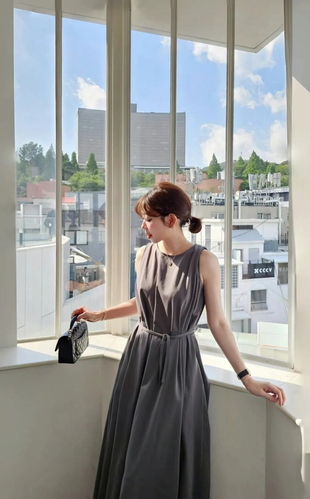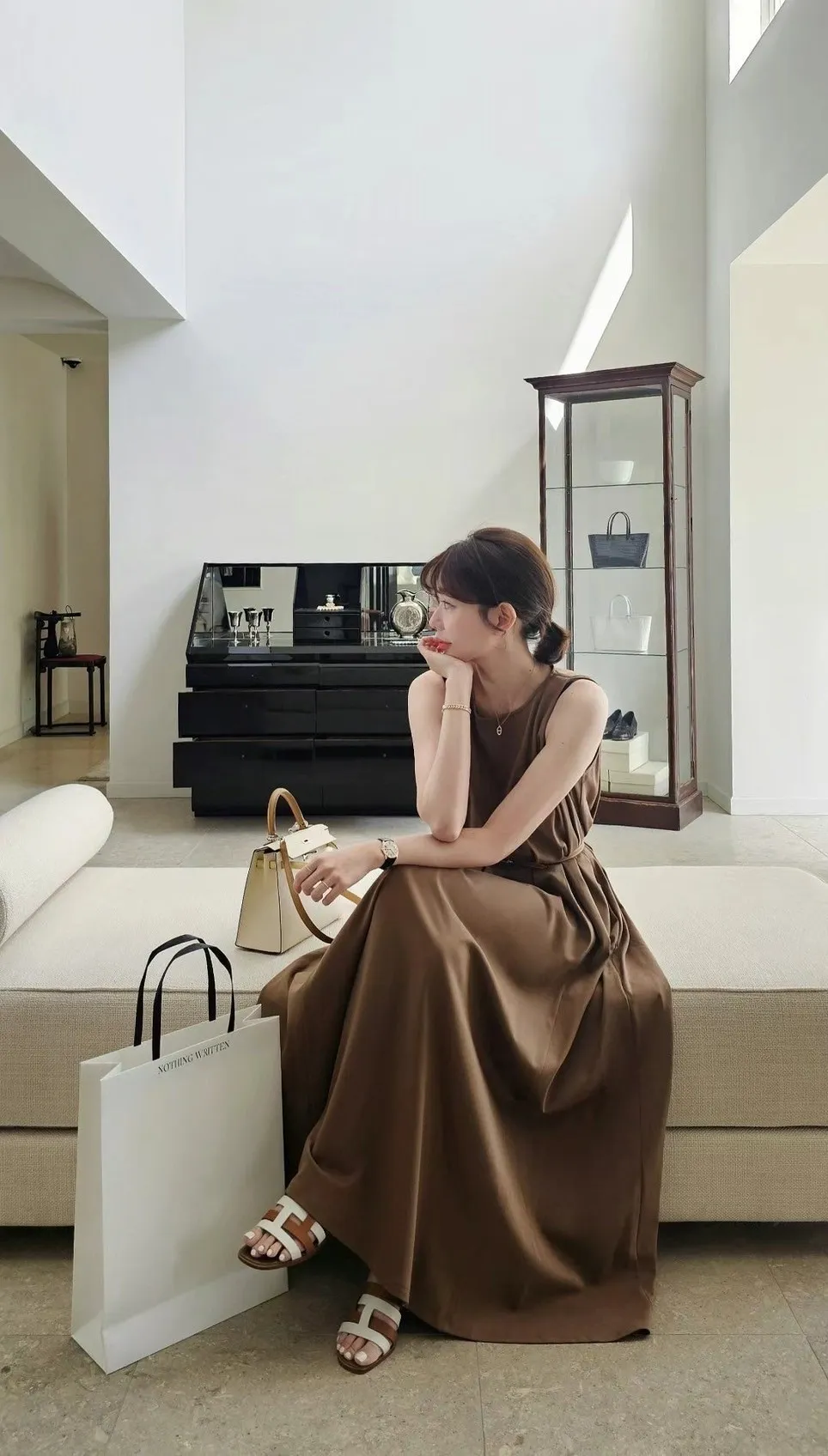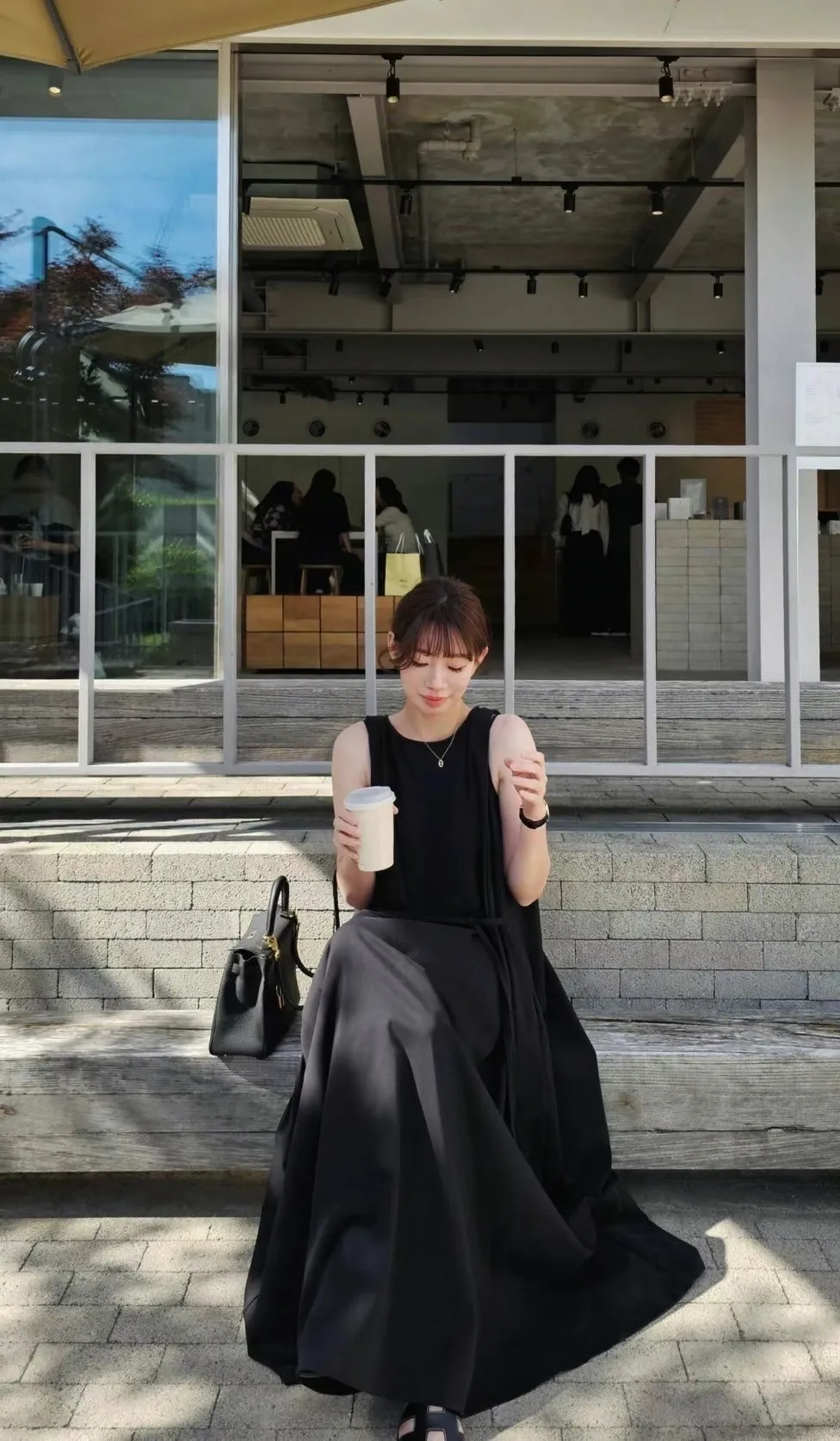 HJ048貴氣小名媛極簡時尚長洋裝 黑 墨 咖 官網價$1890 線上價$1860