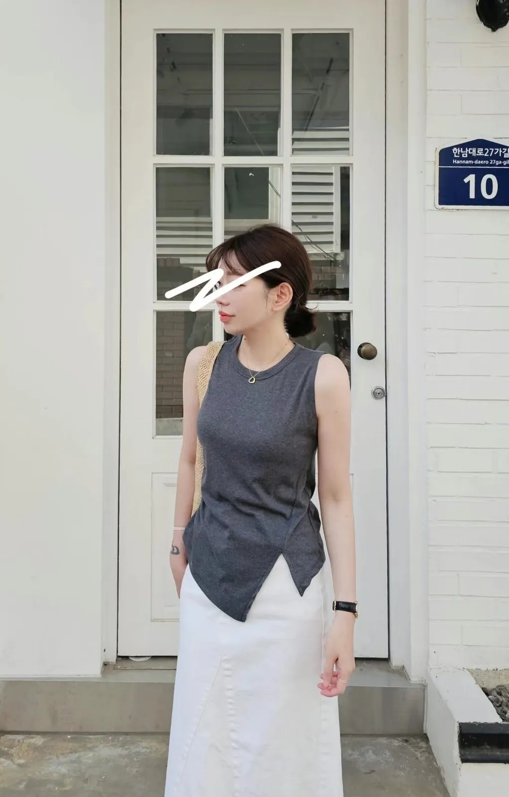 HJ049後現代知性美不對稱剪裁背心 白 灰 黑 官網價$750 線上價$720