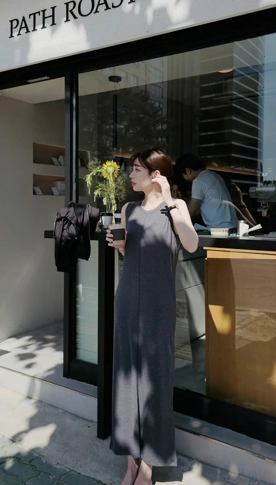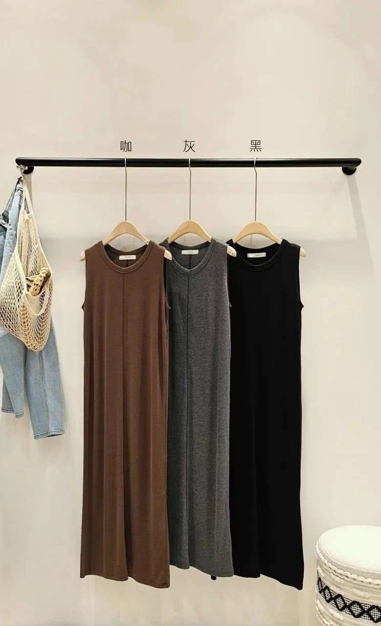 HJ051簡單極致時髦連身長洋裝 灰 咖 黑 官網價$1290 線上價$1260