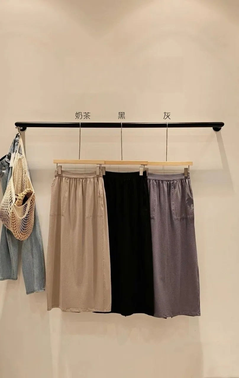 莫代爾38%+棉57%+彈力 腰鬆緊 有口袋 親膚舒適 後開叉