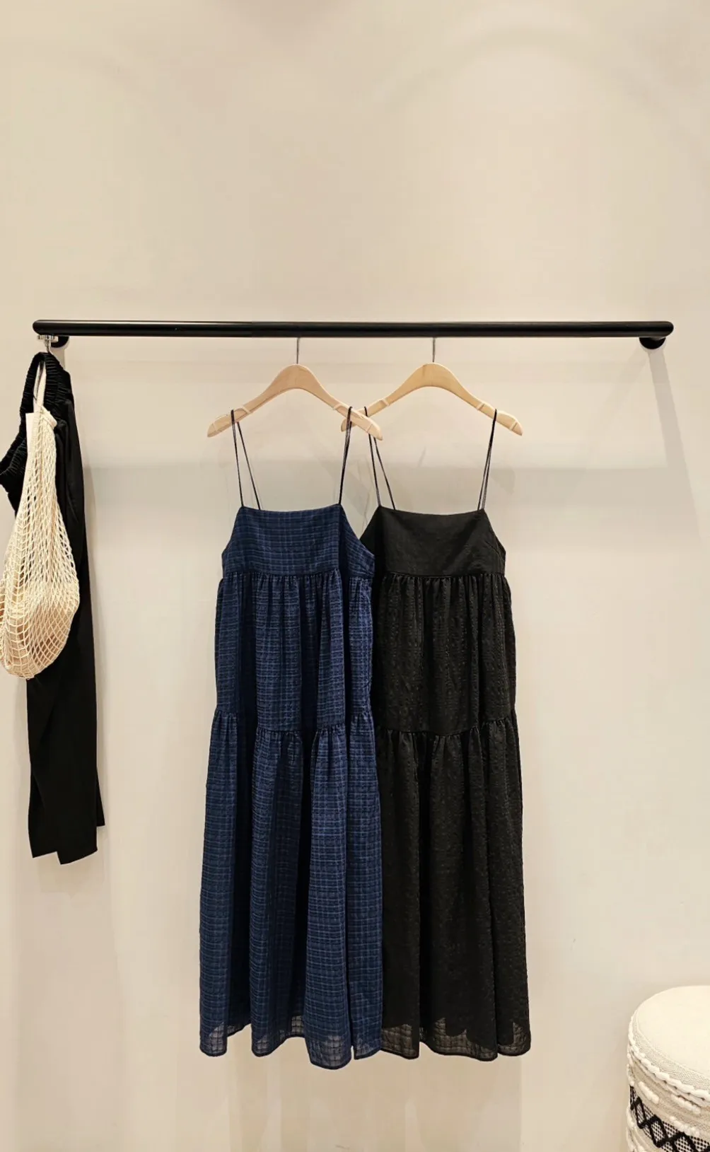 HJ054推薦款細肩帶雙繩格紋渡假洋裝 藍 黑 官網價$1960 線上價$1930