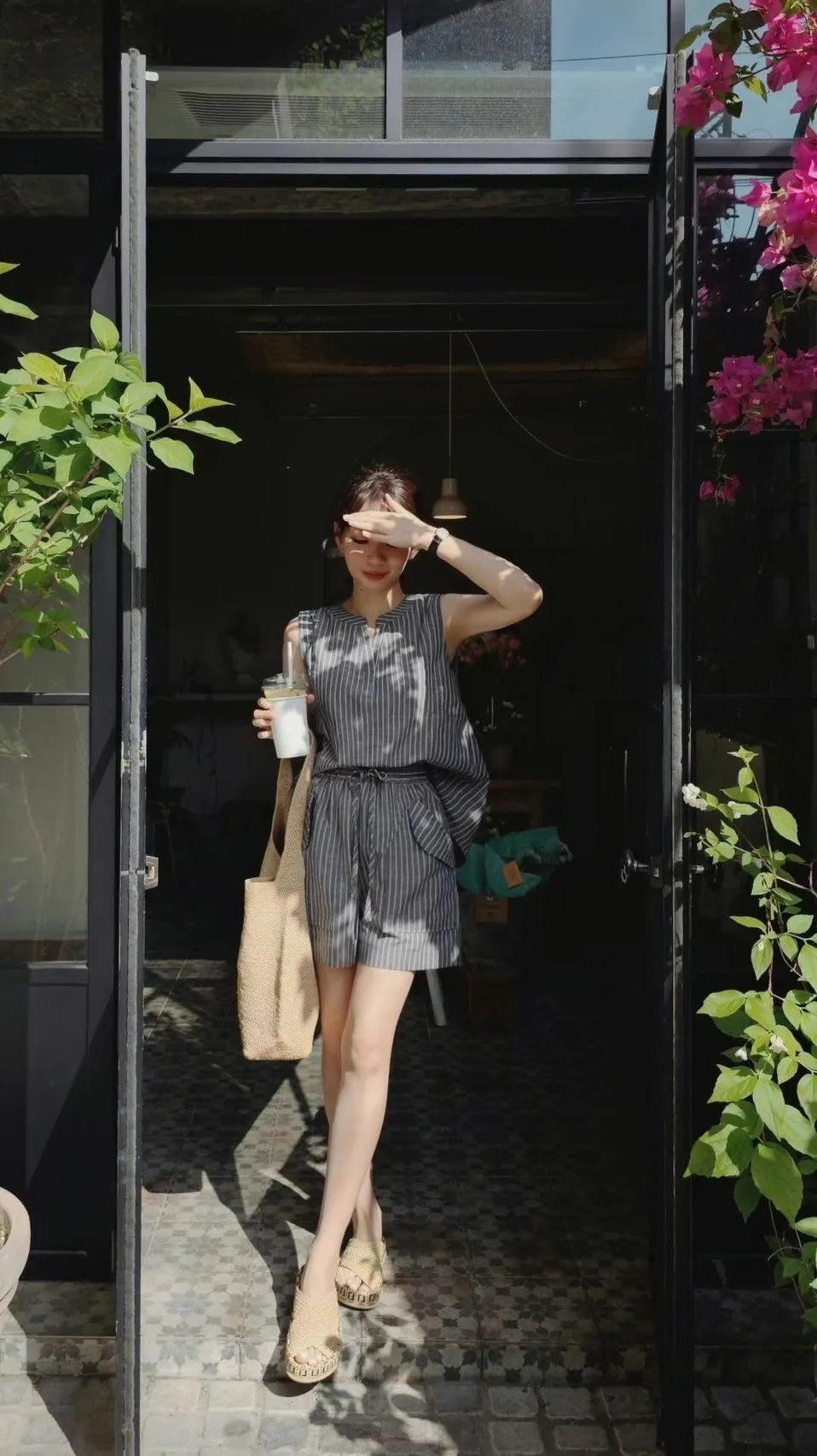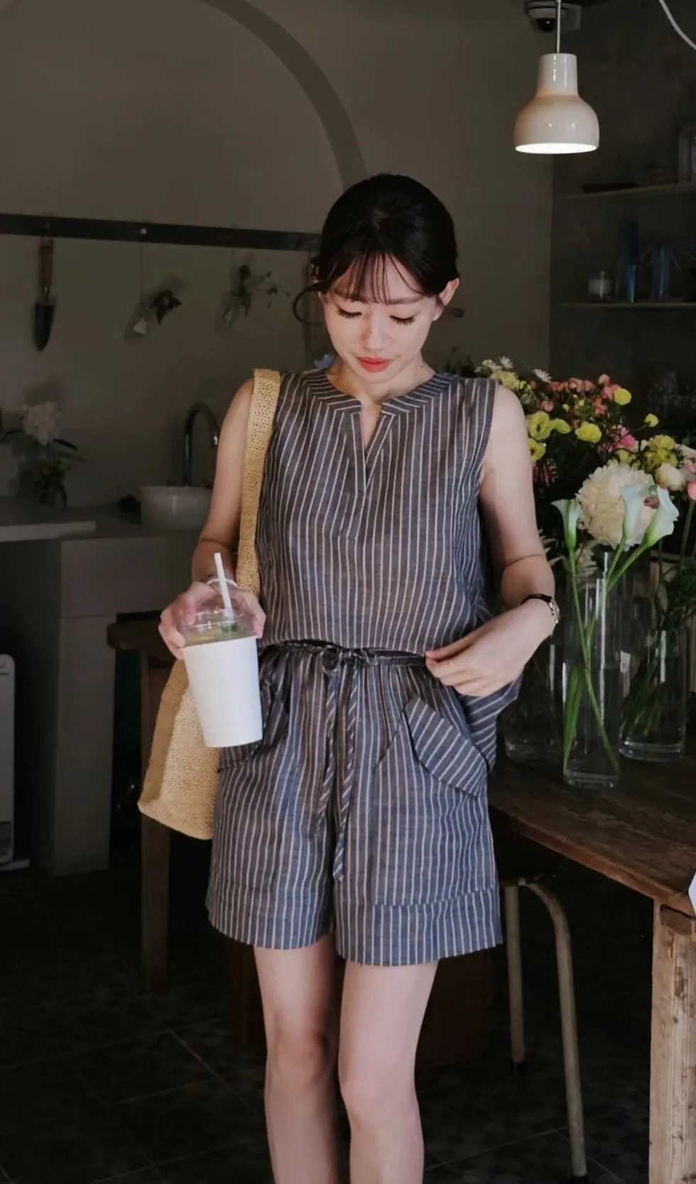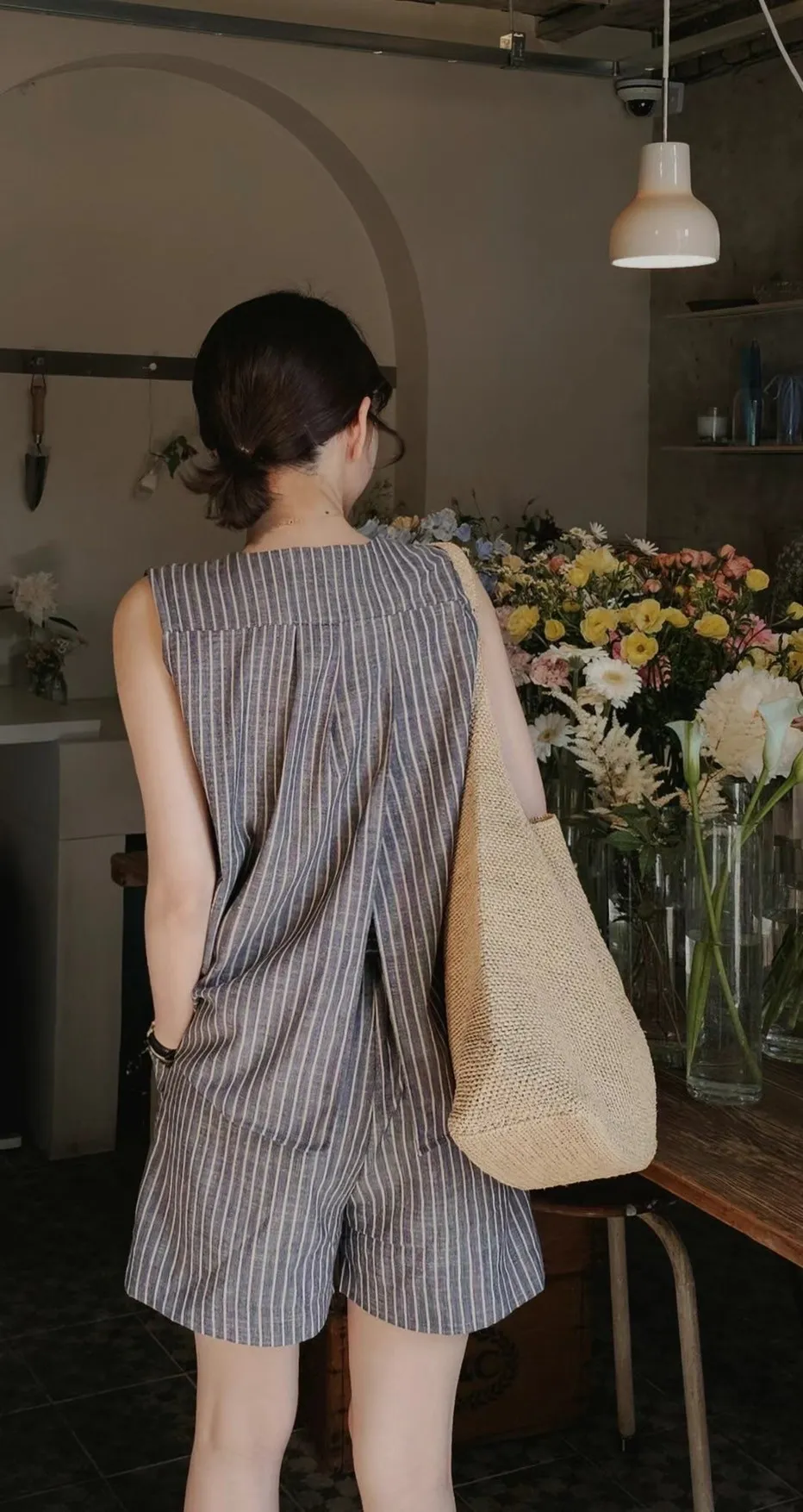 亞麻60%+縲縈 精緻剪裁 背後交疊開叉 涼爽透氣 適合台灣夏天