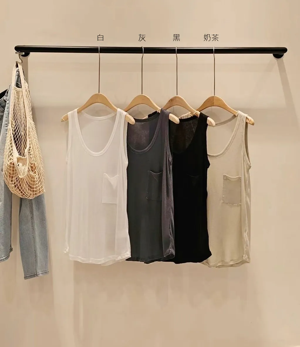 HJ059柔軟舒適單口袋天絲背心 白 灰 黑 奶茶 官網價$720 線上價$690