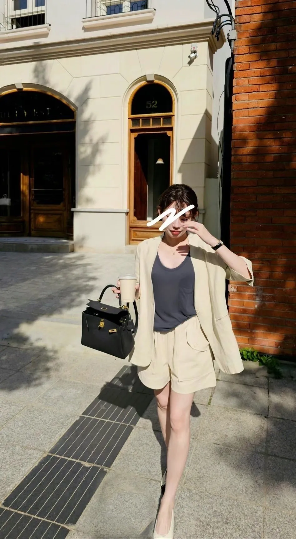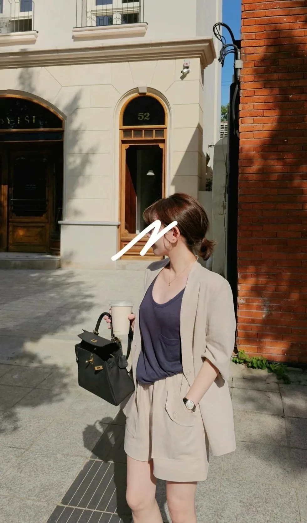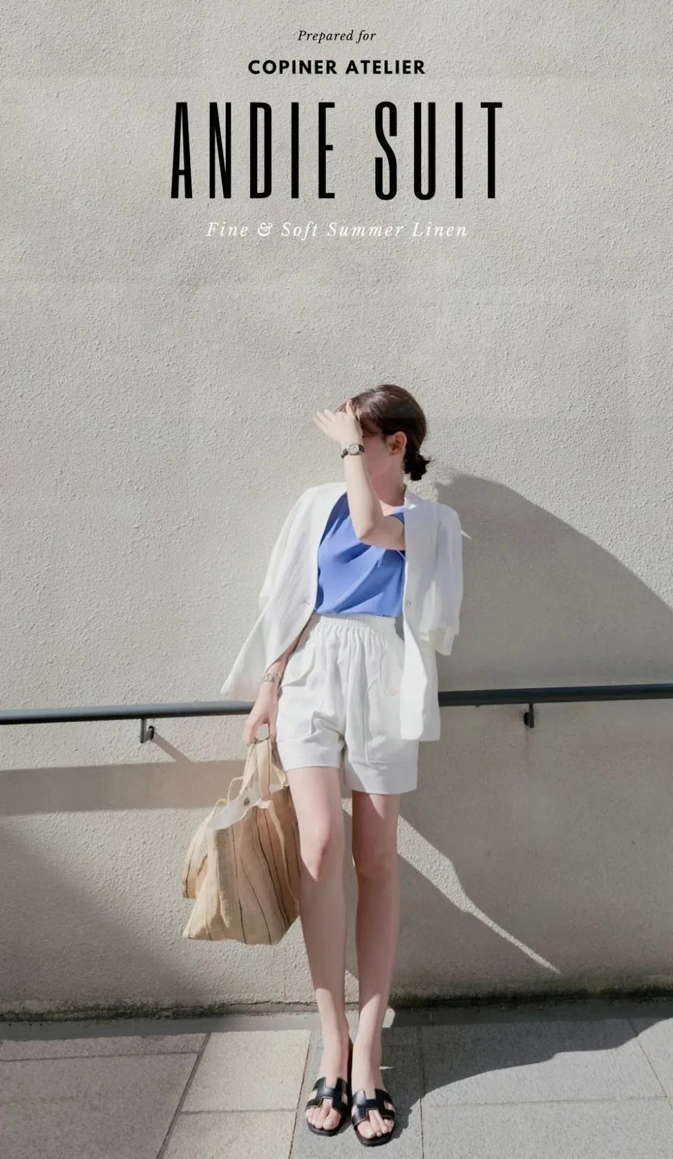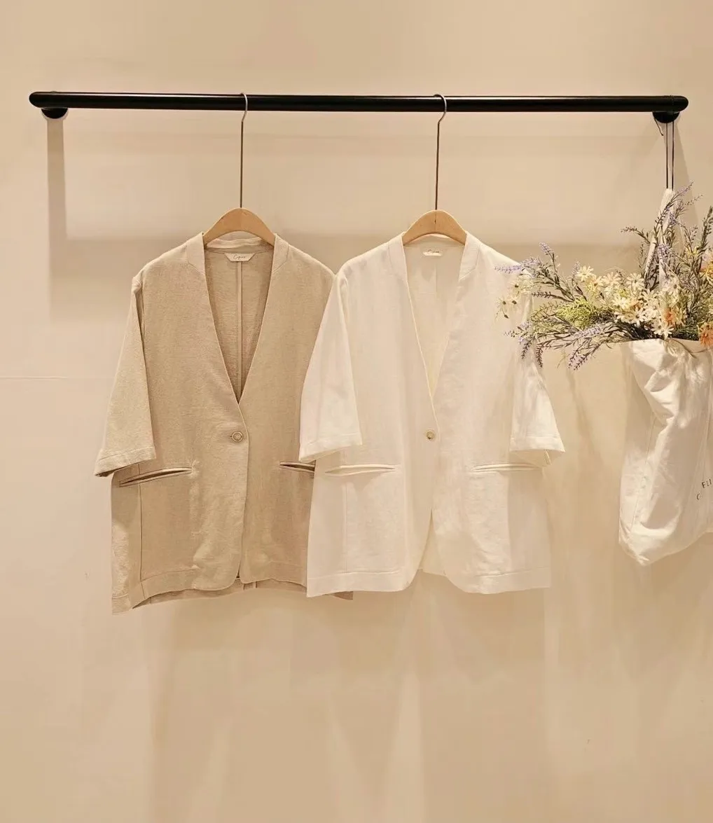 HJ063 套裝的亞麻無領半袖西裝外套 白 燕麥 官網價$1820 線上價$1790