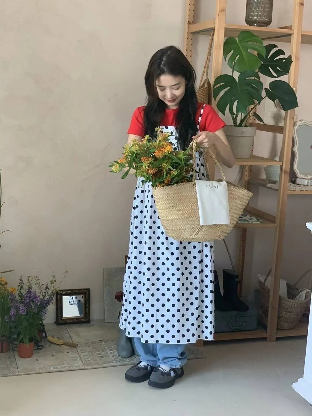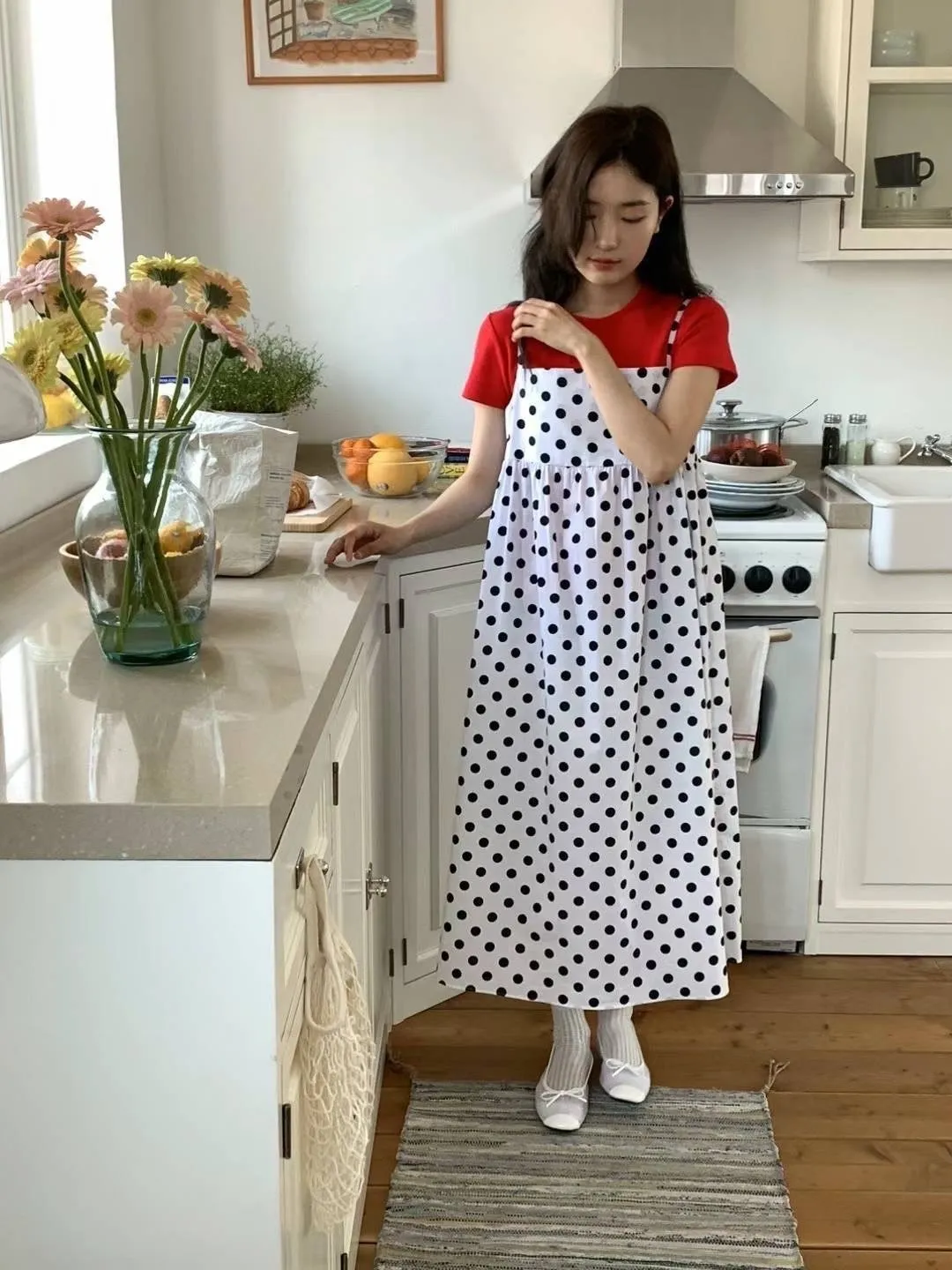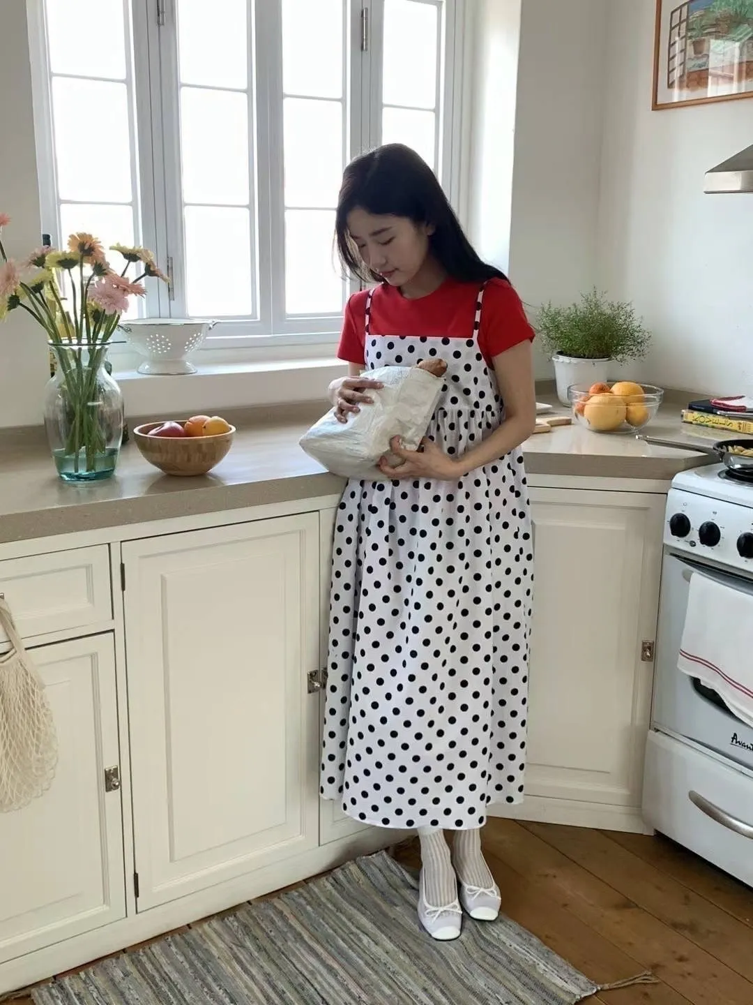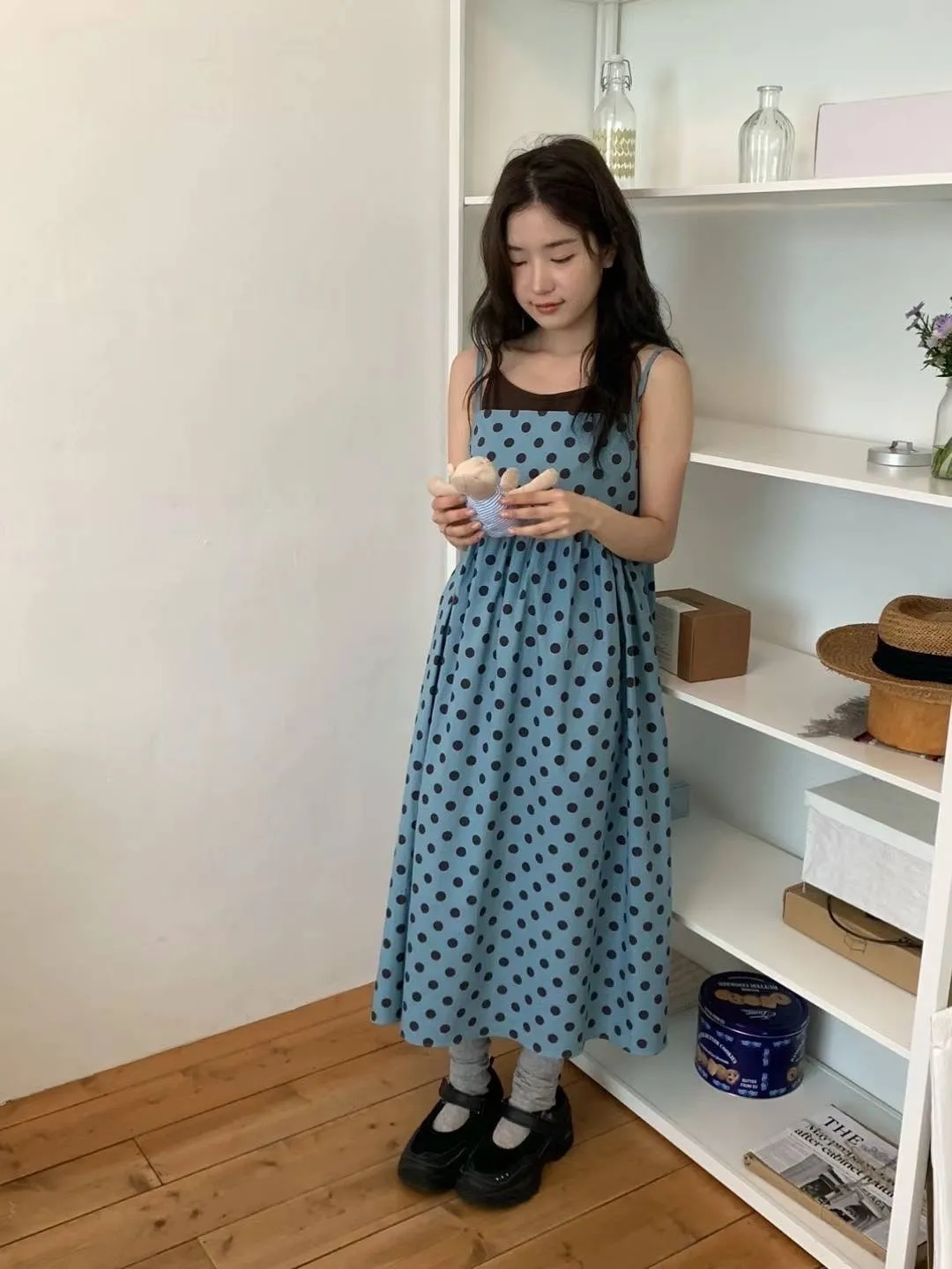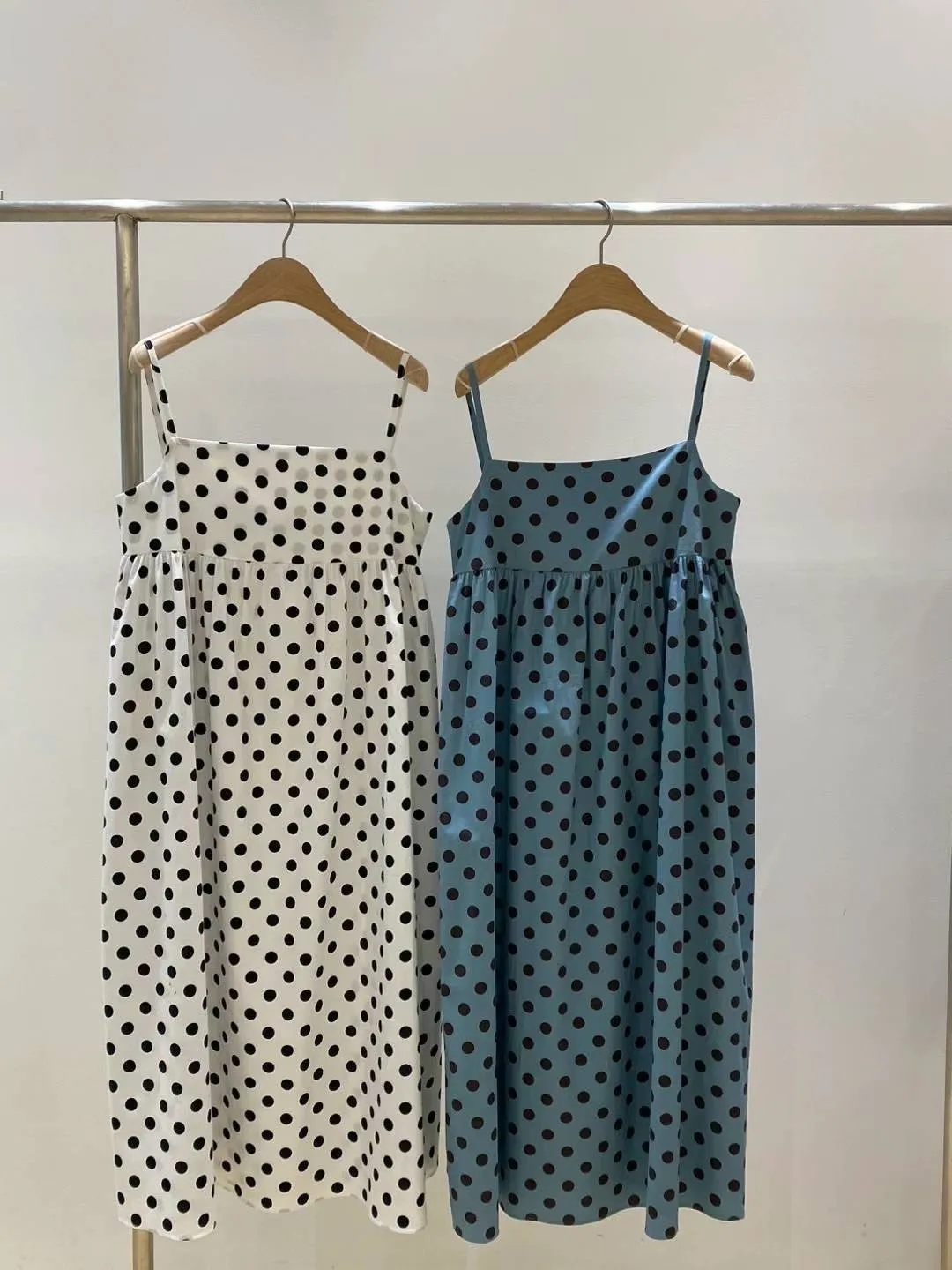HJ071可愛復古點點平口洋裝 白 藍 官網價$1390 線上價$1360