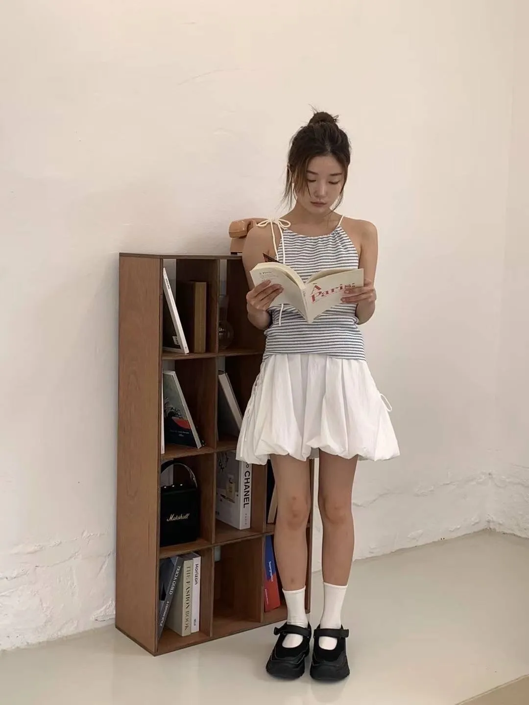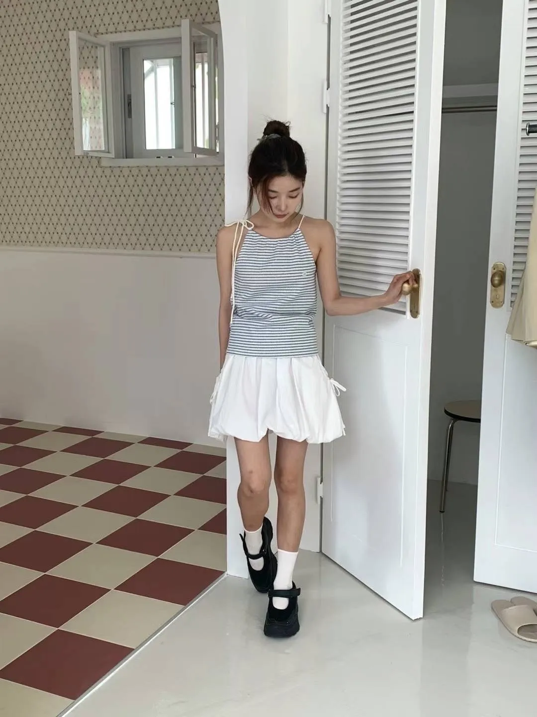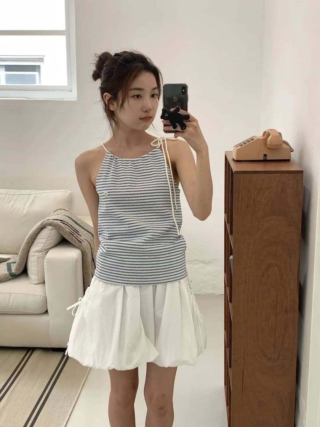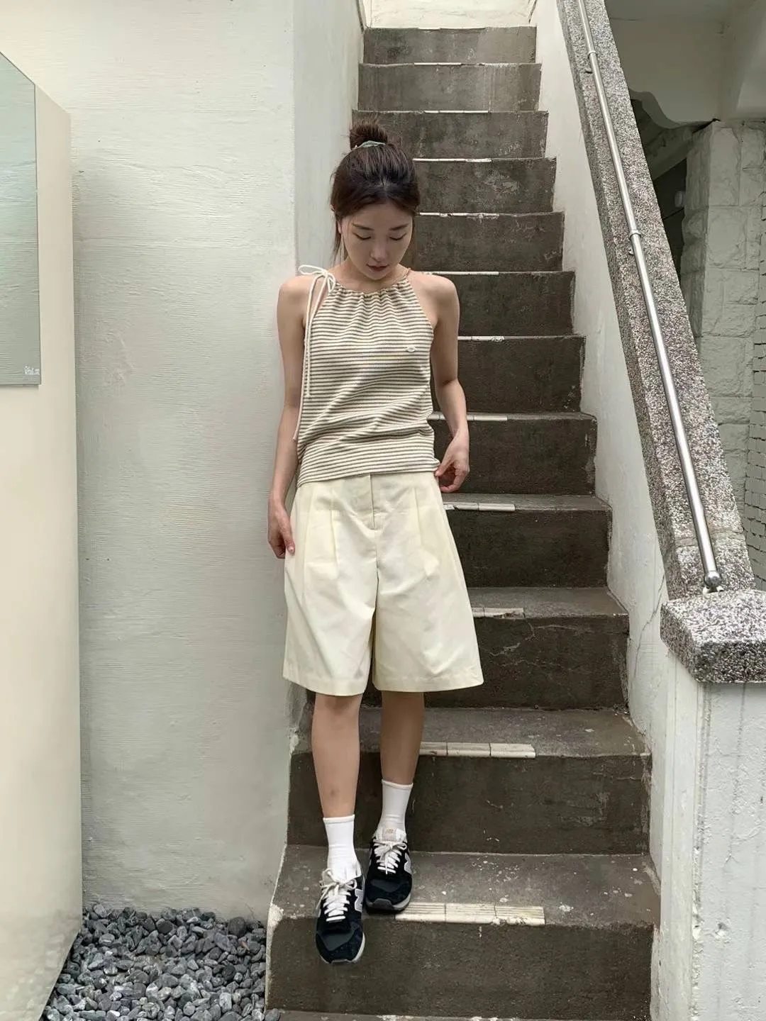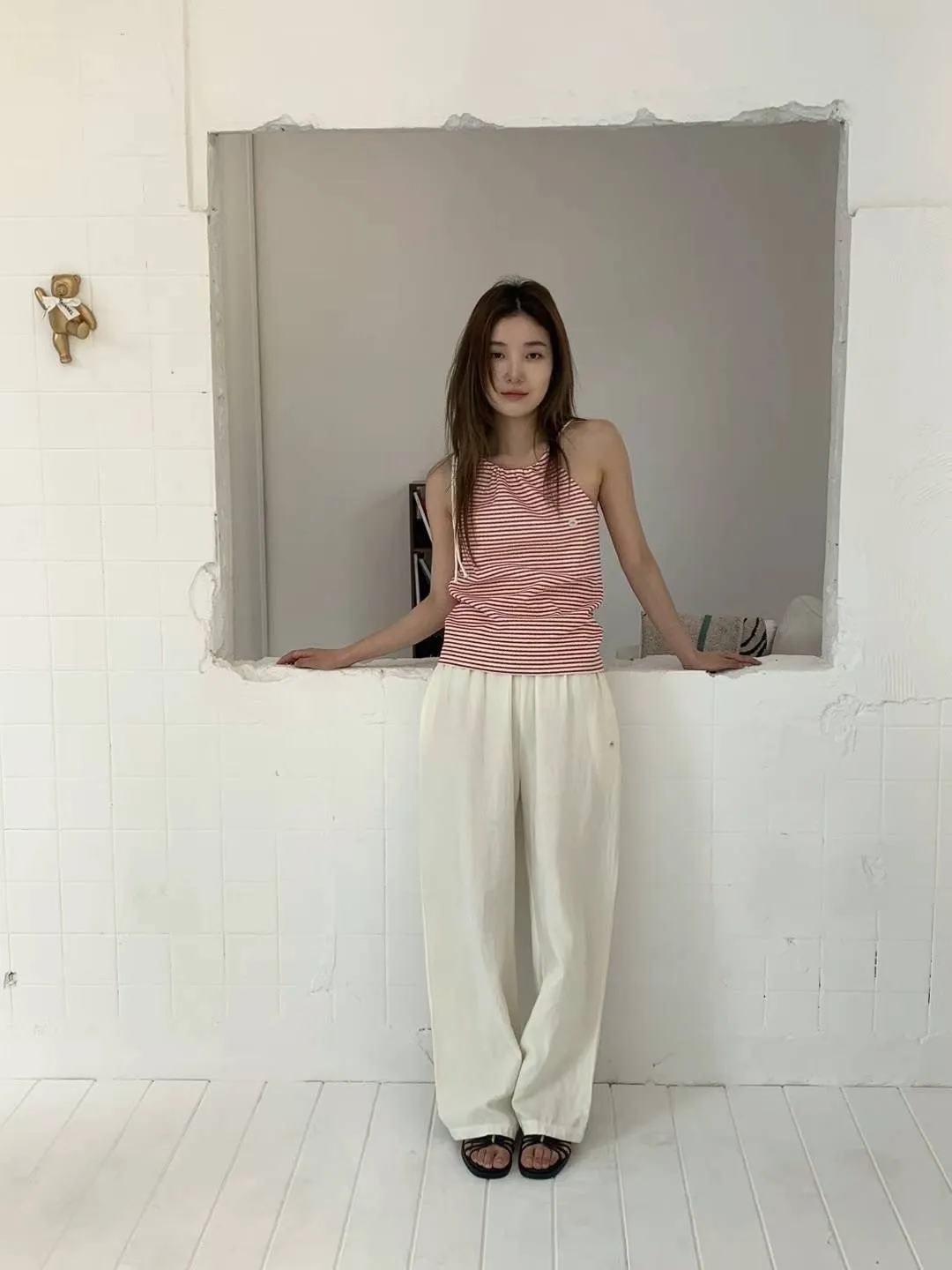 HJ074細肩帶綁繩條紋上衣 藍 紅 奶茶 官網價$570 線上價$540