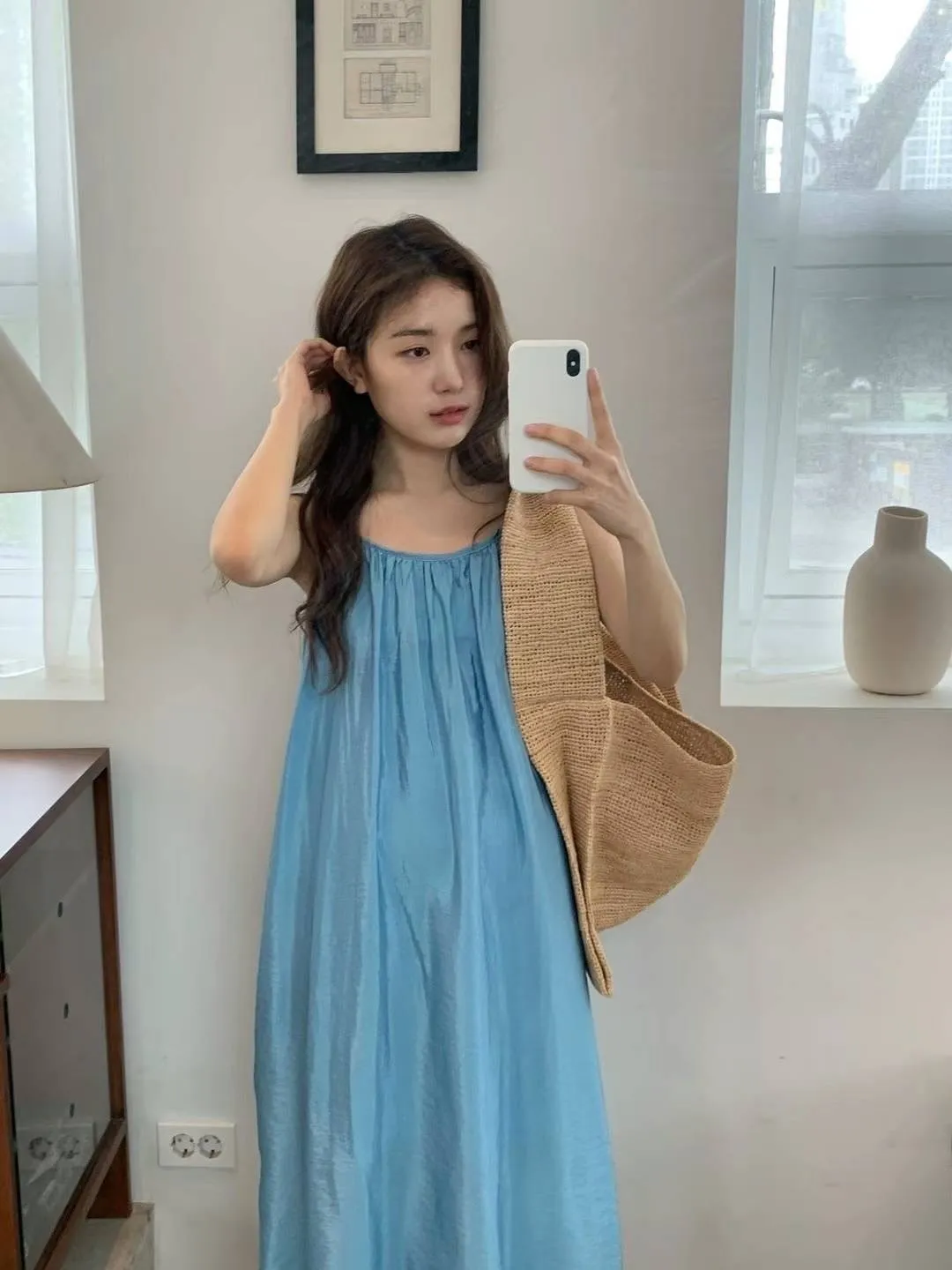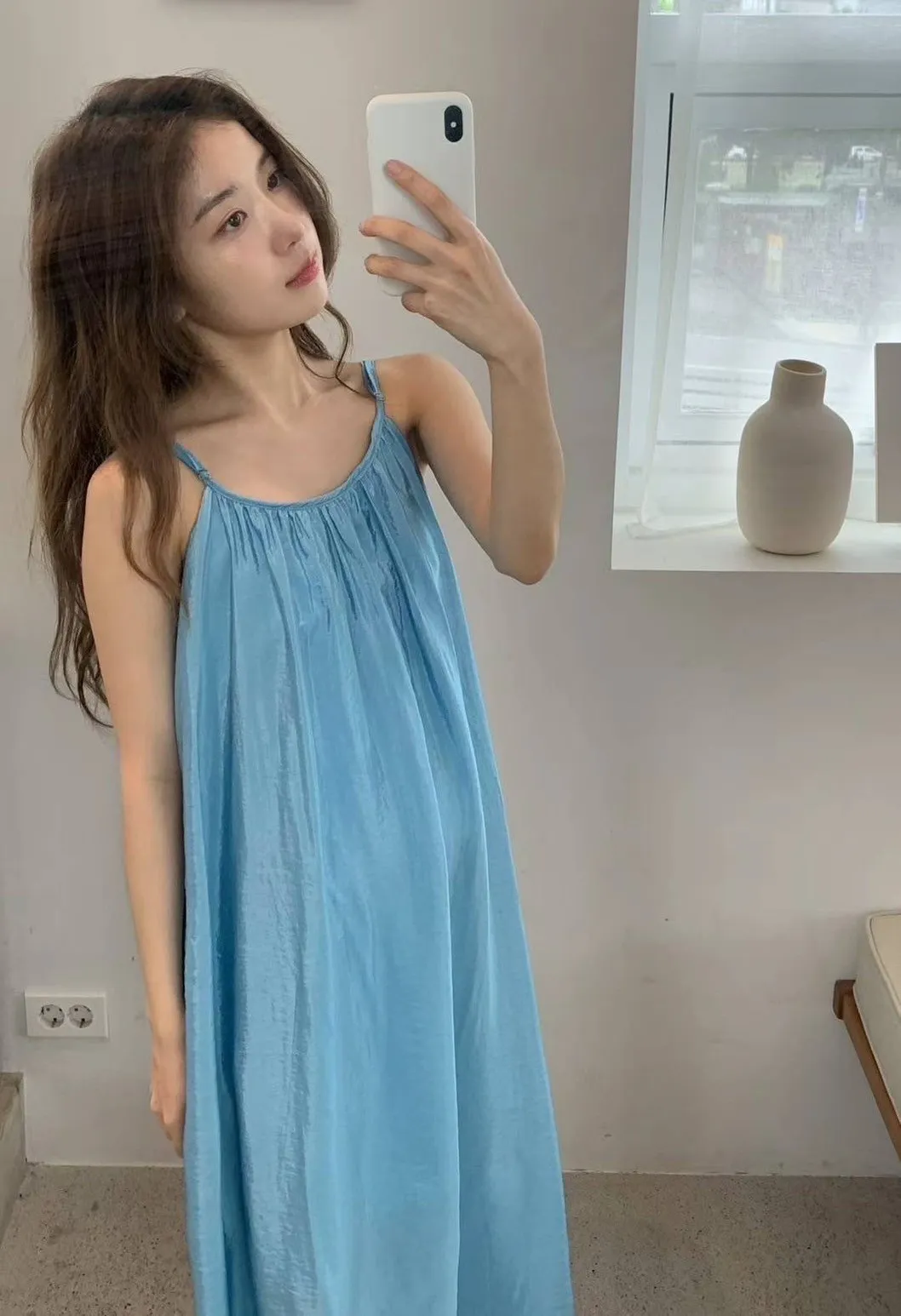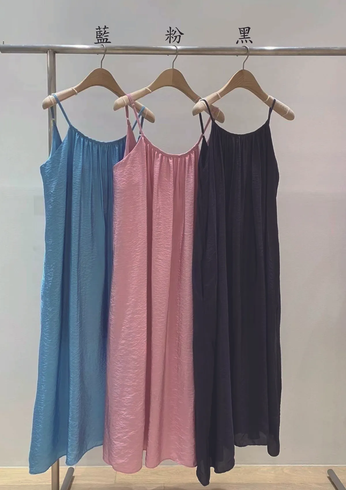HJ077緞面渡假女神細肩帶洋裝 粉 藍 黑 官網價$1550 線上價$1520