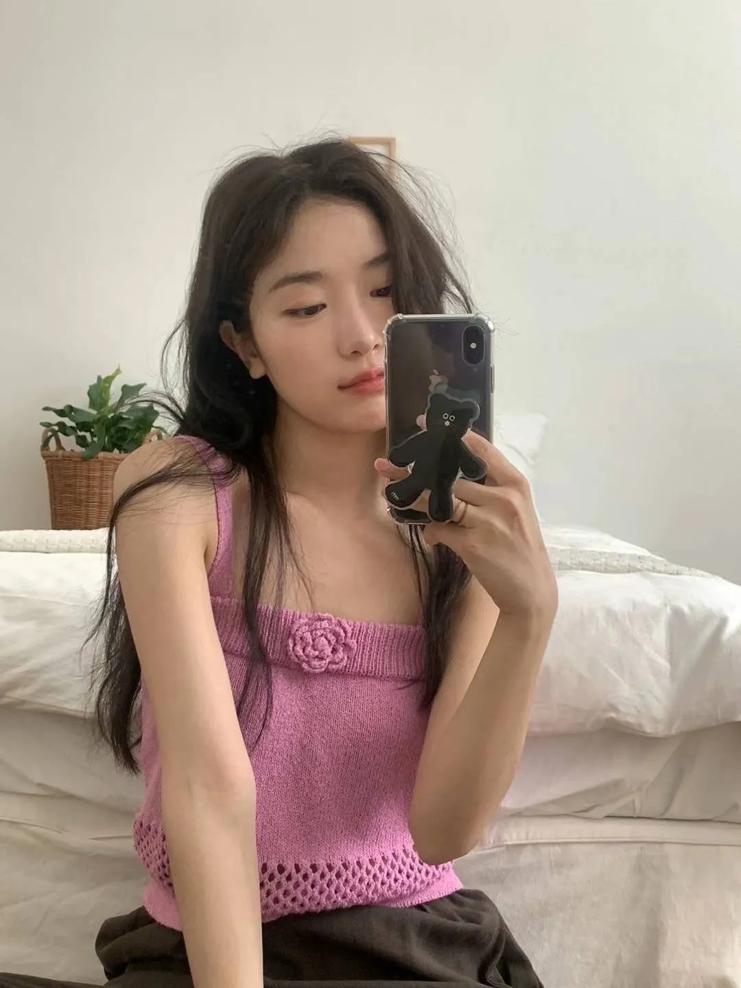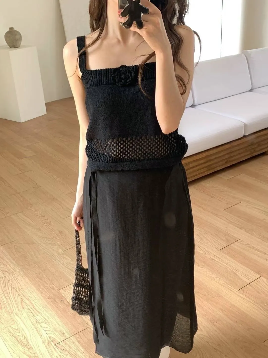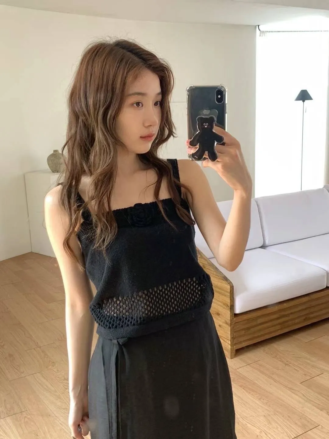 棉針織 下擺細緻簍空 立體玫瑰花 微彈性