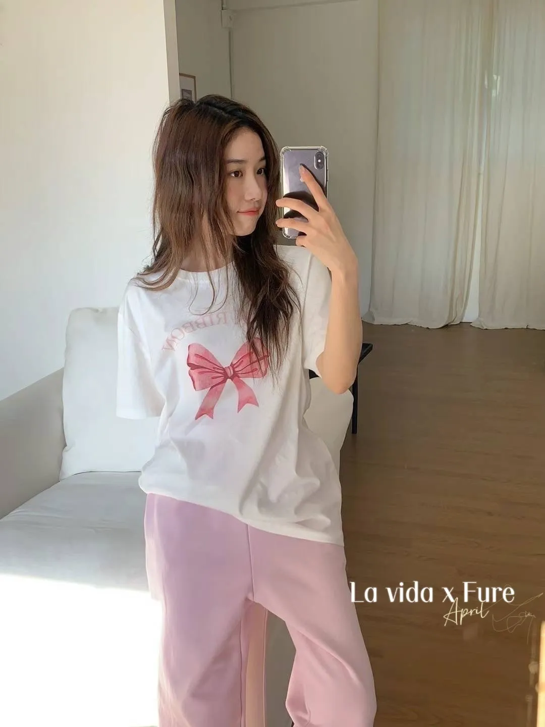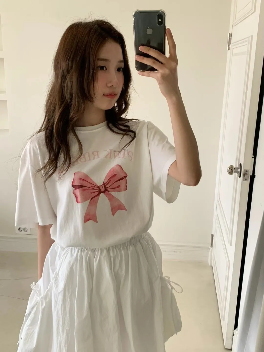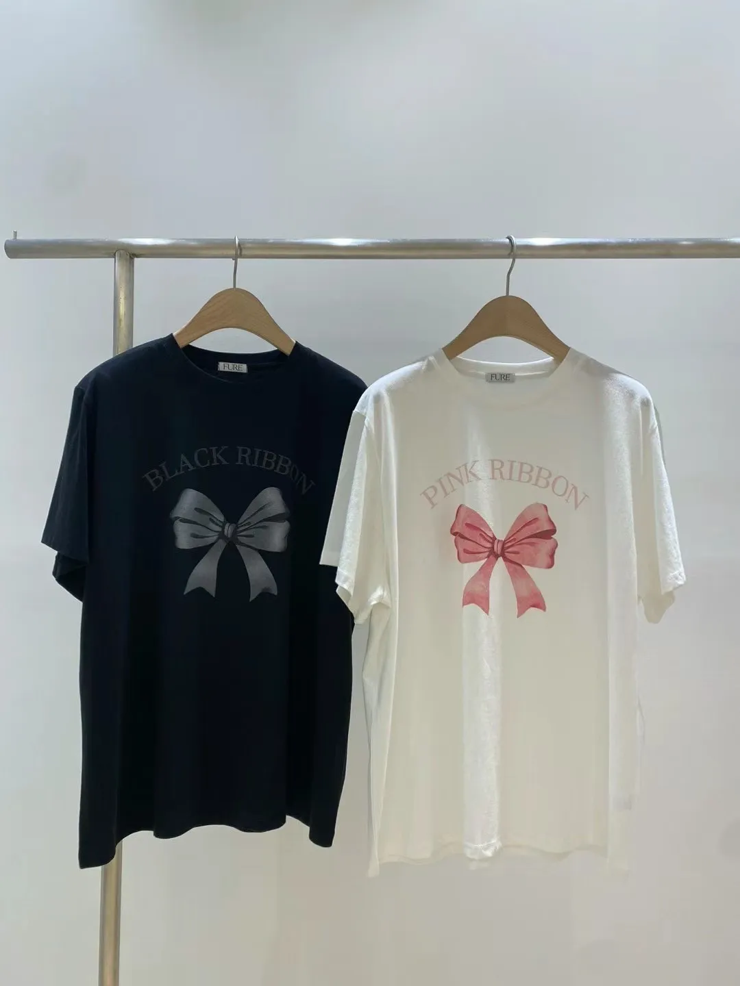 HJ083回購款推薦款冰絲棉緞帶蝴蝶結Tshirt(原KM970) 白 黑 官網價$620 線上價$590