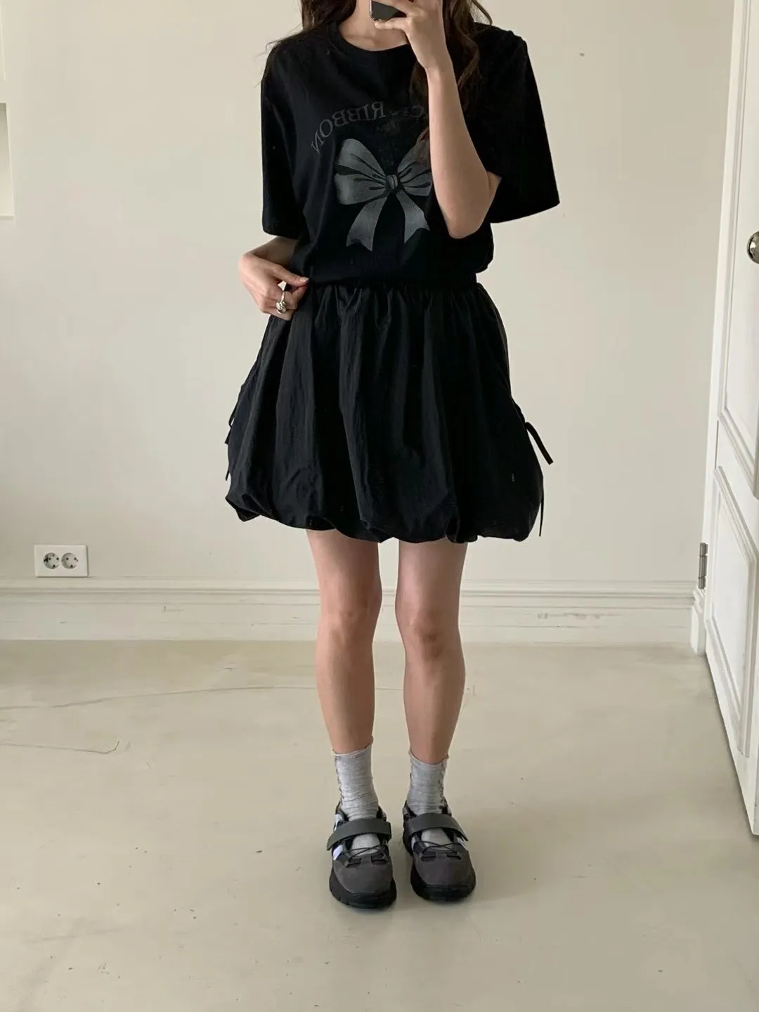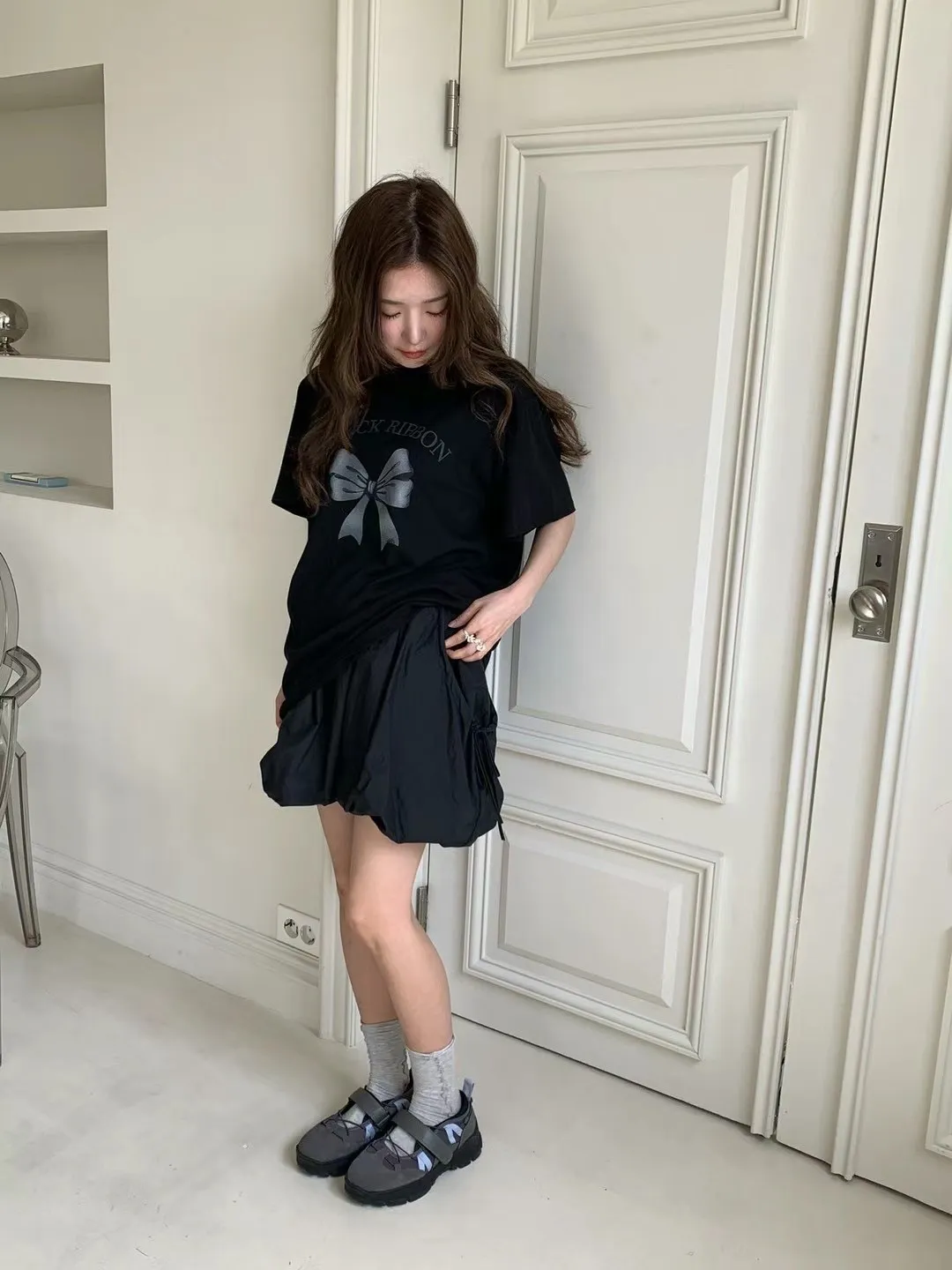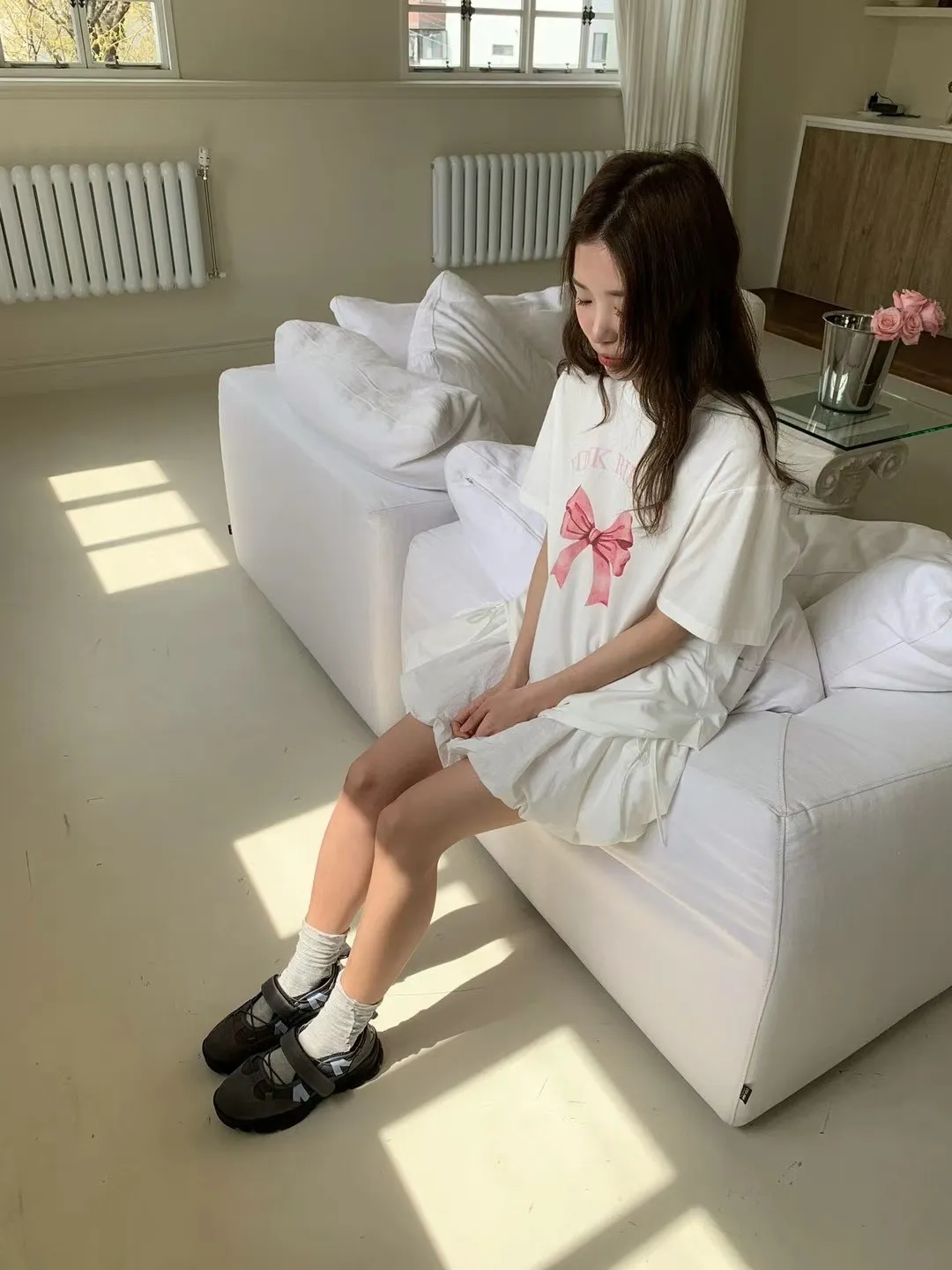 HJ083回購款推薦款冰絲棉緞帶蝴蝶結Tshirt(原KM970) 白 黑 官網價$620 線上價$590