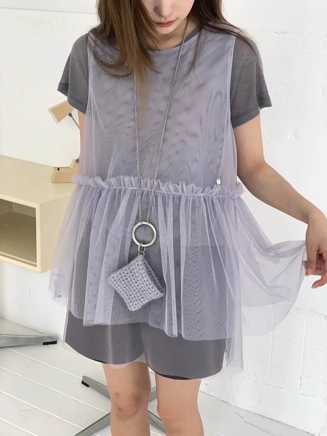 HJ085浪漫透光網紗上衣 米 淺灰 深灰 官網價$1090 線上價$1060