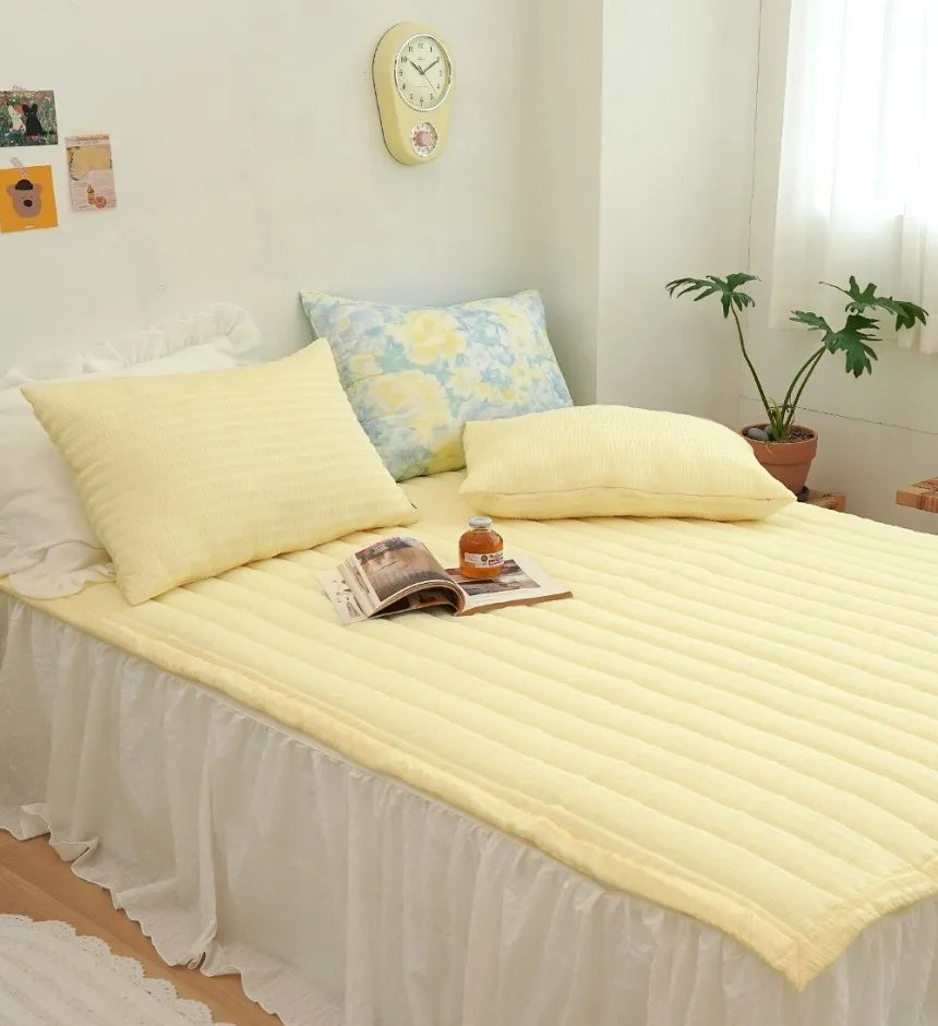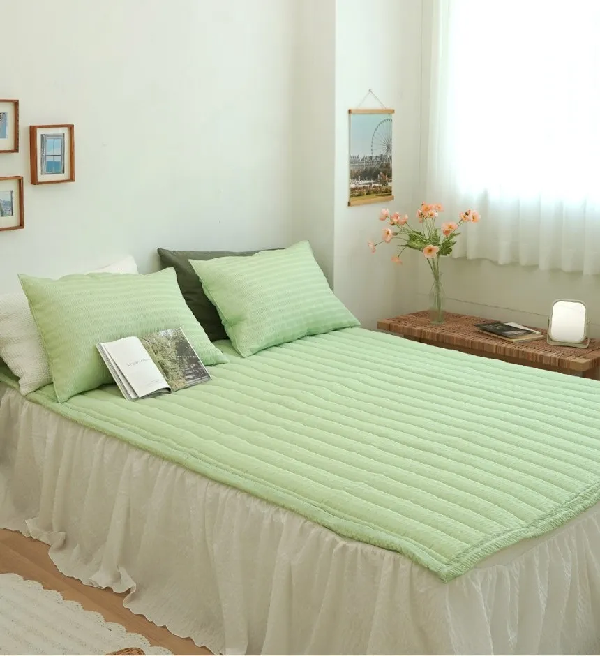 HJ1006竹纖維條紋泡泡紗保潔墊 黃 藍 米 綠 單人$1090 雙人$1250