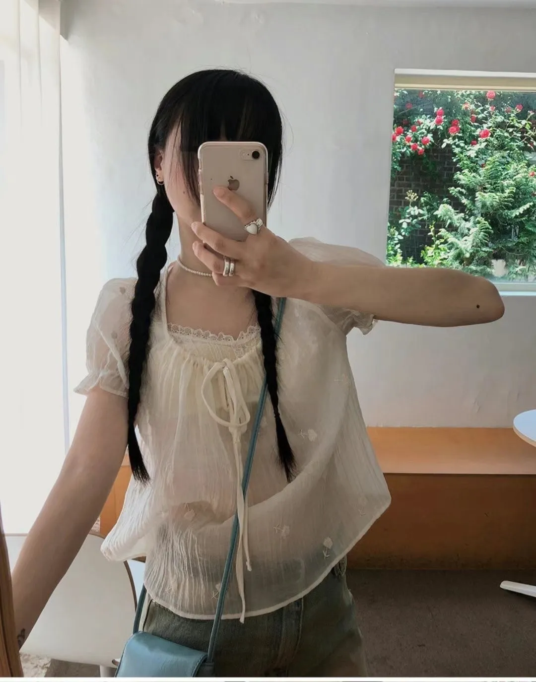 寶寶棉 推薦款 精緻小花刺繡 袖口舒適鬆緊 視覺透光