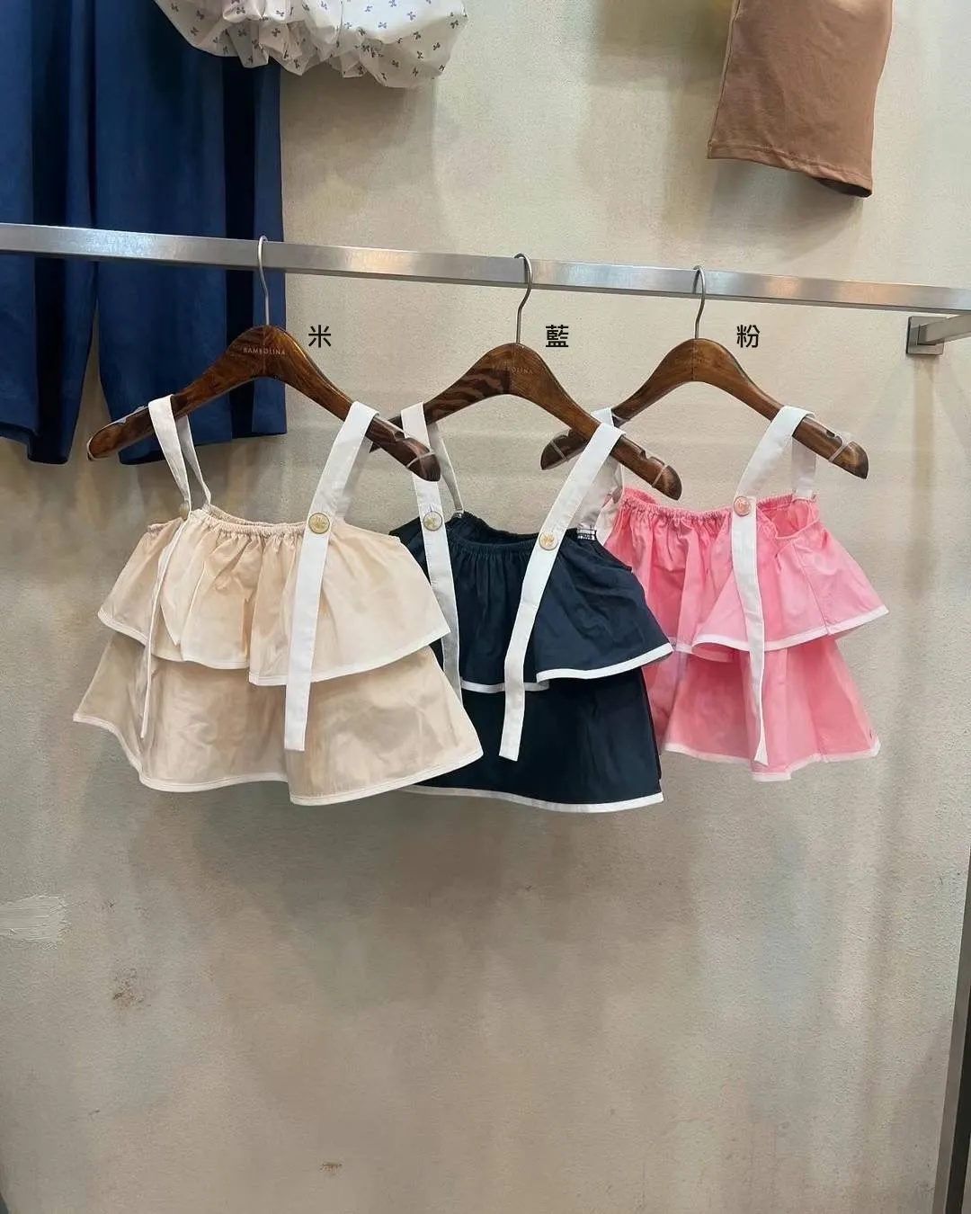 HJ1030調色滾邊層次感上衣 米 粉 藍 官網價$1220 線上價$1190