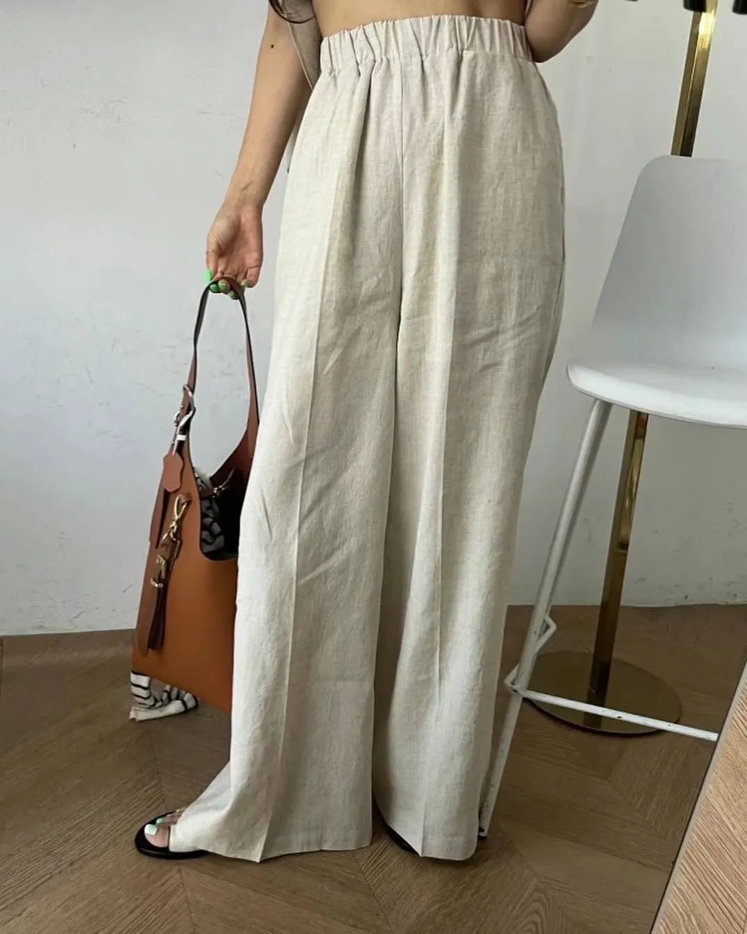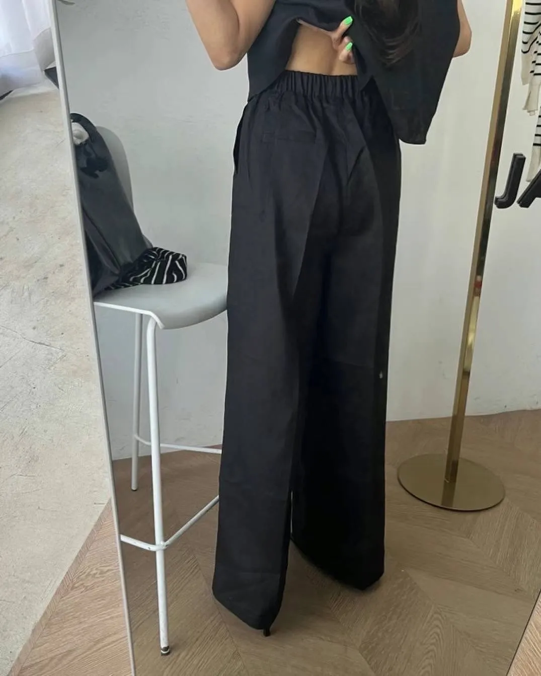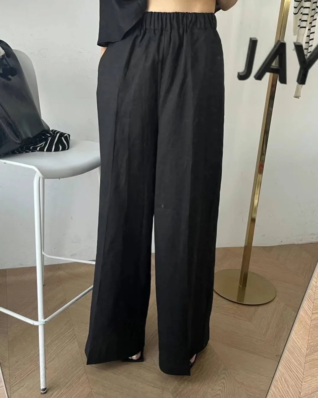 棉 輕盈透氣 腰鬆緊 有口袋 涼感舒適 寬直筒